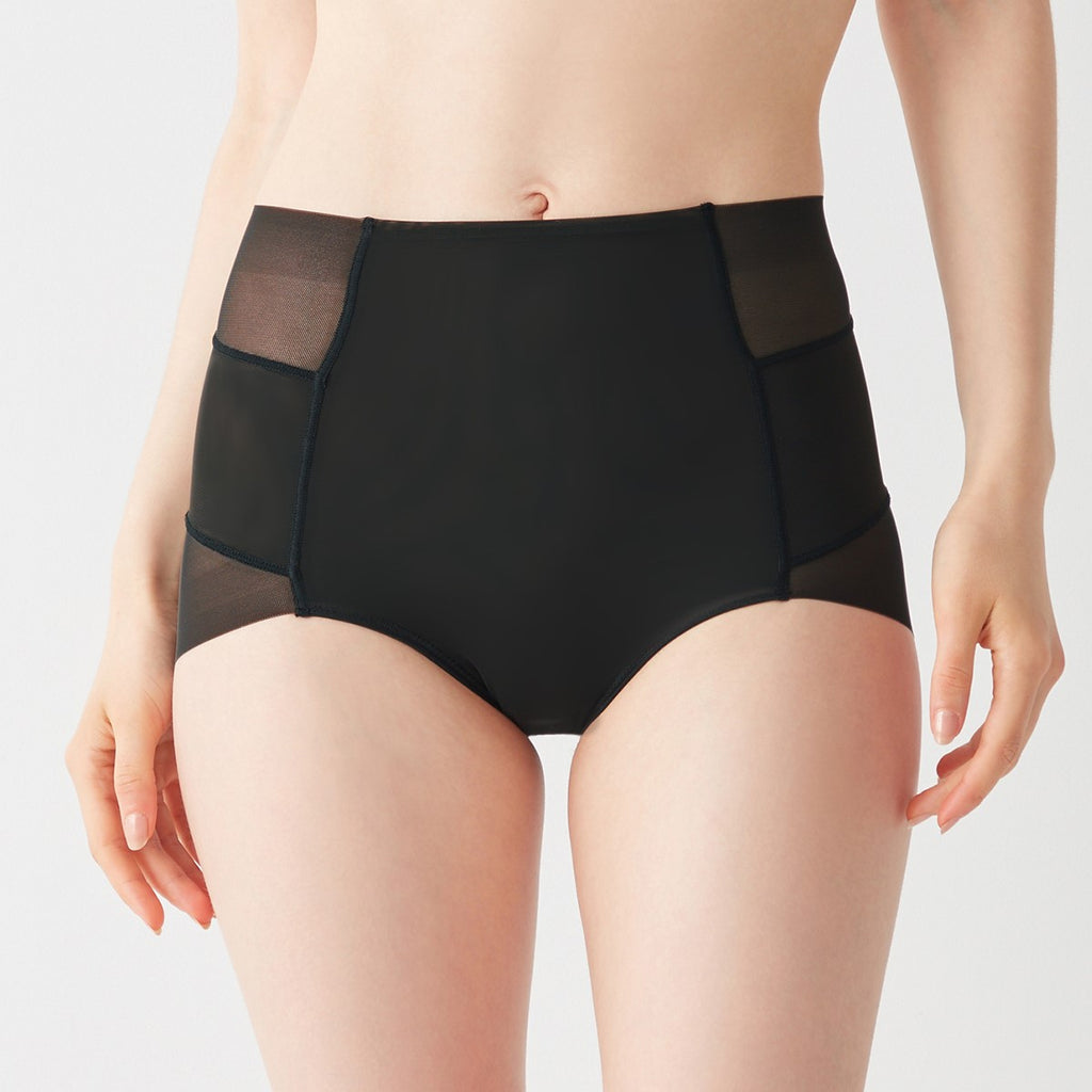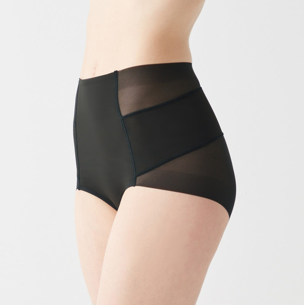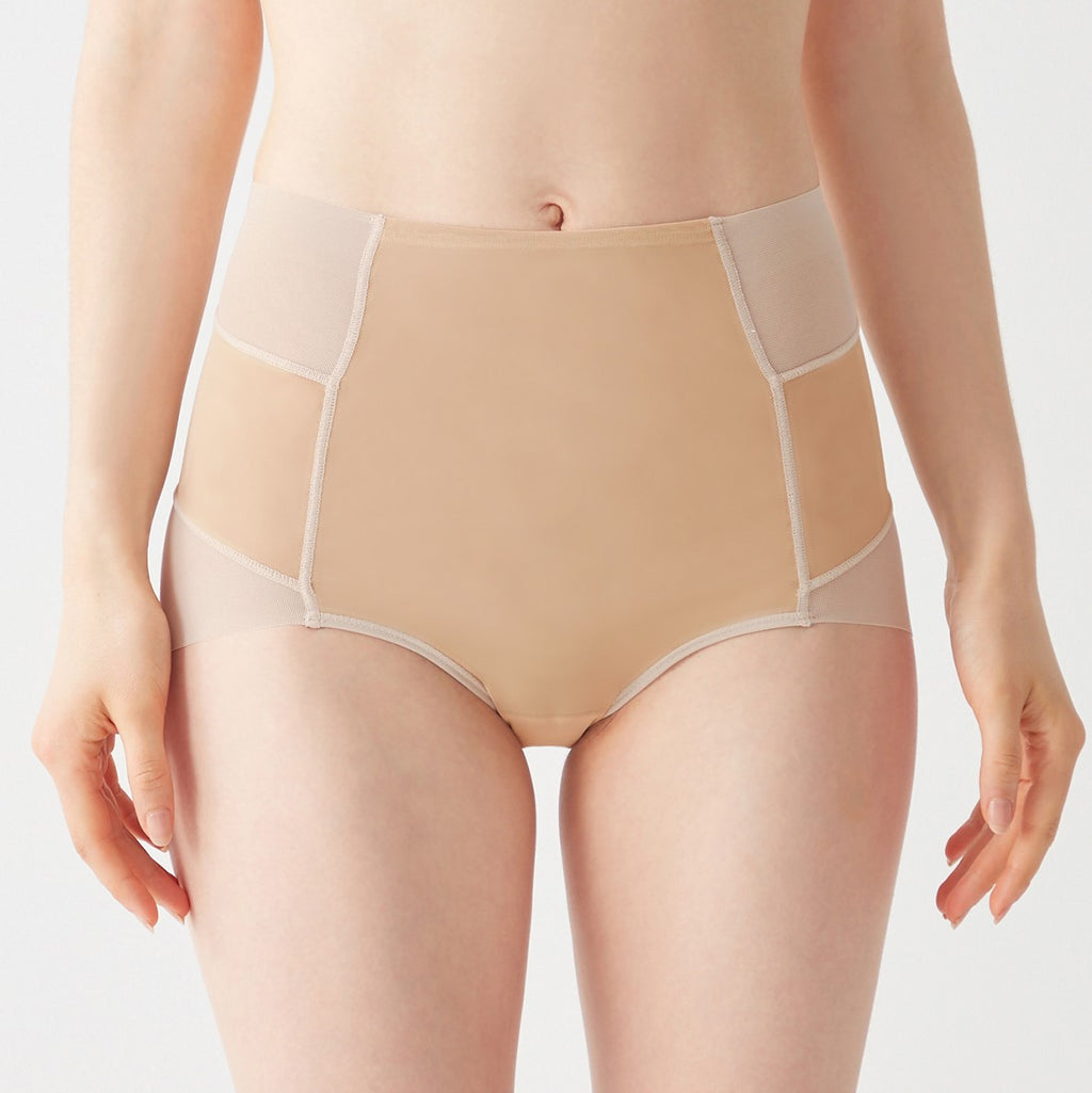 お腹を押さえ、ウエストすっきり。360°着圧のショートガードルです。