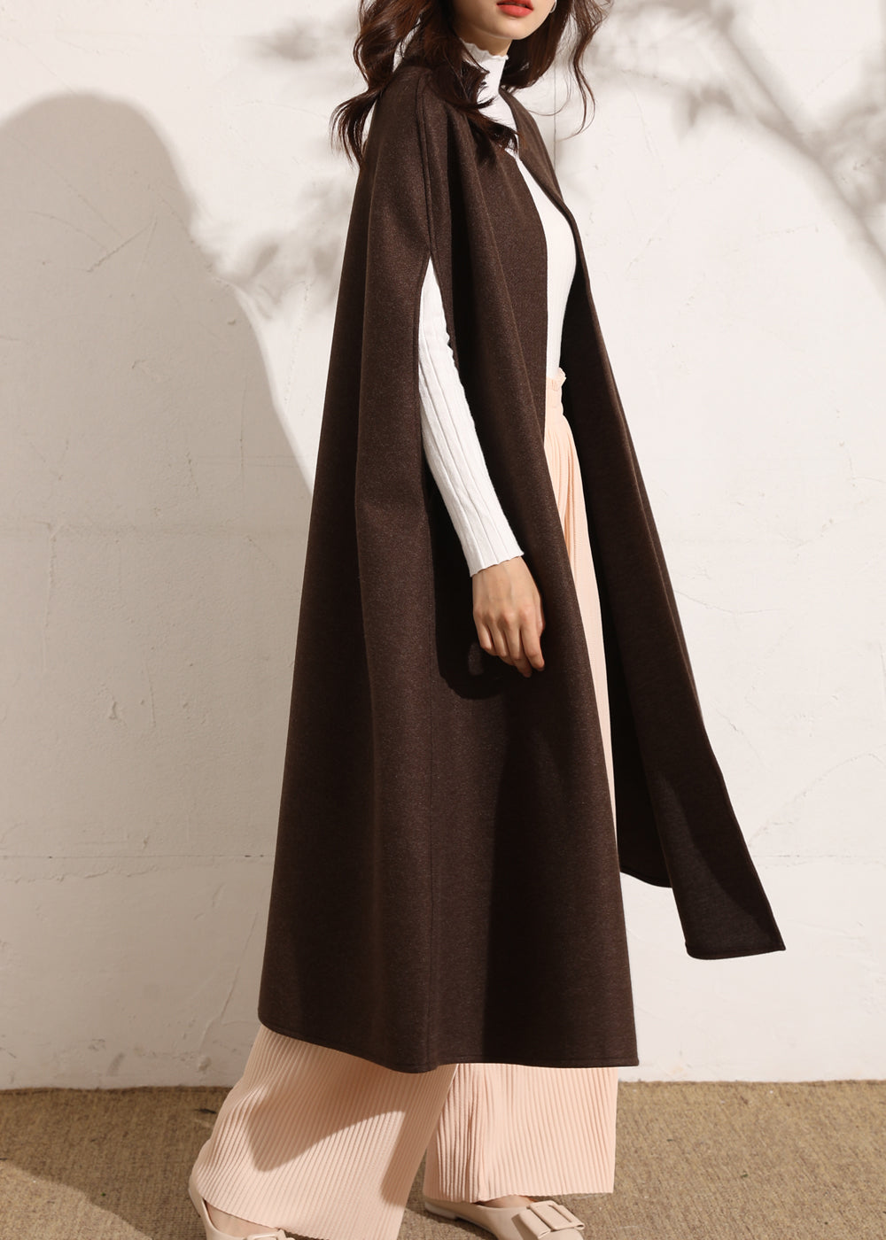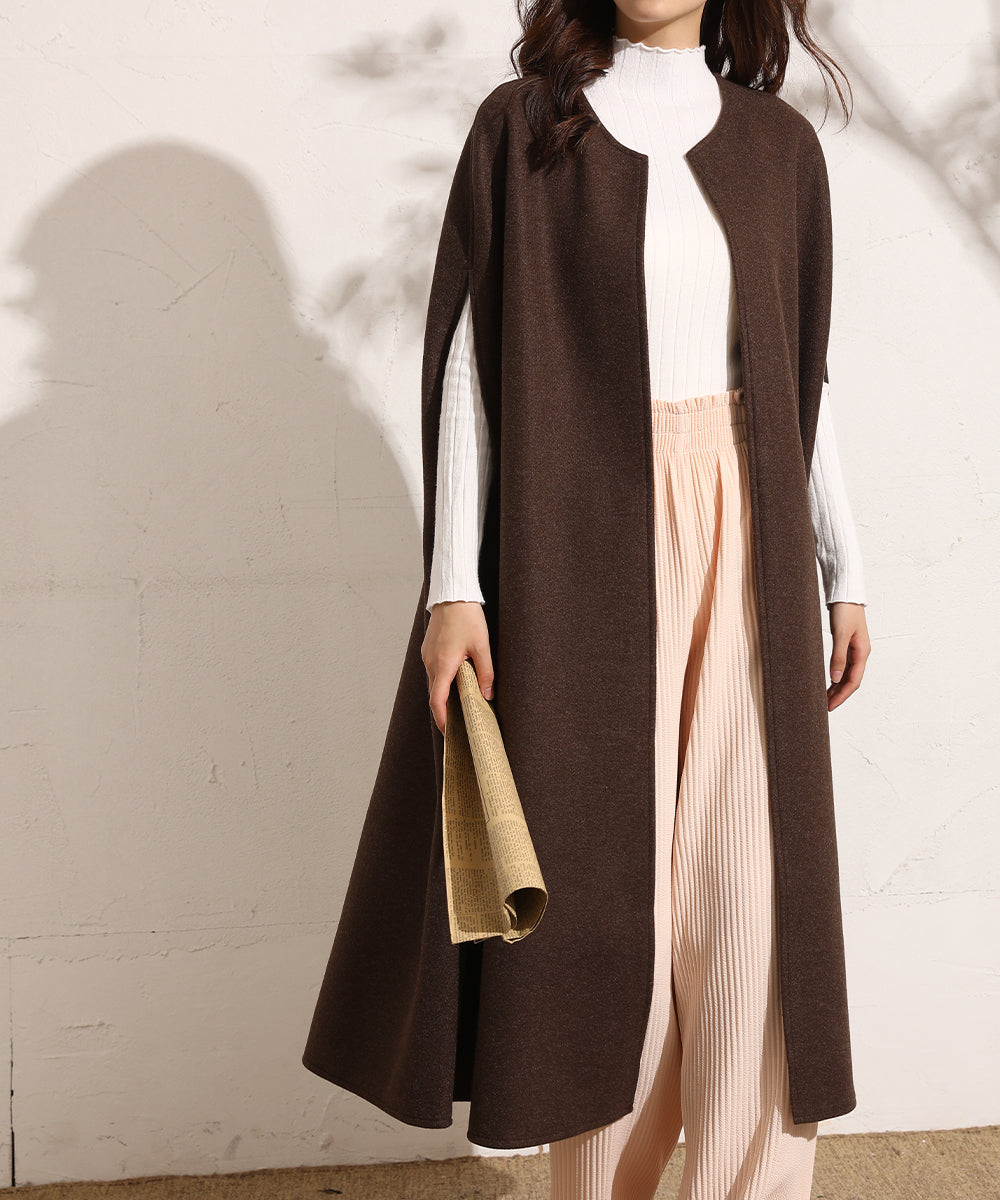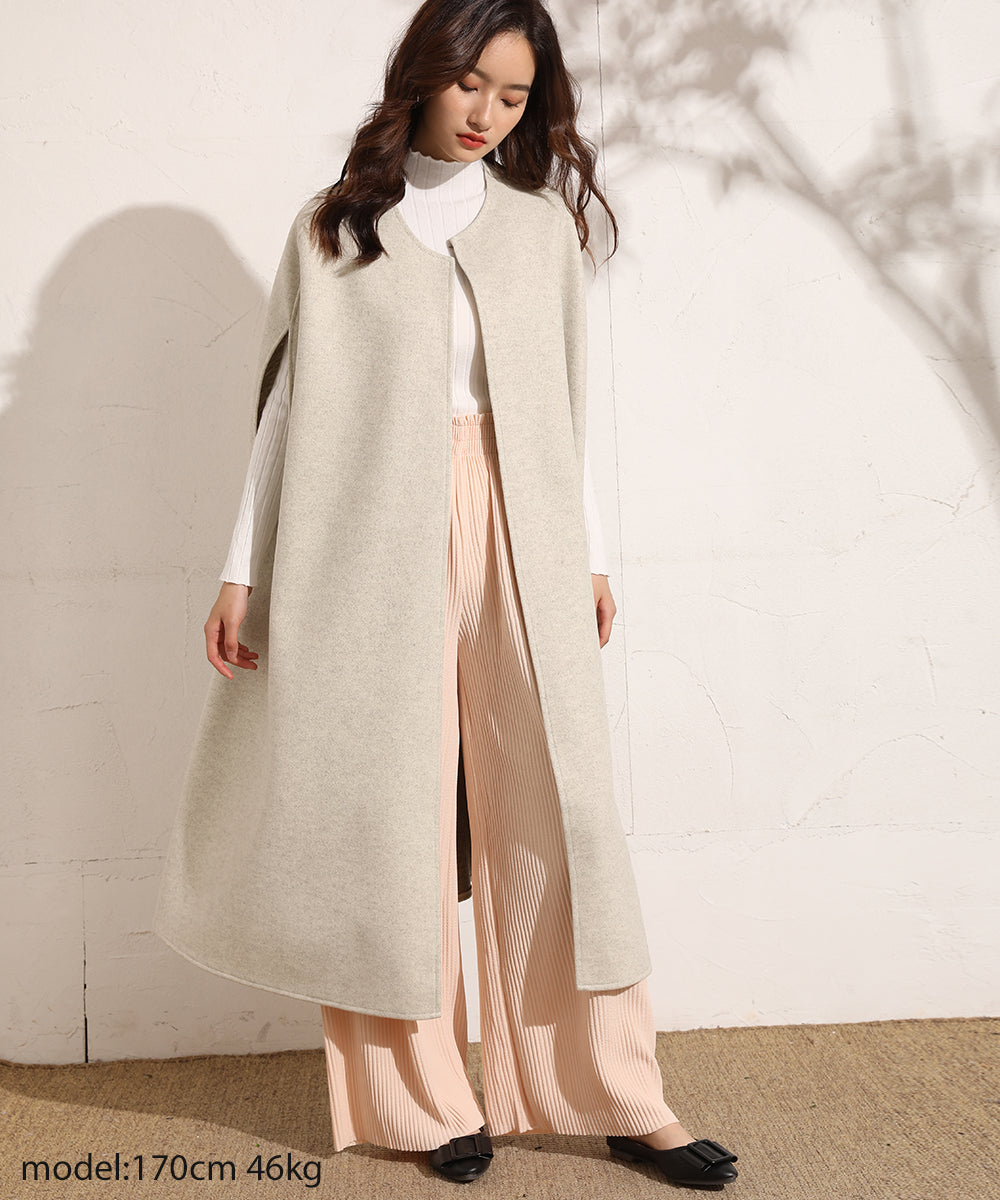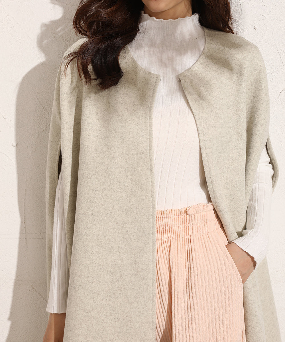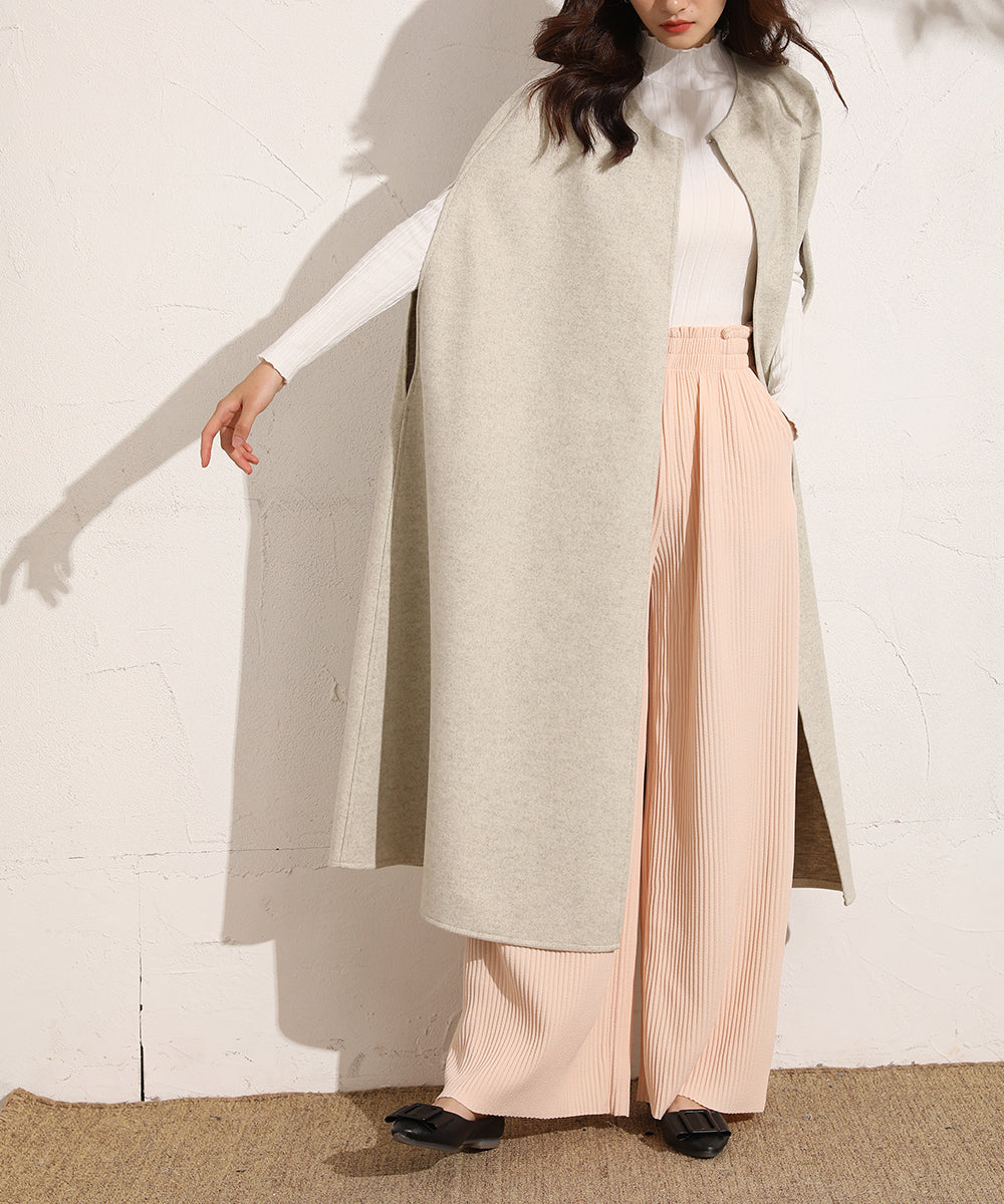 いつものコーデにさらっと羽織るだけで大人っぽい印象をプラスしてくれるノースリーブコート。