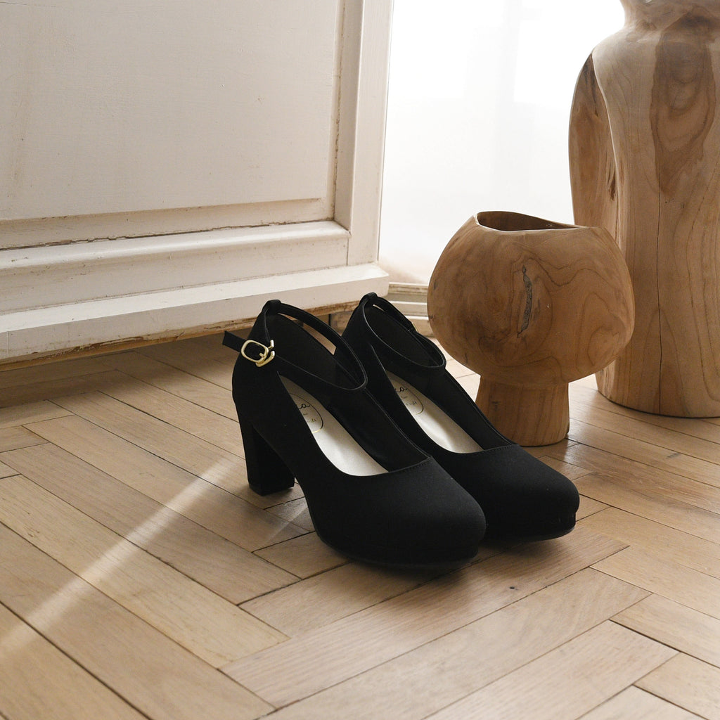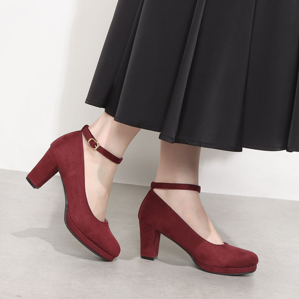 スタイルアップも叶う高めのチャンキーヒールが人気。