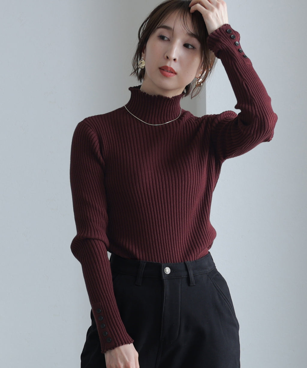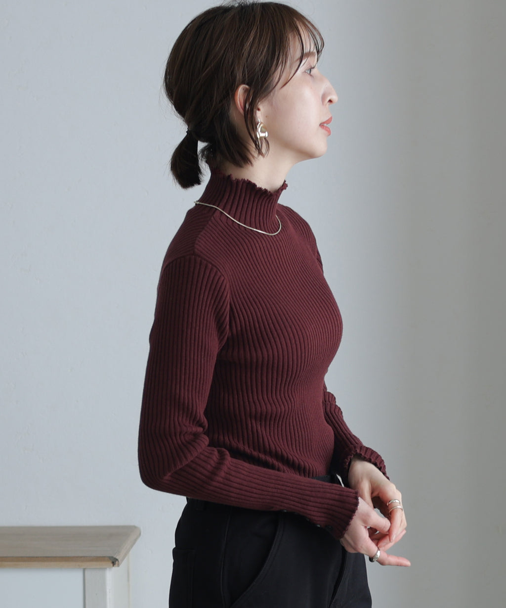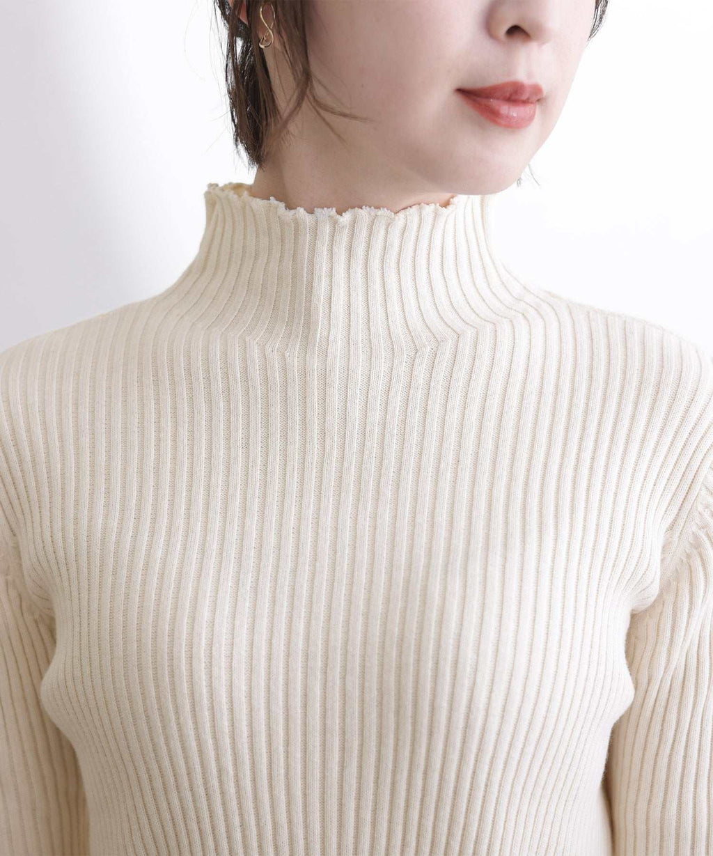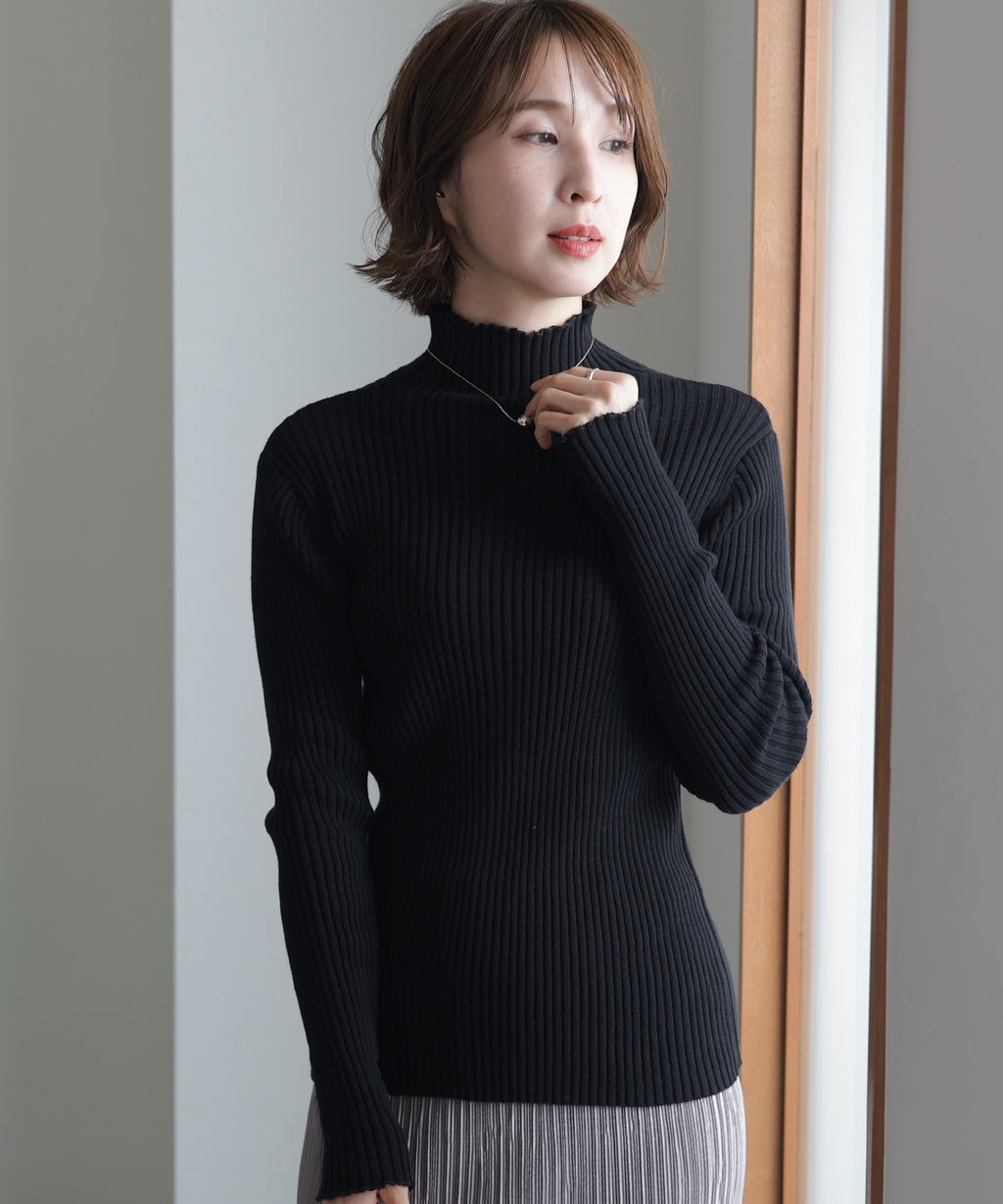 プールヴー PourVous メロウ襟タートルネックリブニット