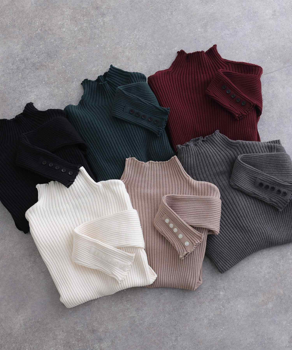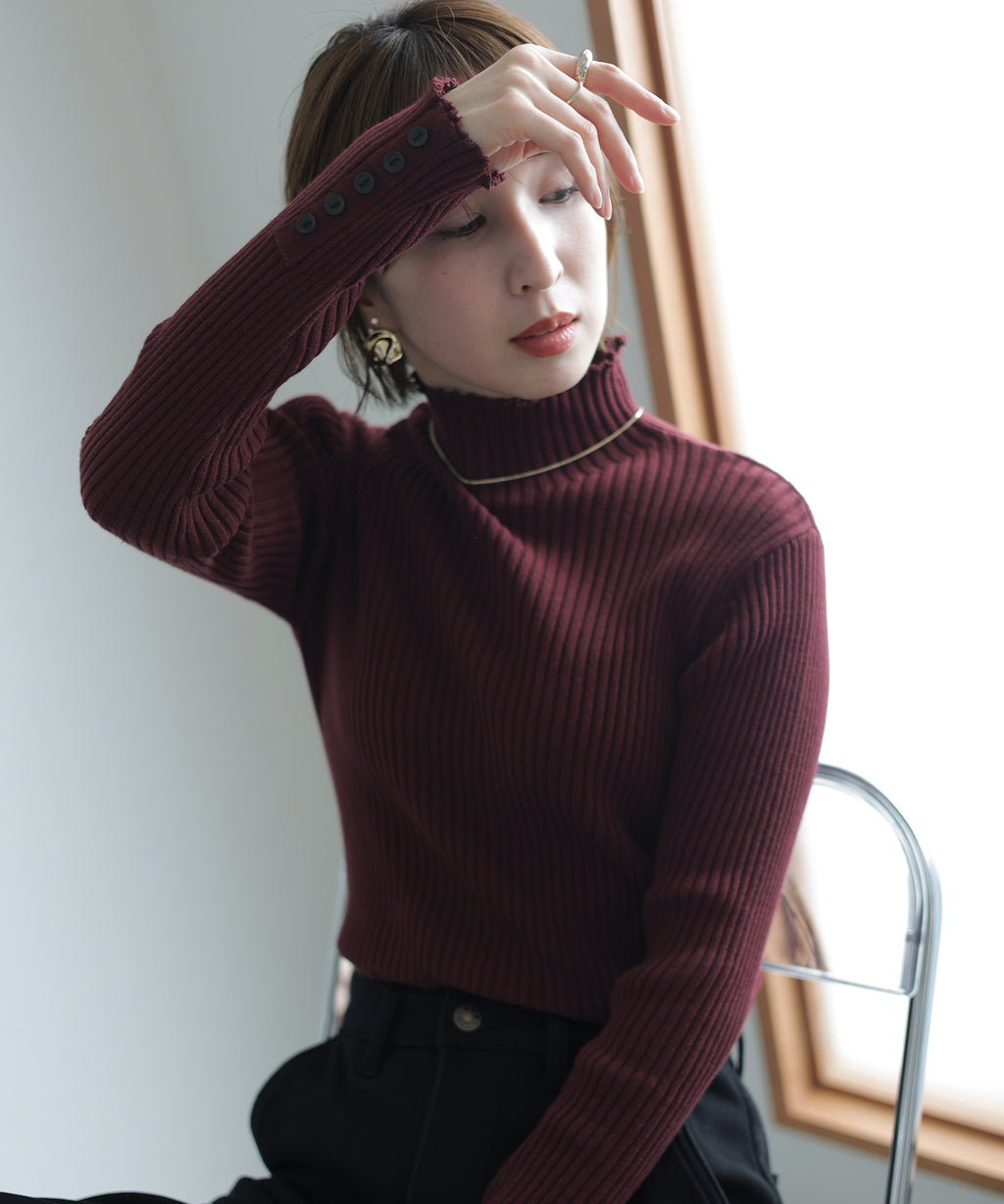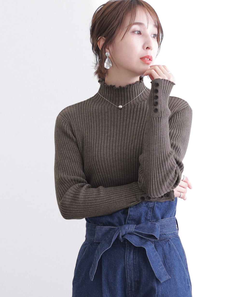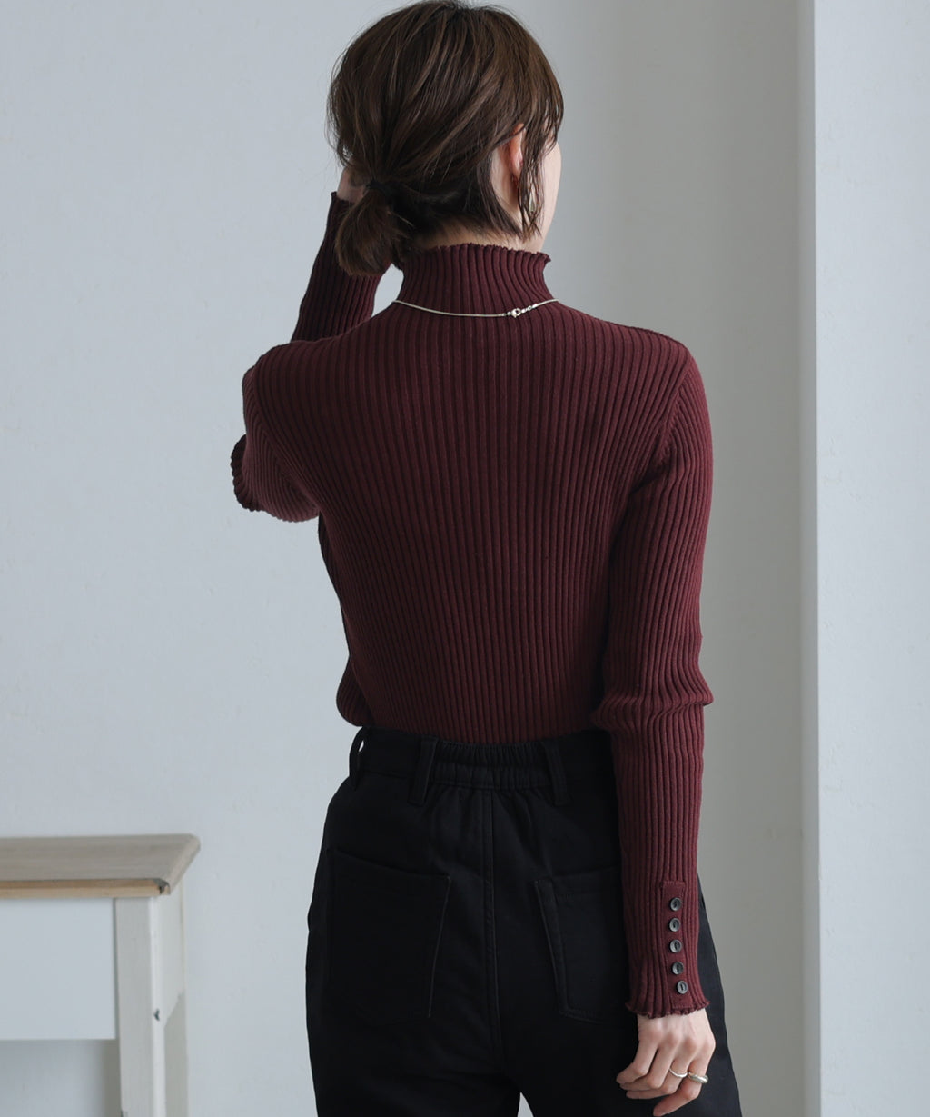 プールヴー PourVous メロウ襟タートルネックリブニット