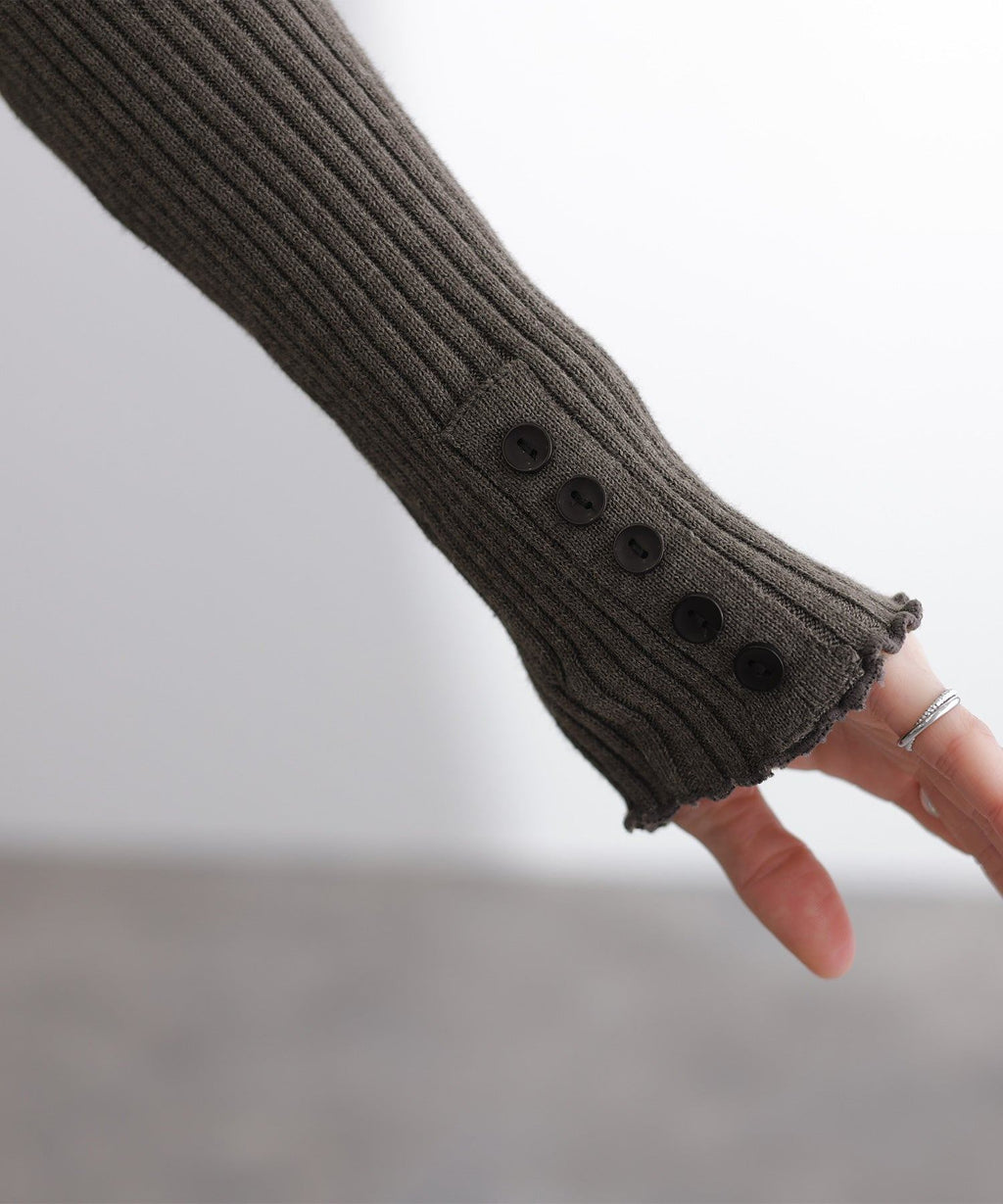 袖のワンポイントにシェルボタンが付いているデザインです。