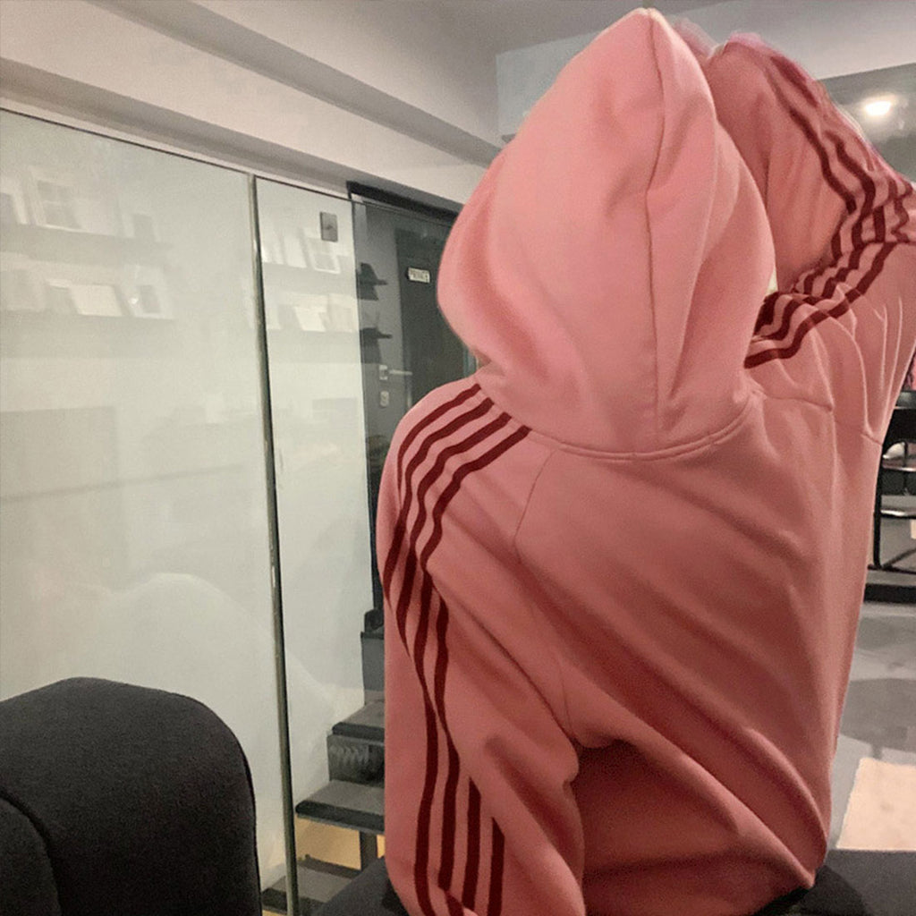 袖にはストライプ模様が入っており、よりスポーティでカジュアルな雰囲気を演出しています。