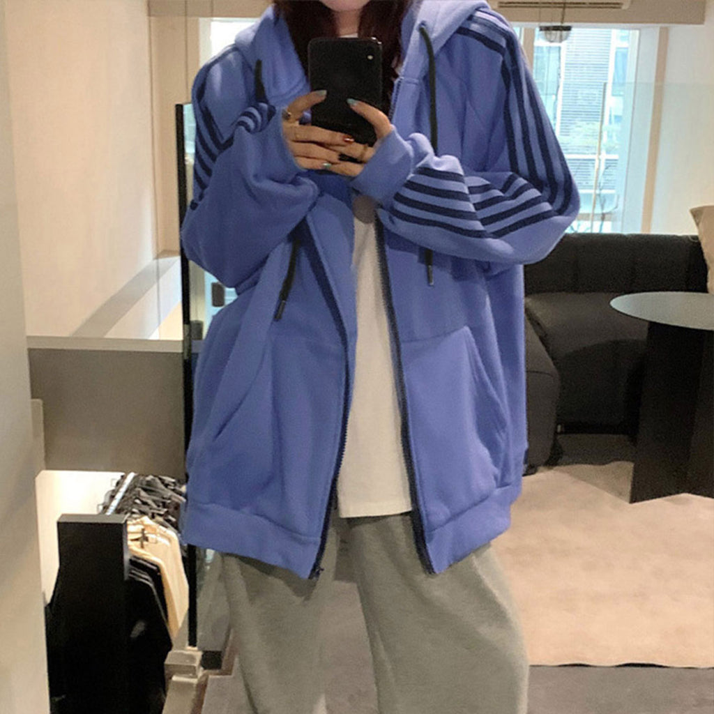 フード付き トレーナー長袖 オシャレ カジュアル レディース 前開き 韓国風 体型カバートップス ストリート着やせ