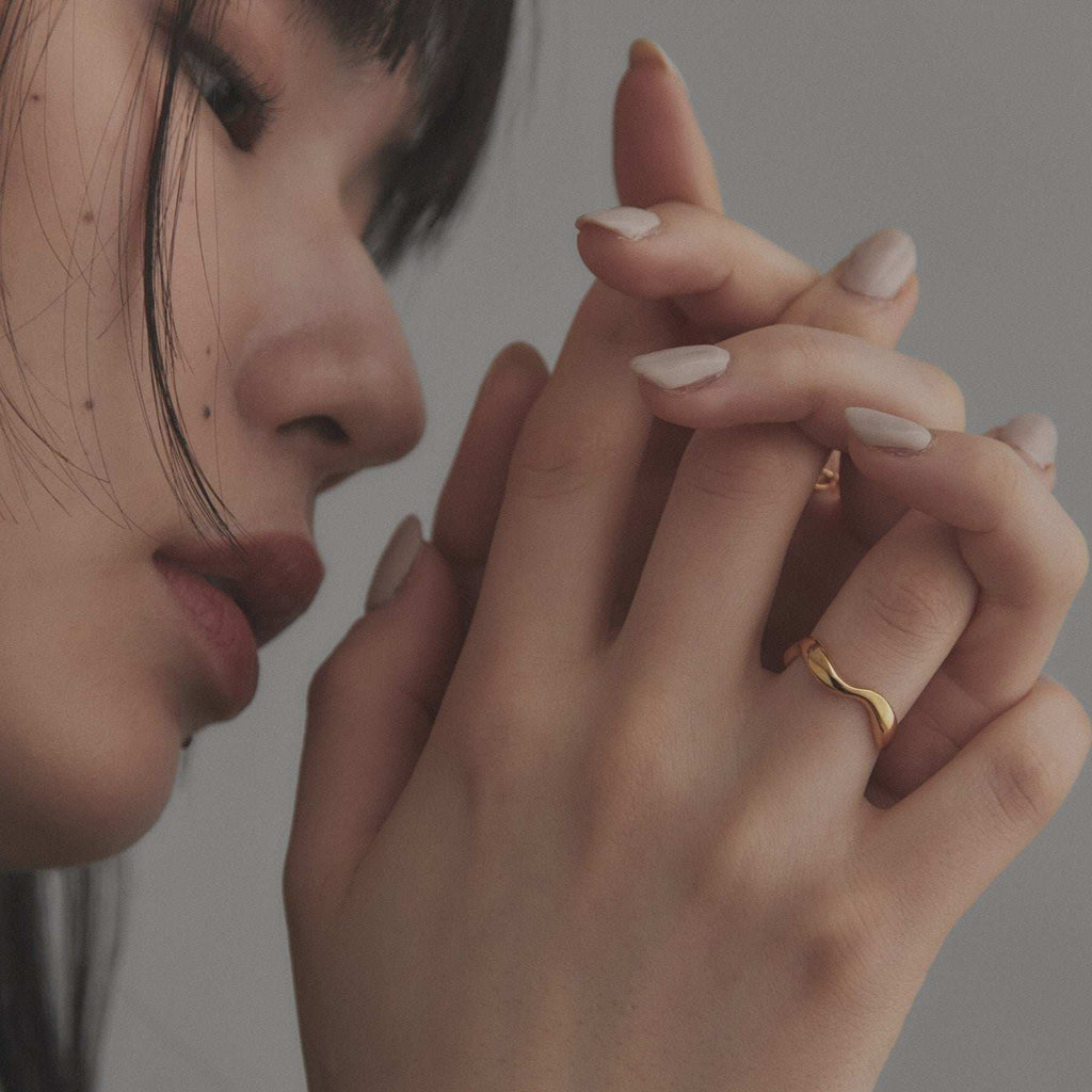 重ね付けも楽しみやすいデザインでウェーブのフォルムが指先に抜け感を与えてくれます。