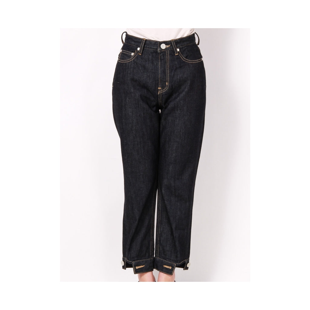 クールなヘムでヒト癖効かせたルーズデニムパンツです。イレヘム、ボタン付きのスタイリッシュな仕上がりが足元をすっきり見せます。