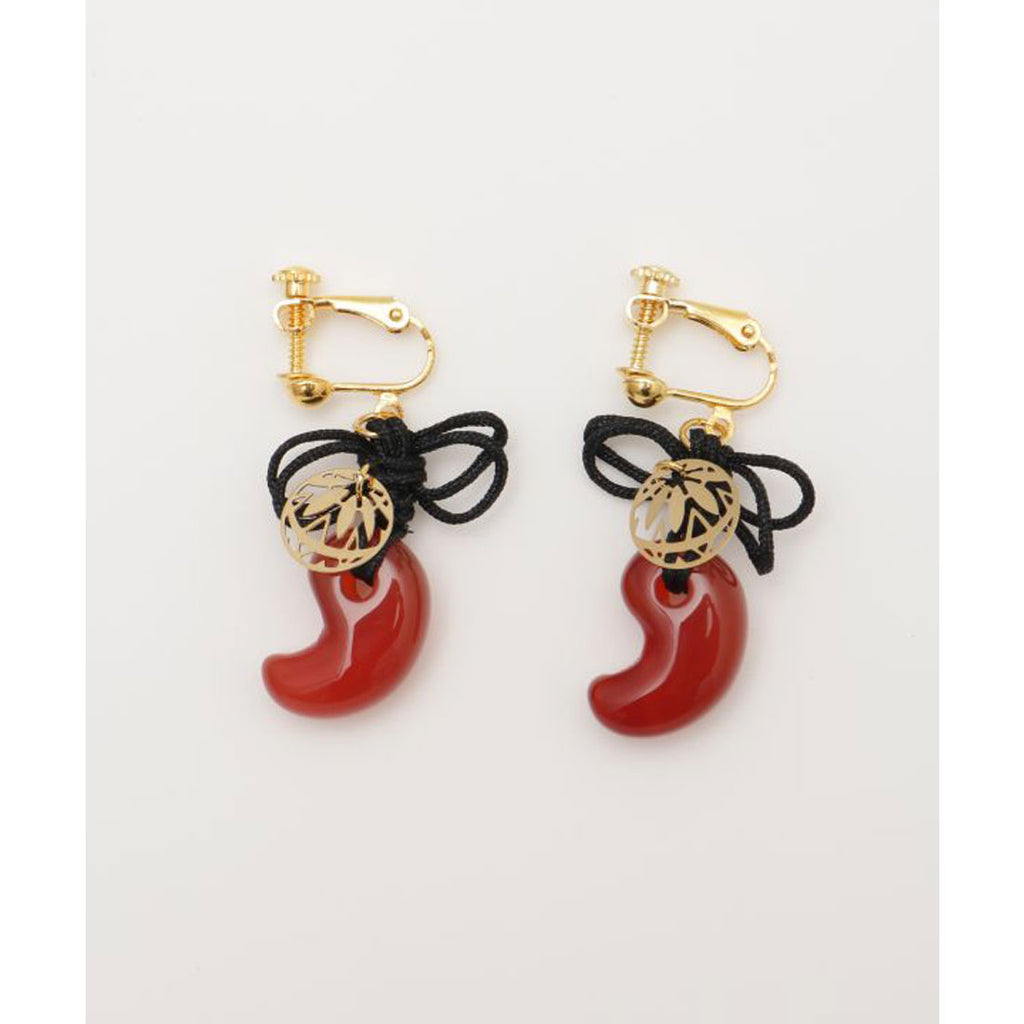 天然石の勾玉と透かし和モチーフを組み合わせたイヤリング。二重叶結びをイメージしたモチーフはあなたの願いを叶えるお守りとしてどうぞ。