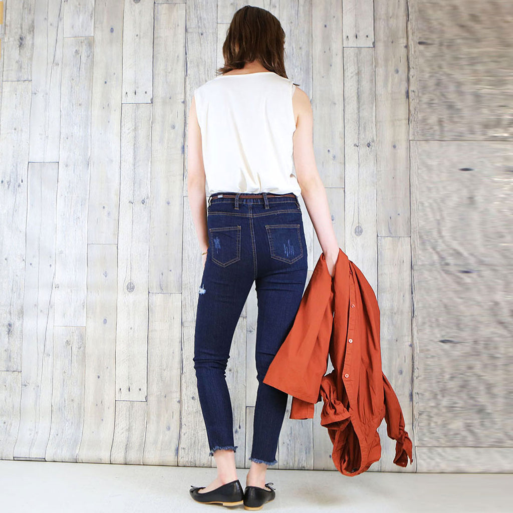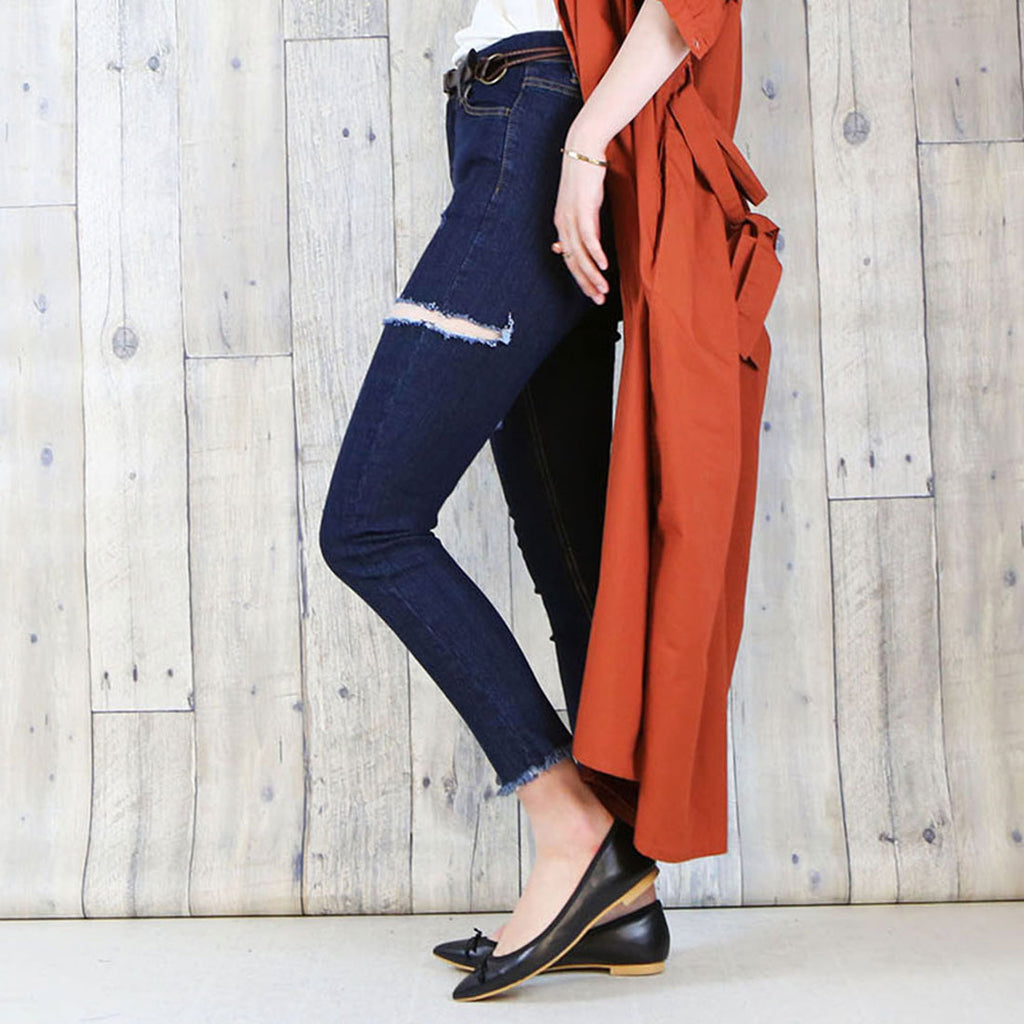 素材には、伸縮性に優れたデニム生地を使用している為、 窮屈感がなく長時間履いてもストレスを感じないスキニーパンツ。 股下丈は長すぎないので、足首に溜まることがなくすっきりと履いて頂けます。 Tシャツやトレーナー、パーカーと合わせて