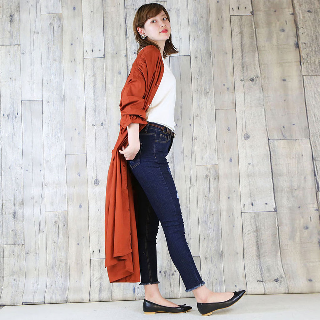 秋冬はカーディガンやニット、ダウンコートとの相性◎な万能パンツです。