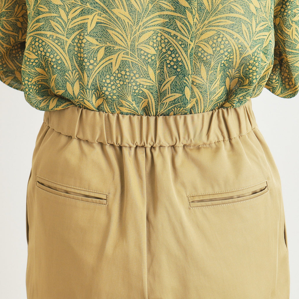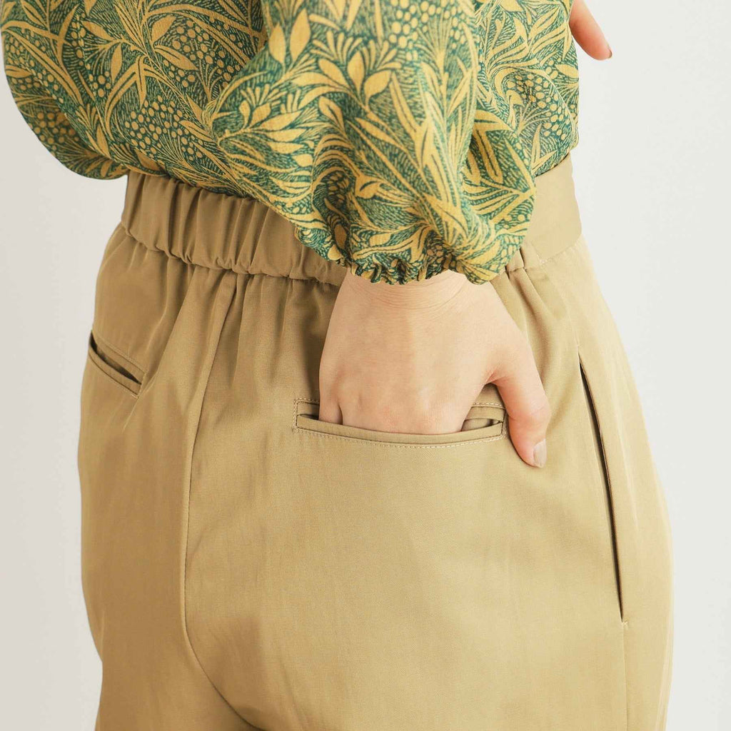 ストレートなシルエットで脚のラインを美しく見せ、ウエストには程よいフィット感を持たせました。
