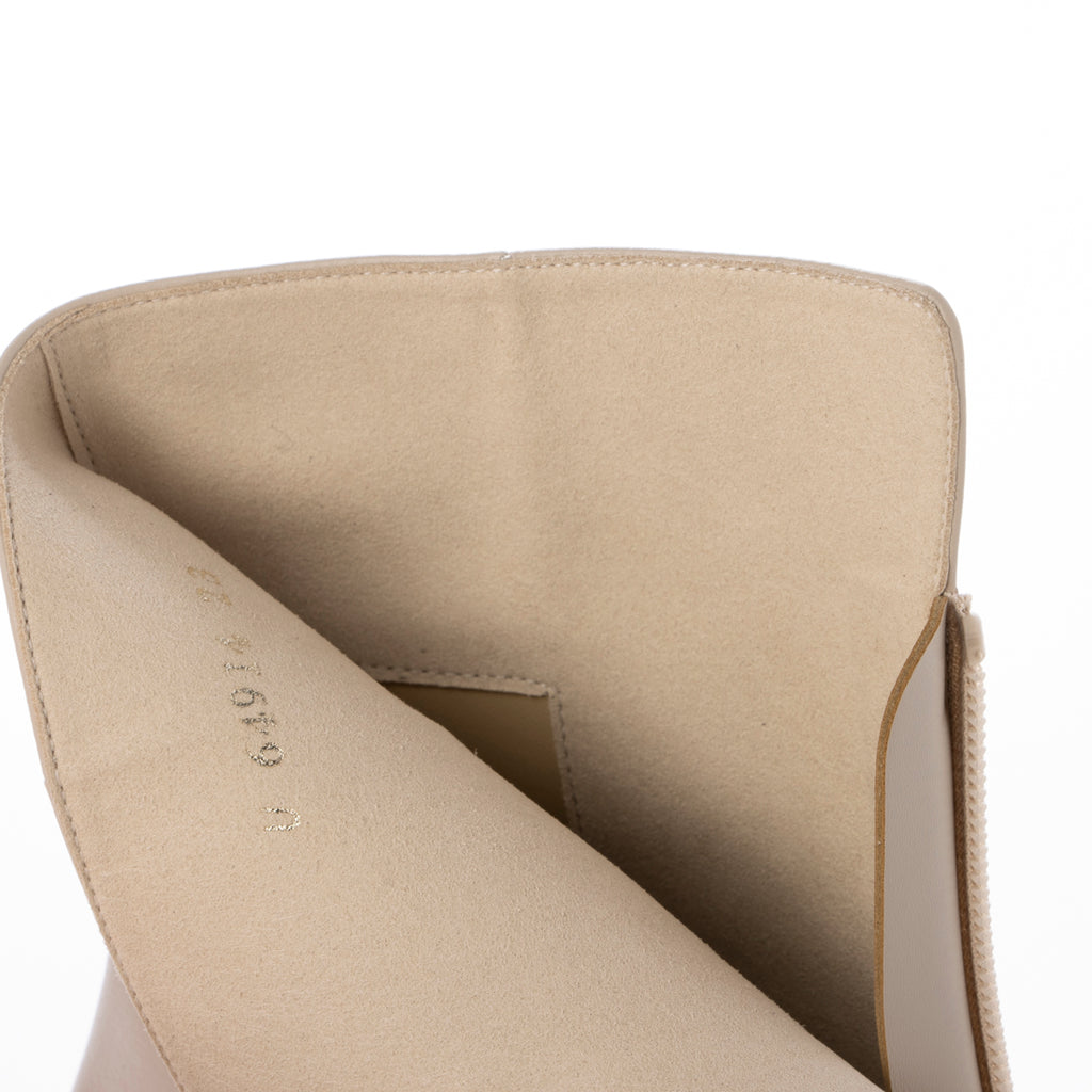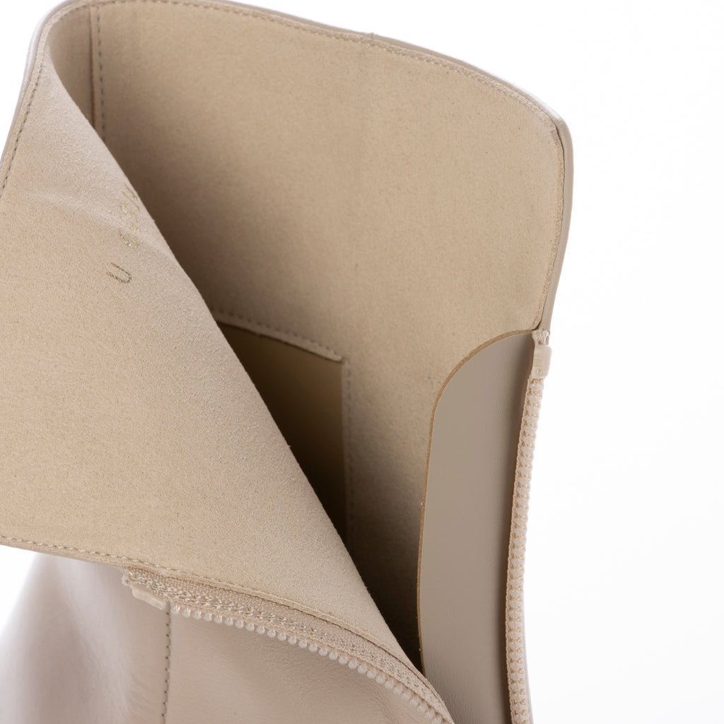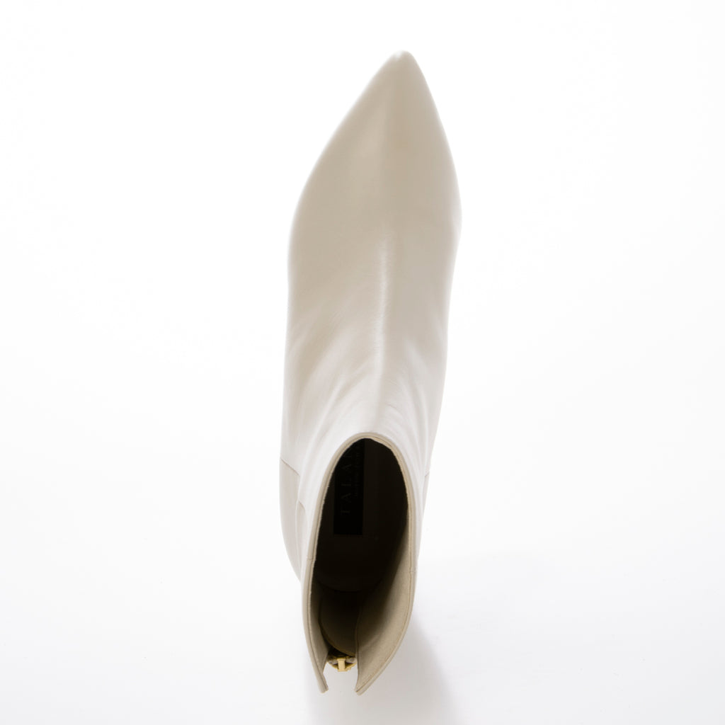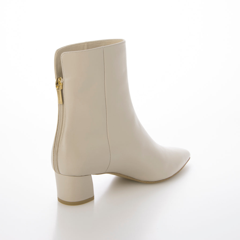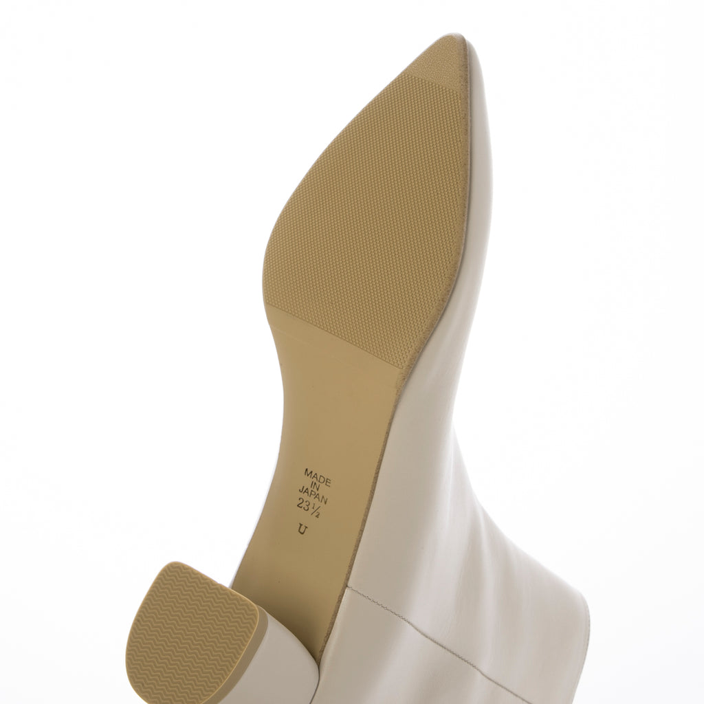 やや丸みを感じるポインテッドトウのシンプルプレーンなショートブーツ。