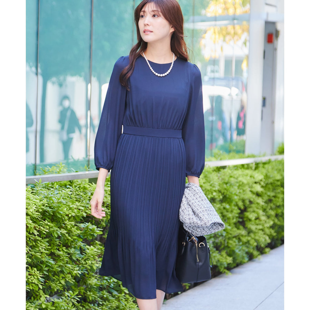 COUP DE CHANCE COUP DE CHANCE 【可水洗/典禮/一件式/可搭配外套】輕盈優雅,空氣感的百褶連衣裙