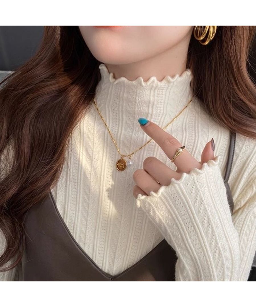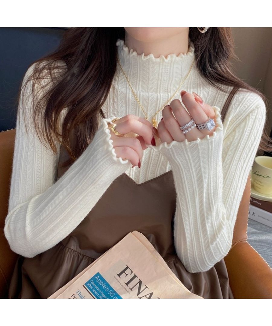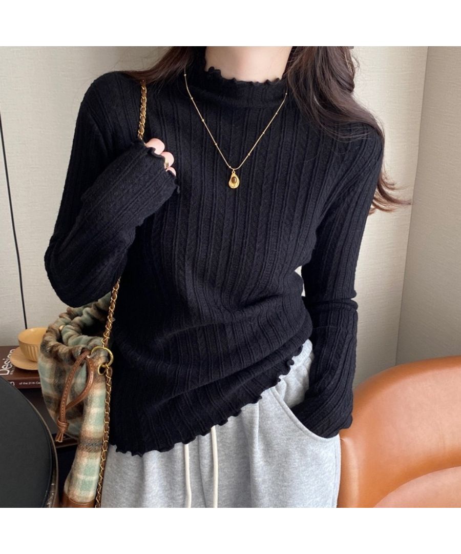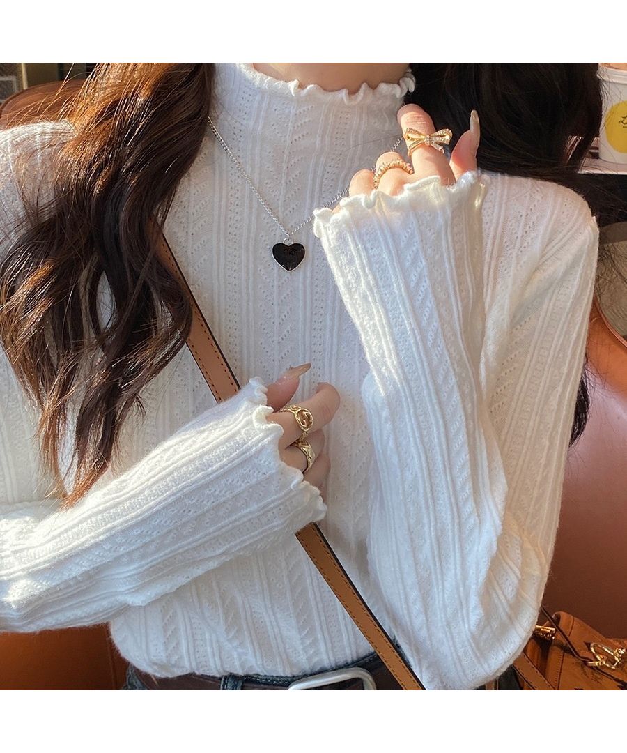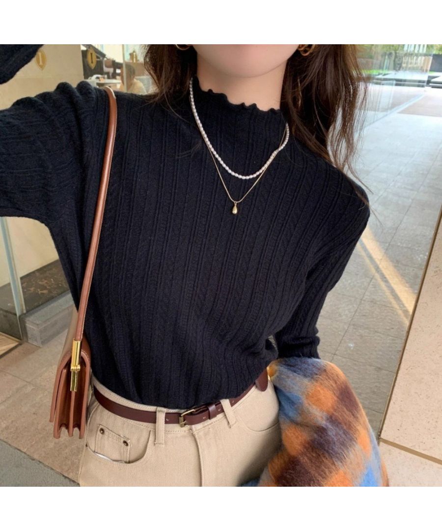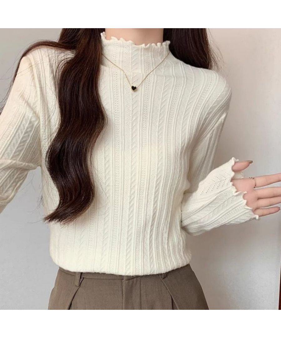 最佳商店 Beststore 上衣 毛衣 高領 蕾絲領 無圖案 長袖 毛衣 內搭 T恤 毛衣 韓國時尚毛衣 薄款 春季新作 蕾絲毛衣 伸縮性 休閒