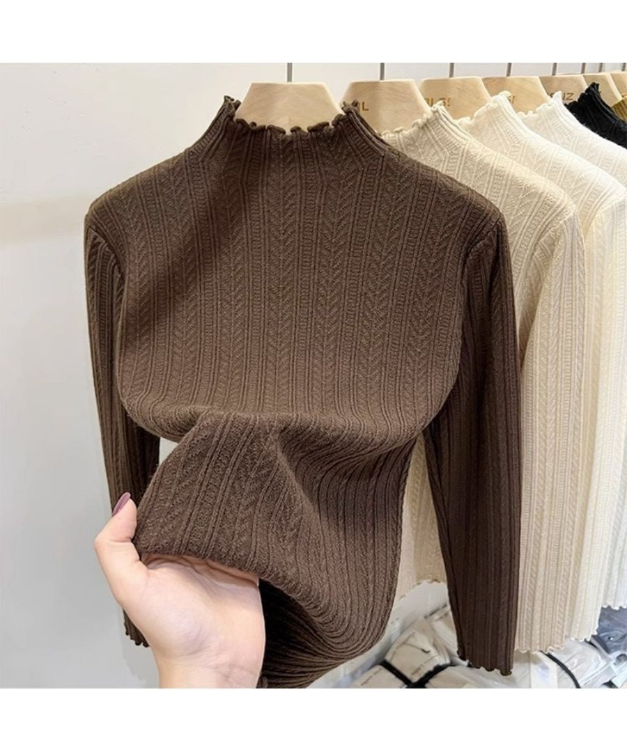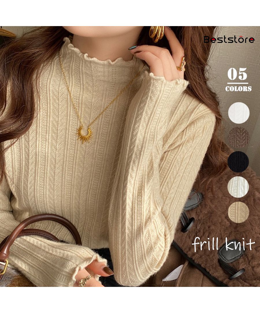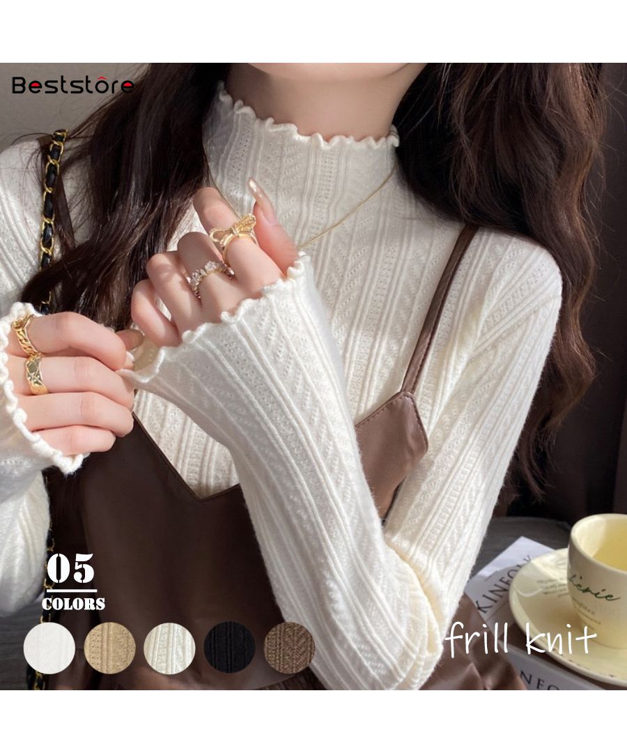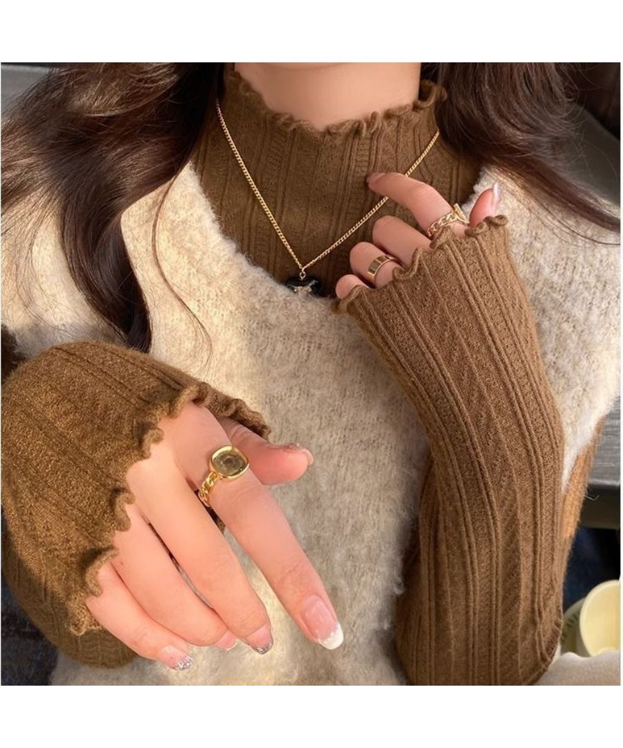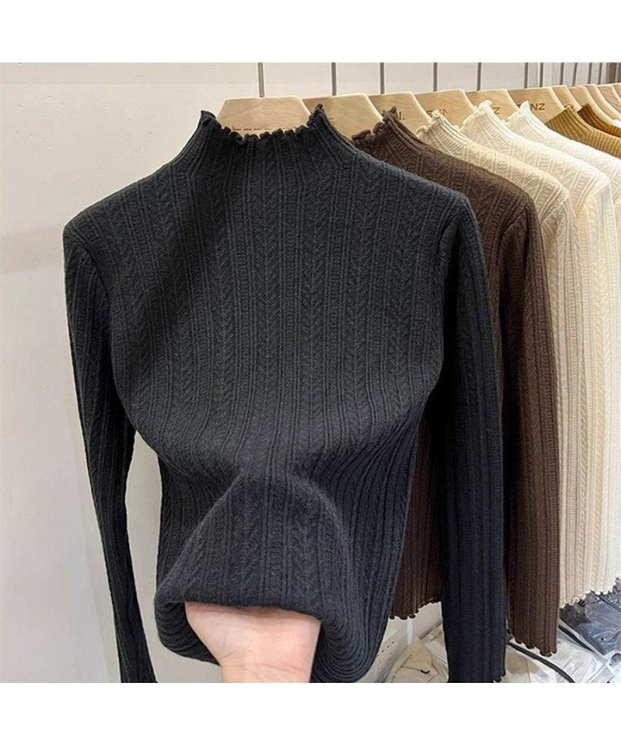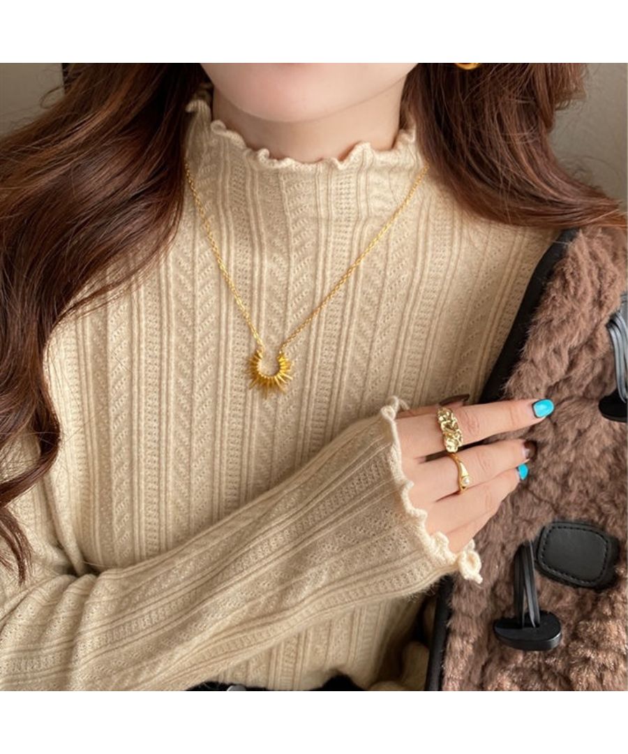 最佳商店 Beststore 上衣 毛衣 高領 蕾絲領 無圖案 長袖 毛衣 內搭 T恤 毛衣 韓國時尚毛衣 薄款 春季新作 蕾絲毛衣 伸縮性 休閒