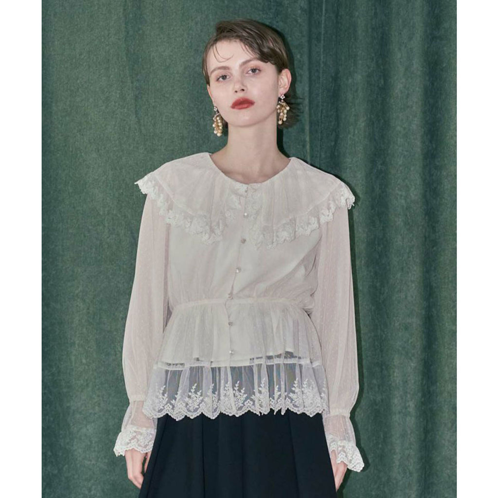 an another angelus 【可洗】蕾點蕾絲拼接點點薄紗襯衫