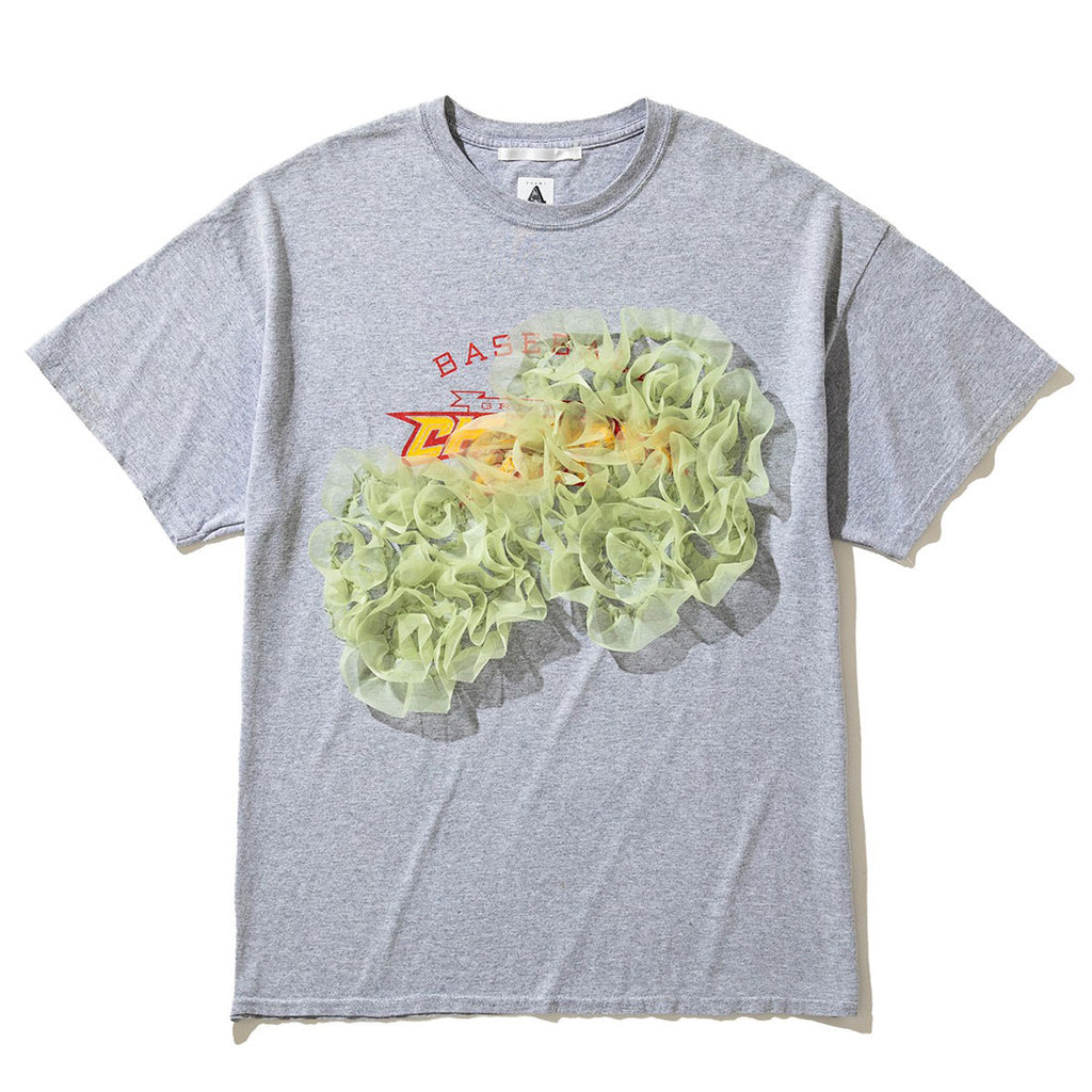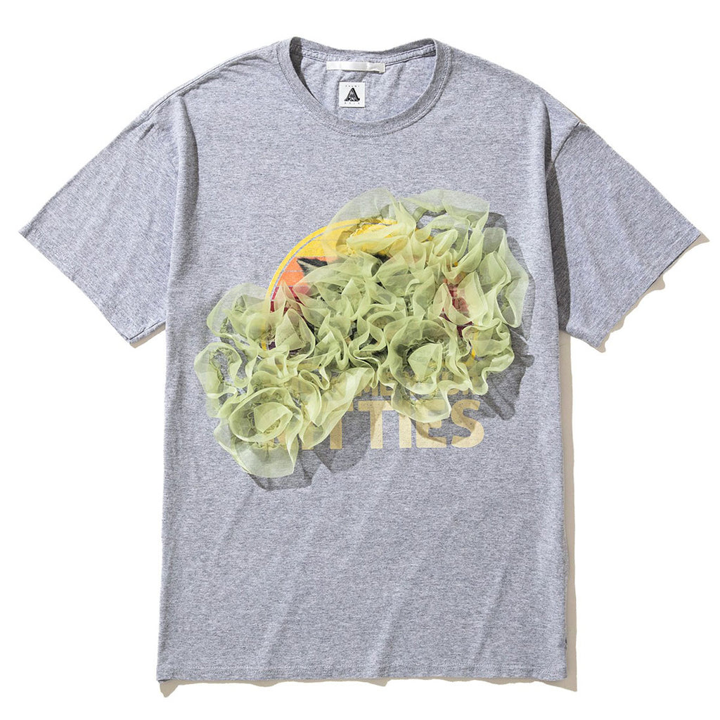 オーガンジーのオリジナル刺繍をTシャツに直接施しています。