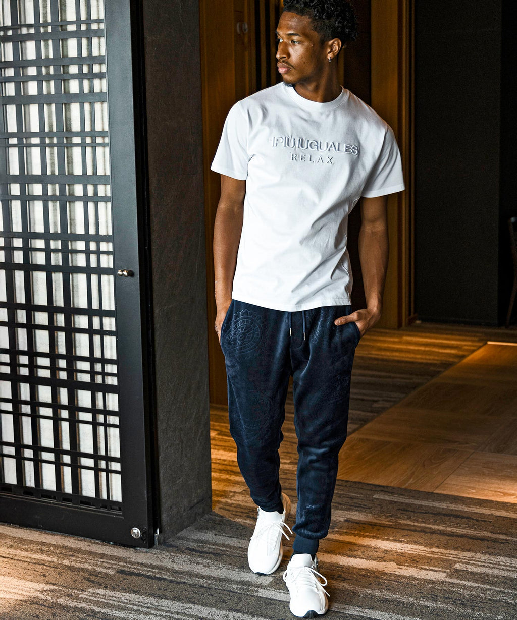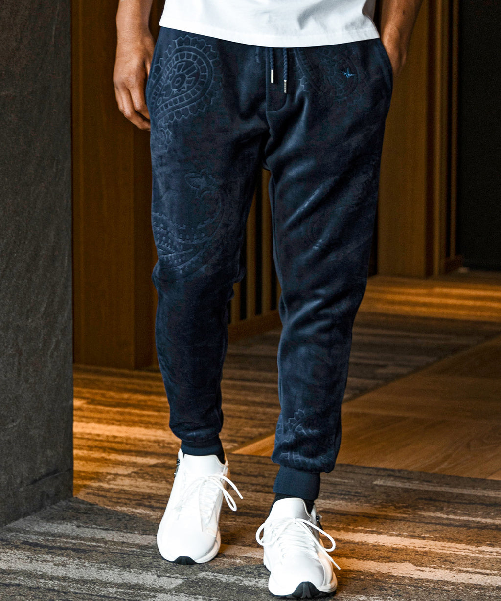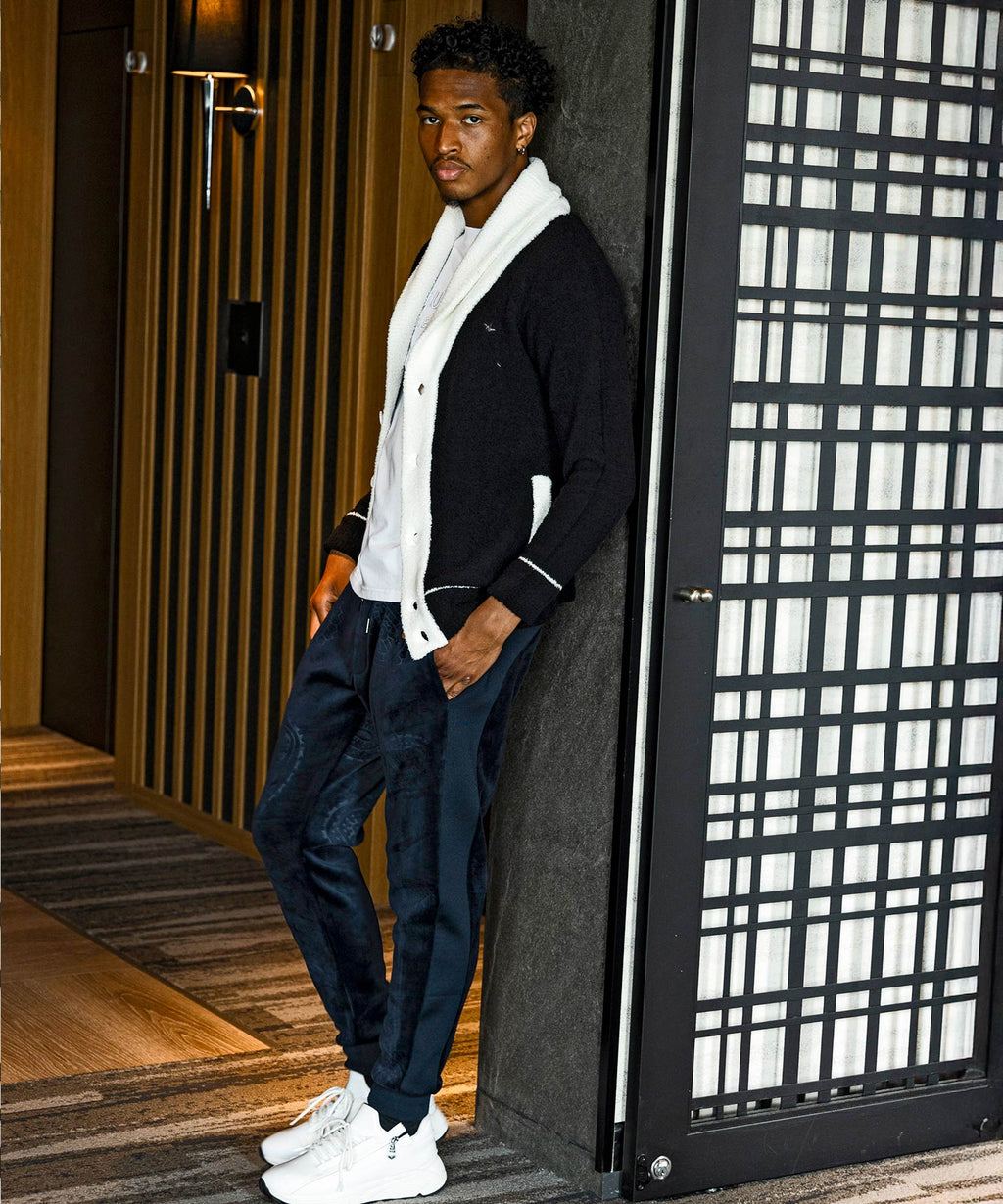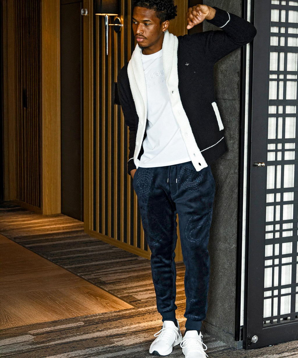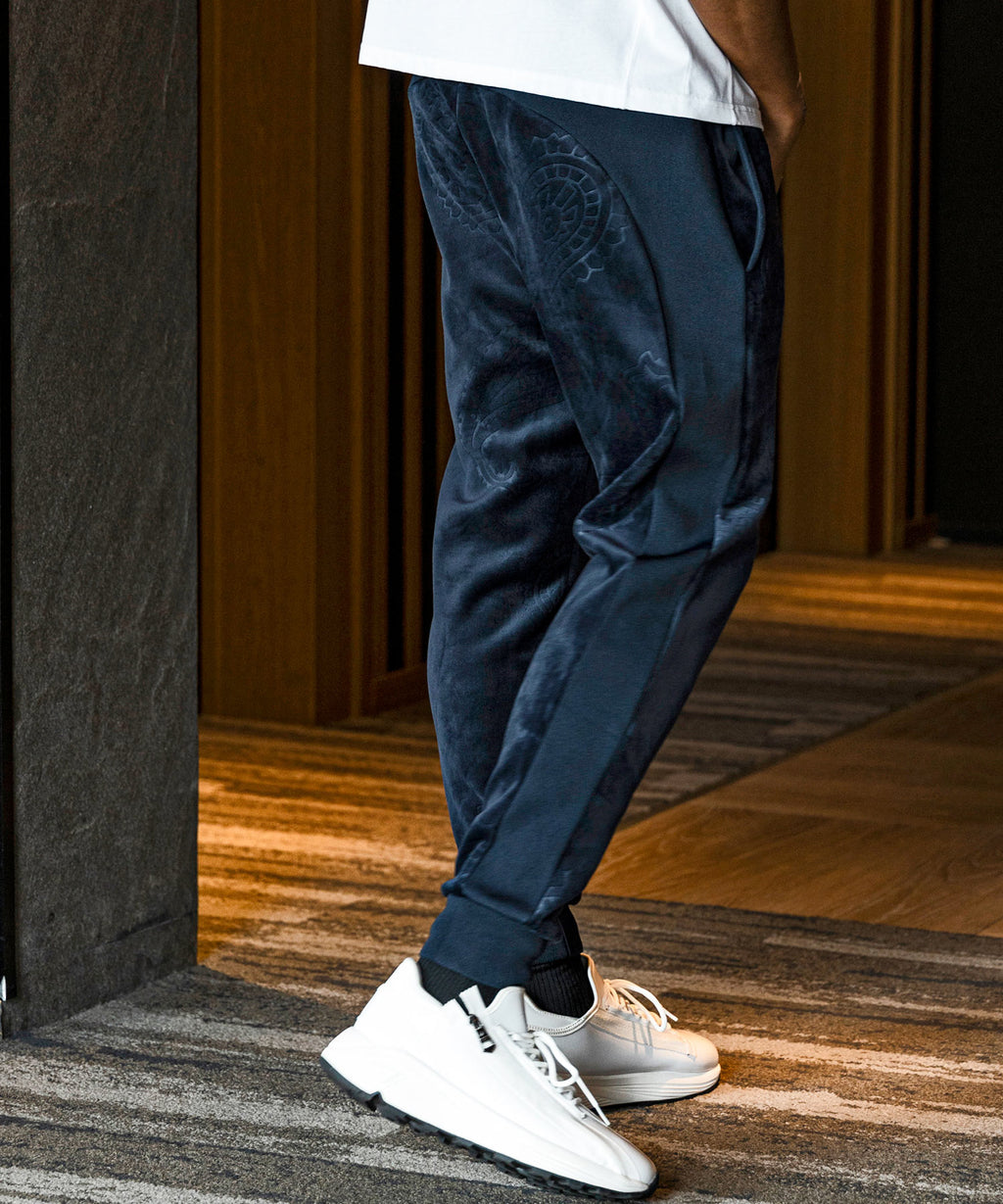 在休閒的慢跑褲款式中融合奢華的氣質。