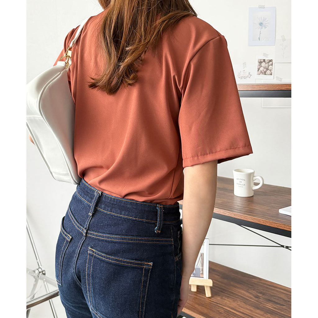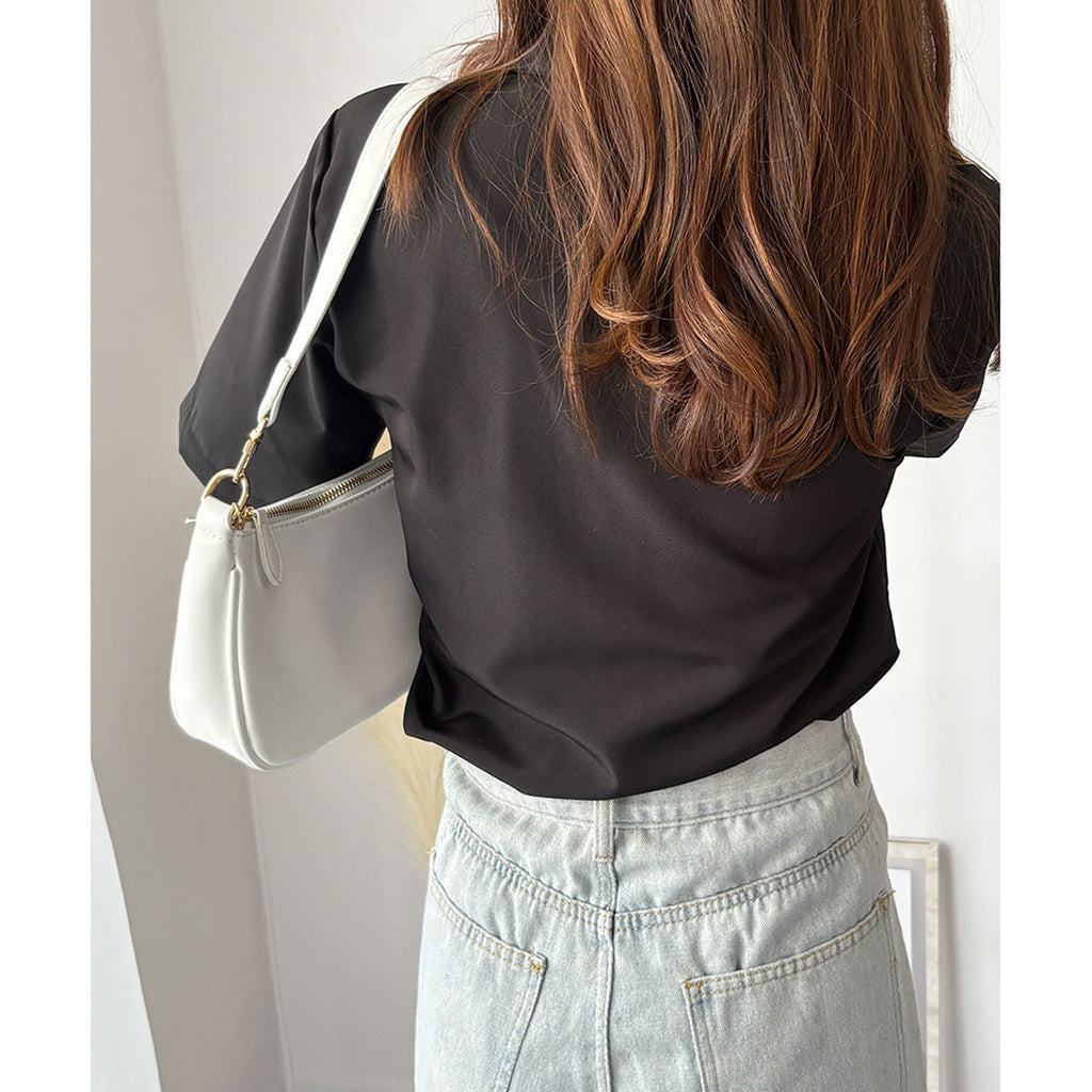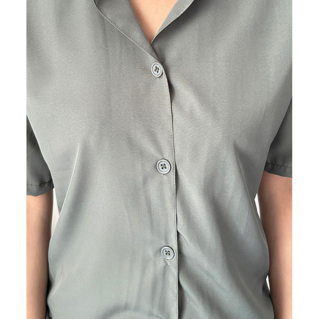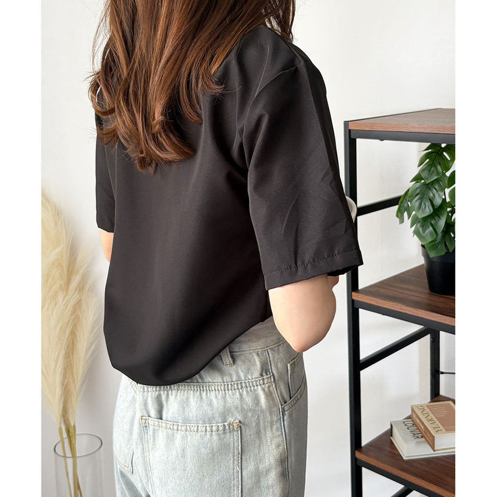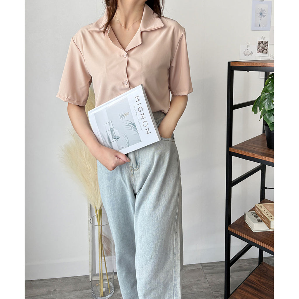 德威莉 Dewlily 開襟顏色短袖襯衫 女士 韓國 春夏 簡約 休閒 上衣 無圖案 時尚 成人 可愛 外出 上衣 涼爽 舒適