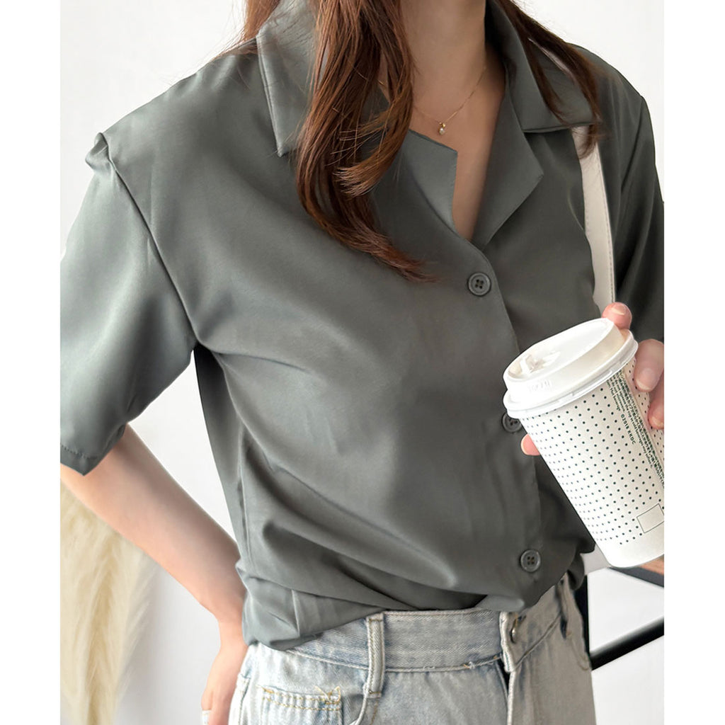 ・開襟設計讓臉部周圍看起來更加清爽的開襟襯衫◎