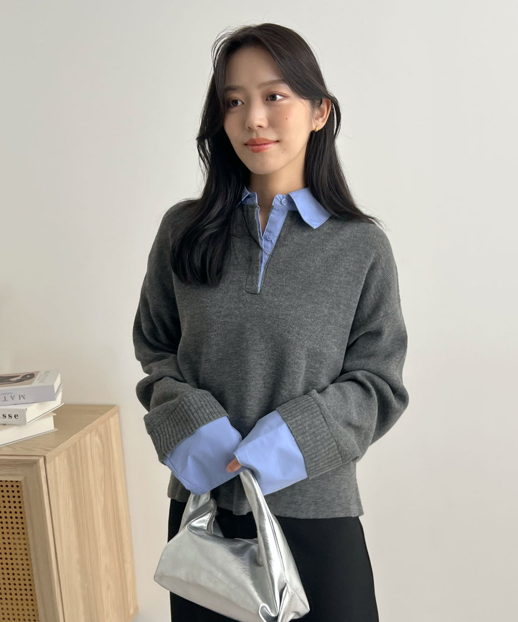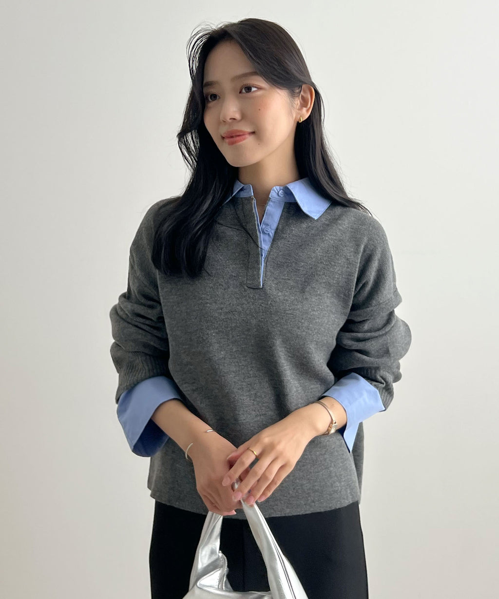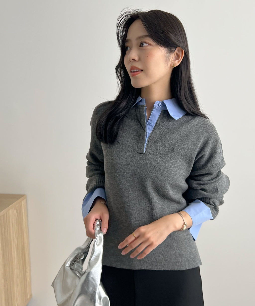 ・重疊穿搭風格的襯衫領設計,給人古典的印象