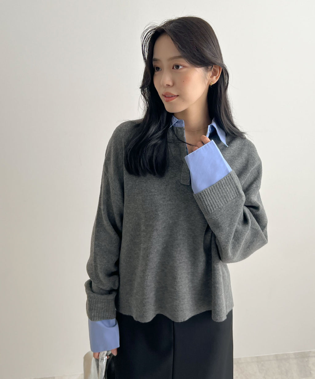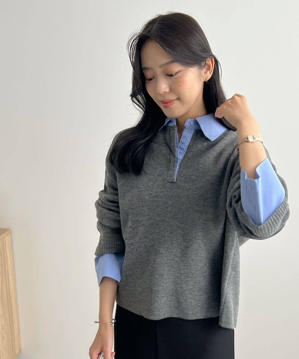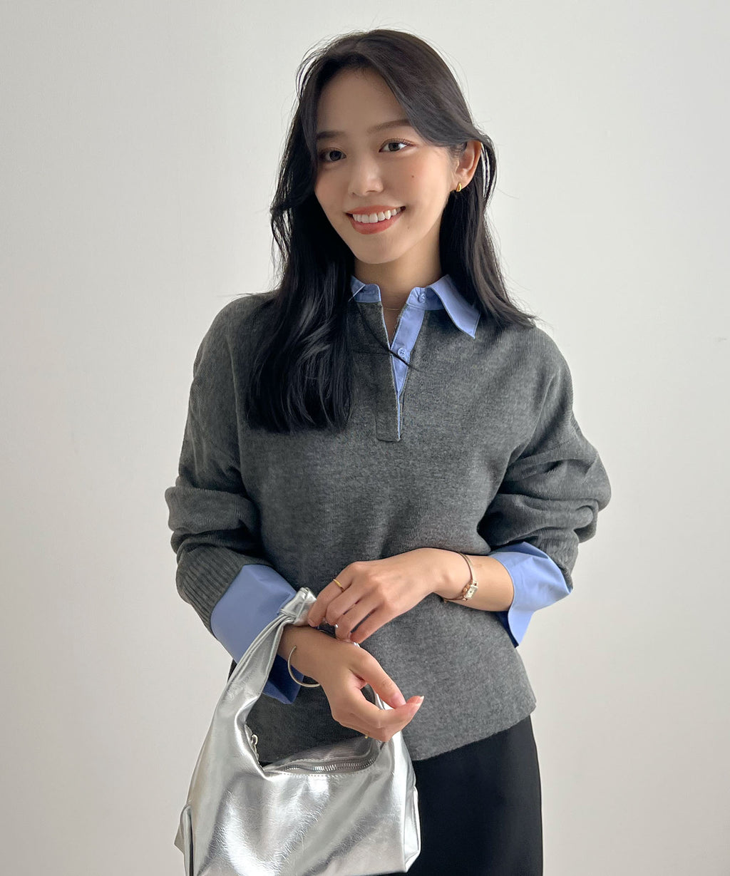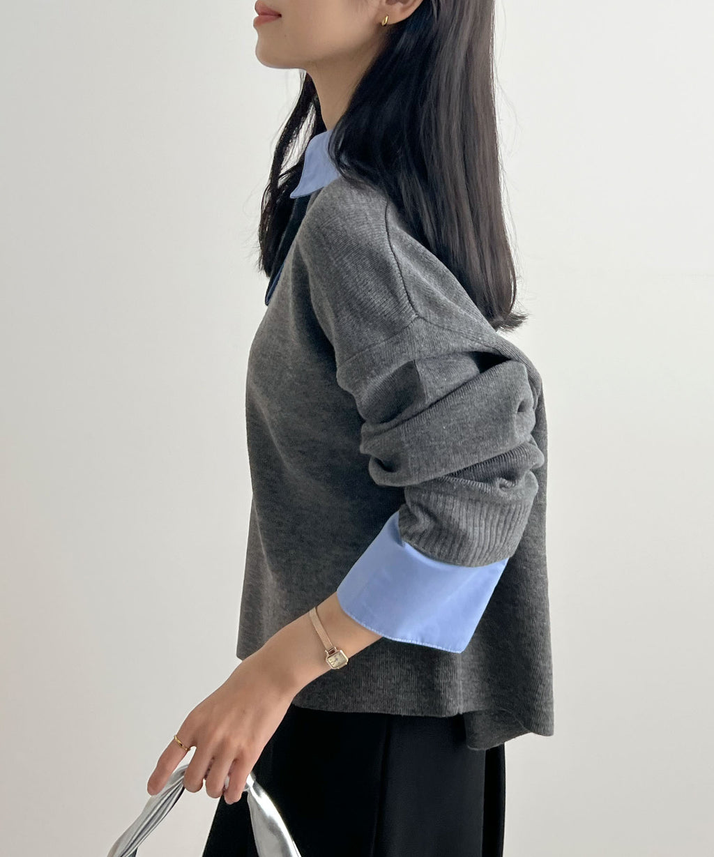 ・重疊穿搭風格的襯衫領設計,給人古典的印象