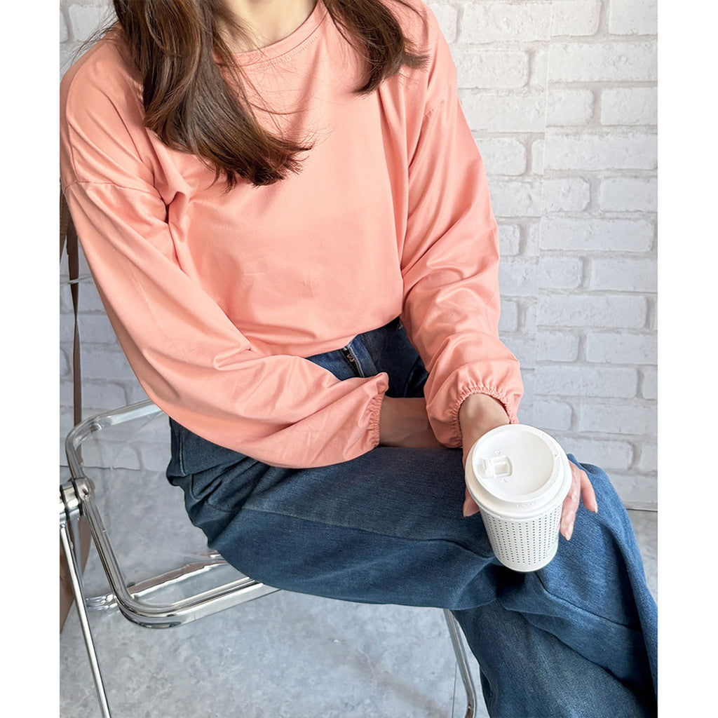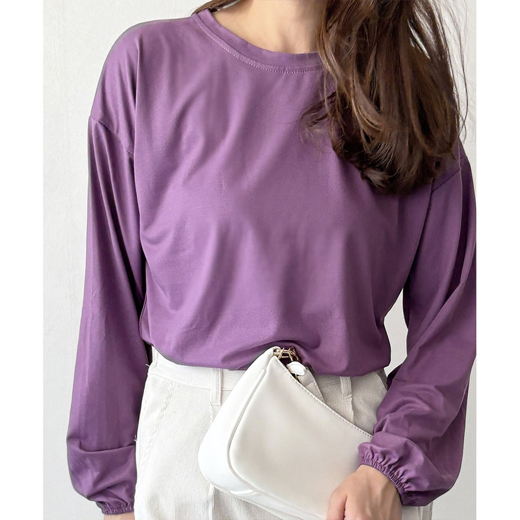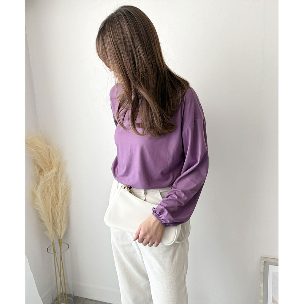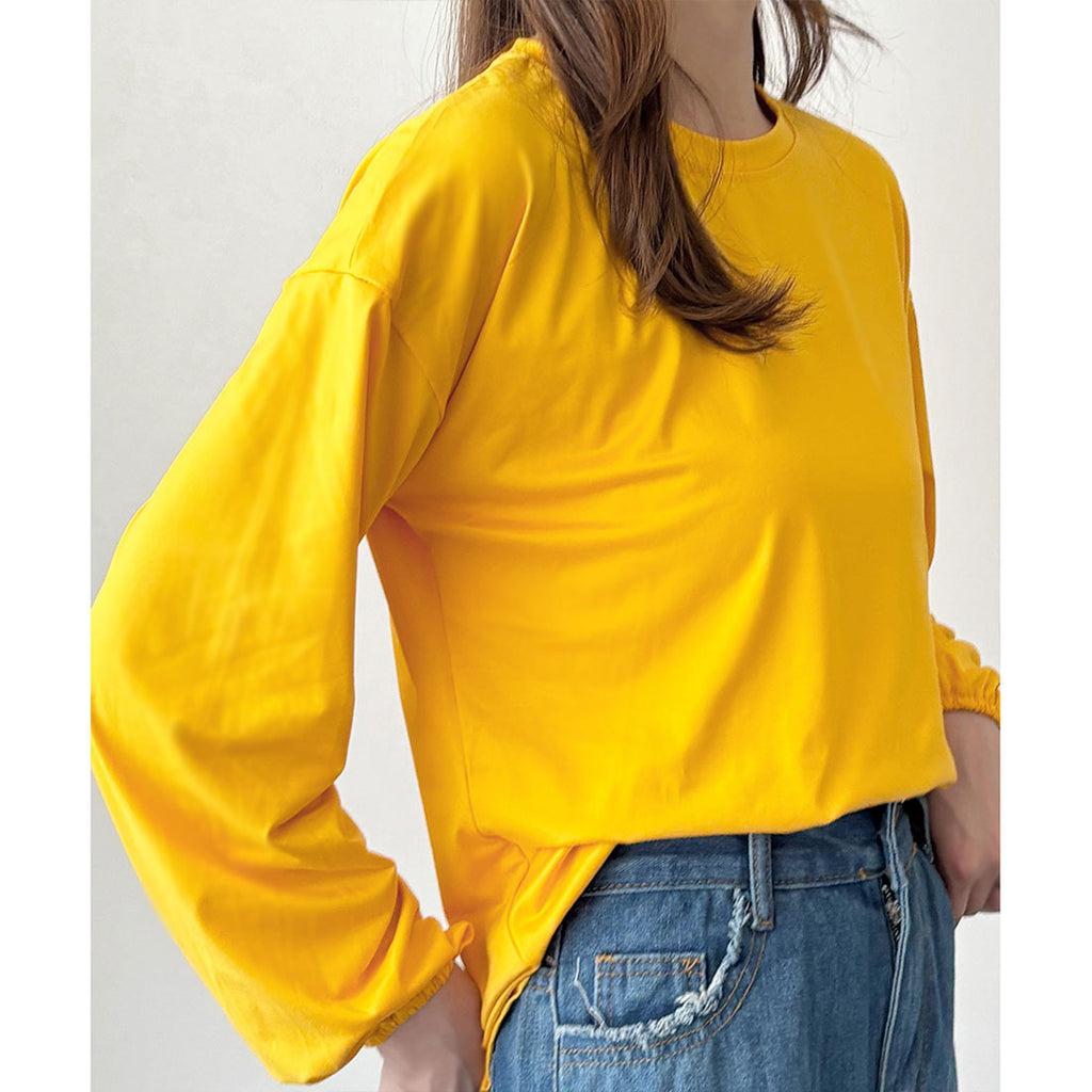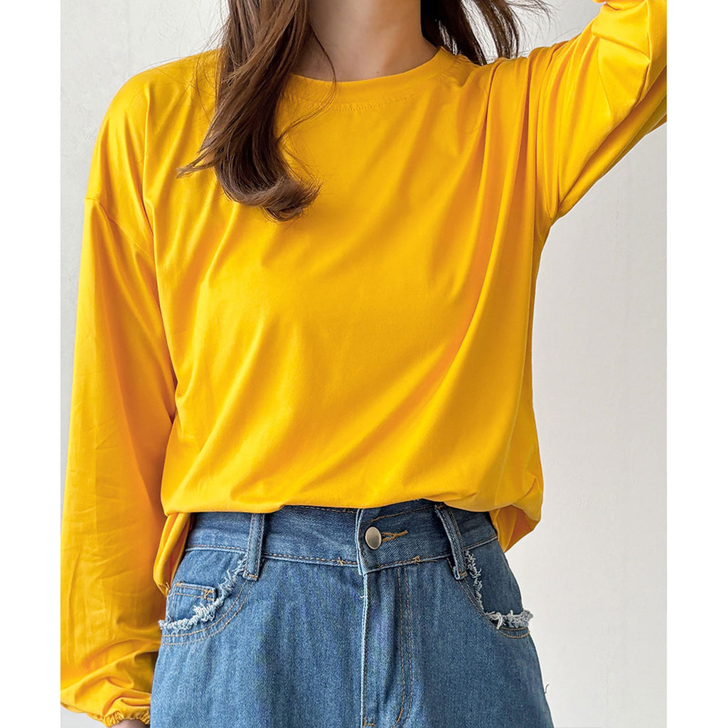德威莉 Dewlily 蓬鬆袖剪裁上衣 女士 韓國 休閒 長袖 寬鬆 素色 簡約 上衣 成人 放鬆 春 夏 秋 冬 百搭 日常穿搭