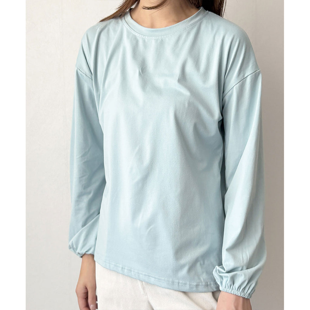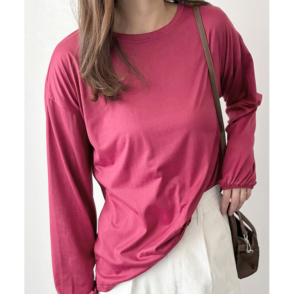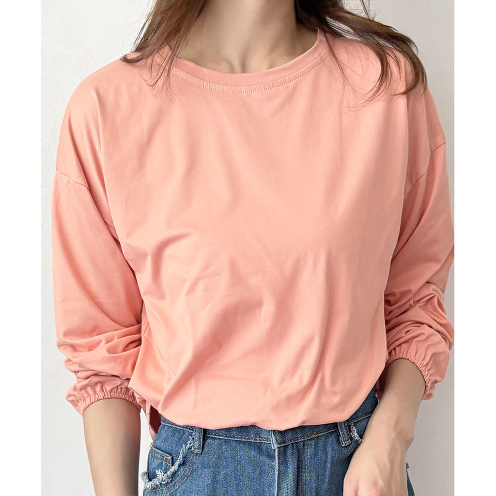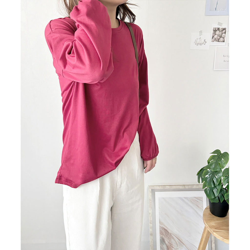 德威莉 Dewlily 蓬鬆袖剪裁上衣 女士 韓國 休閒 長袖 寬鬆 素色 簡約 上衣 成人 放鬆 春 夏 秋 冬 百搭 日常穿搭