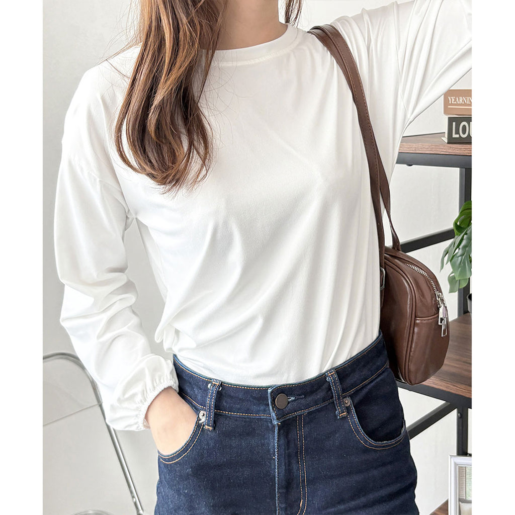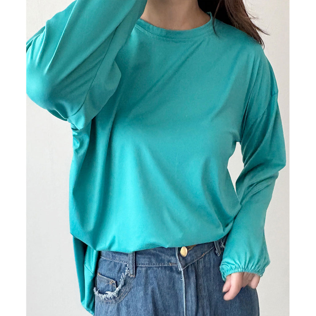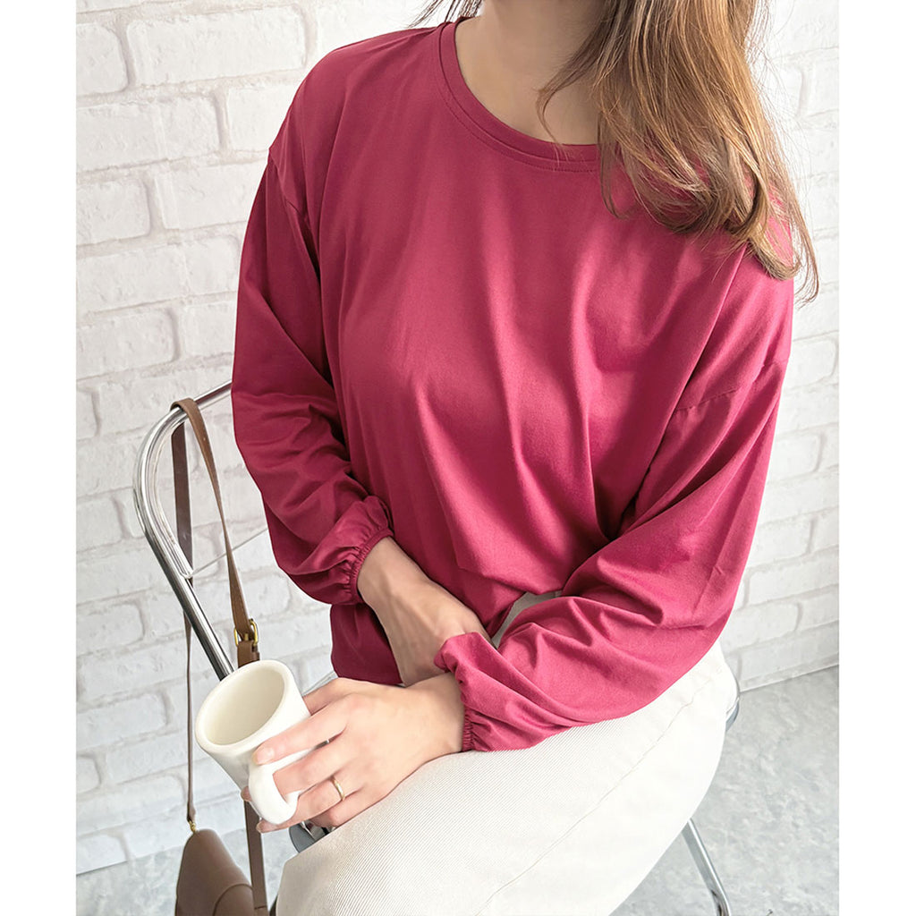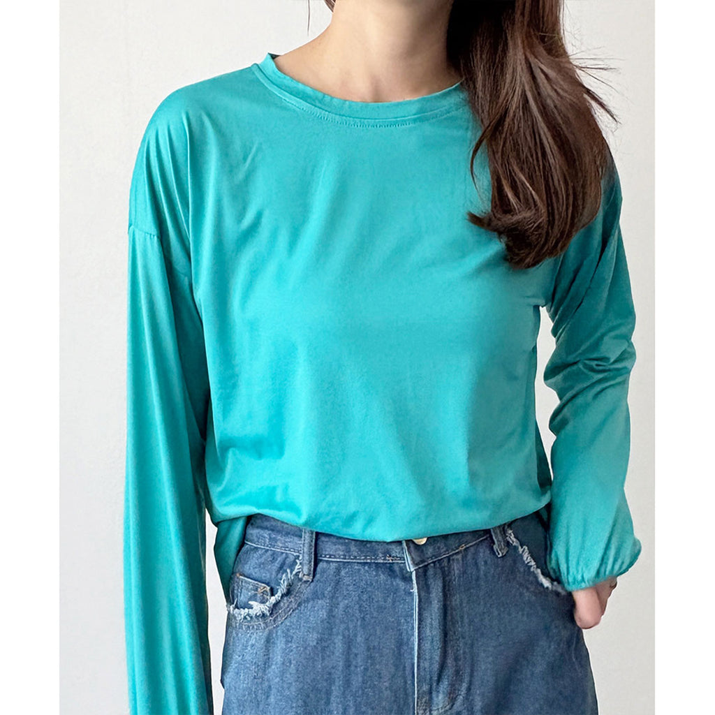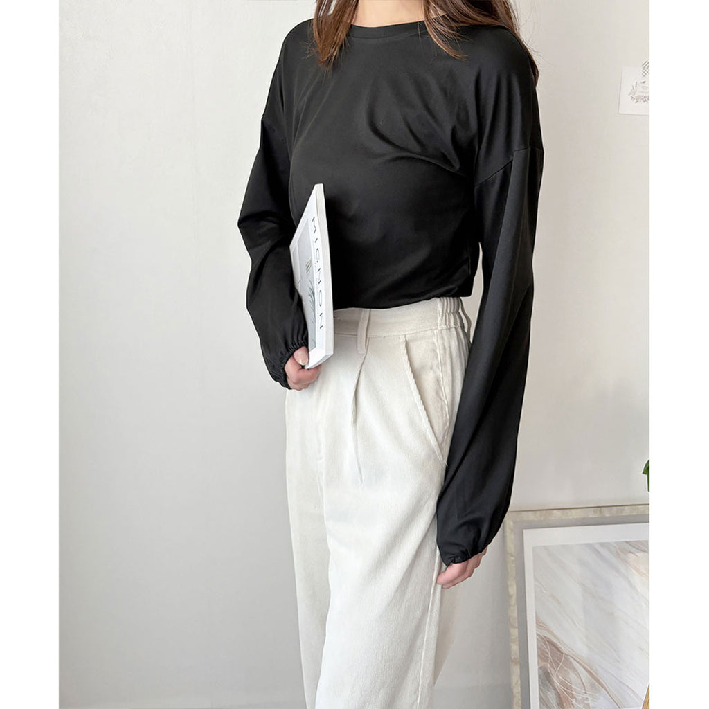 德威莉 Dewlily 蓬鬆袖剪裁上衣 女士 韓國 休閒 長袖 寬鬆 素色 簡約 上衣 成人 放鬆 春 夏 秋 冬 百搭 日常穿搭