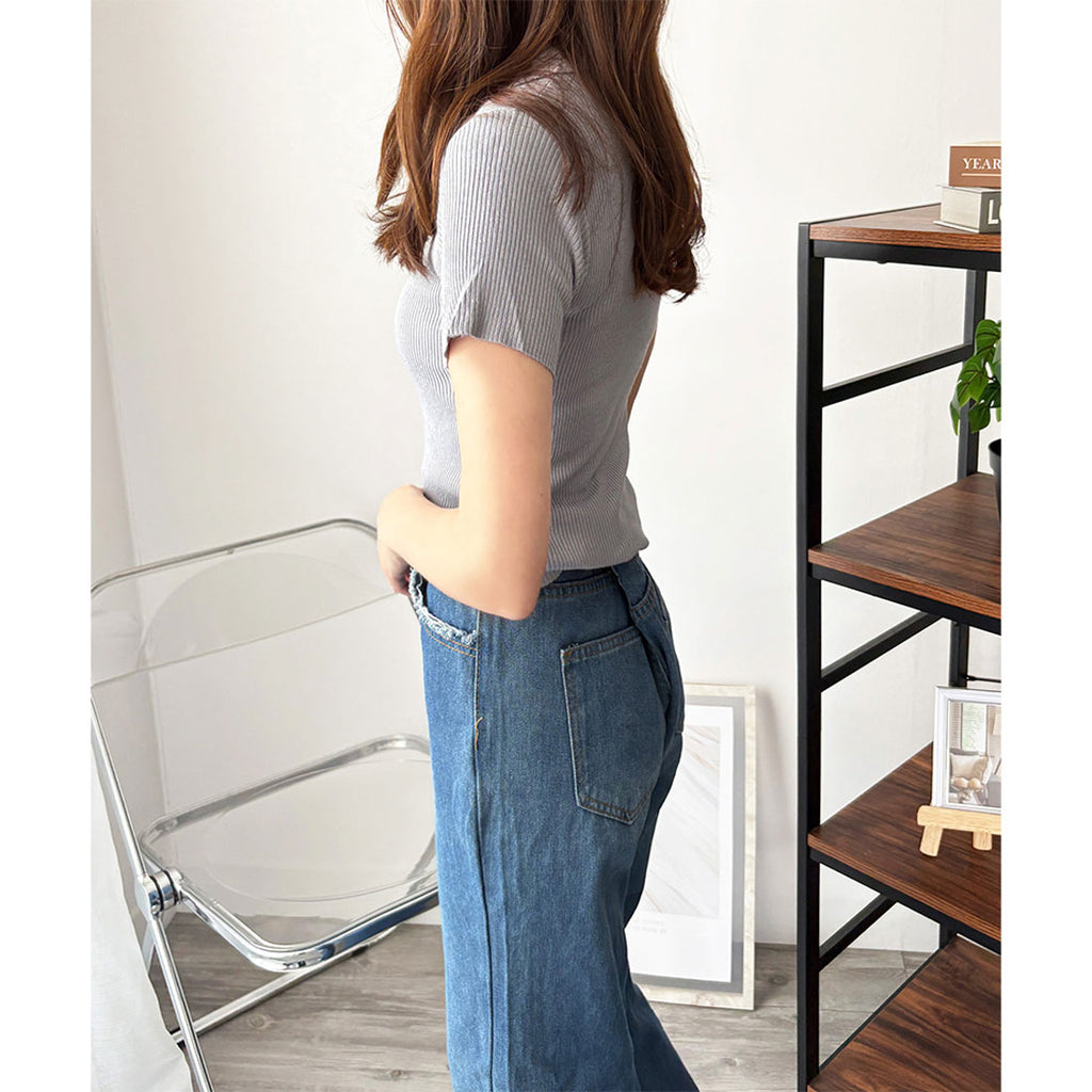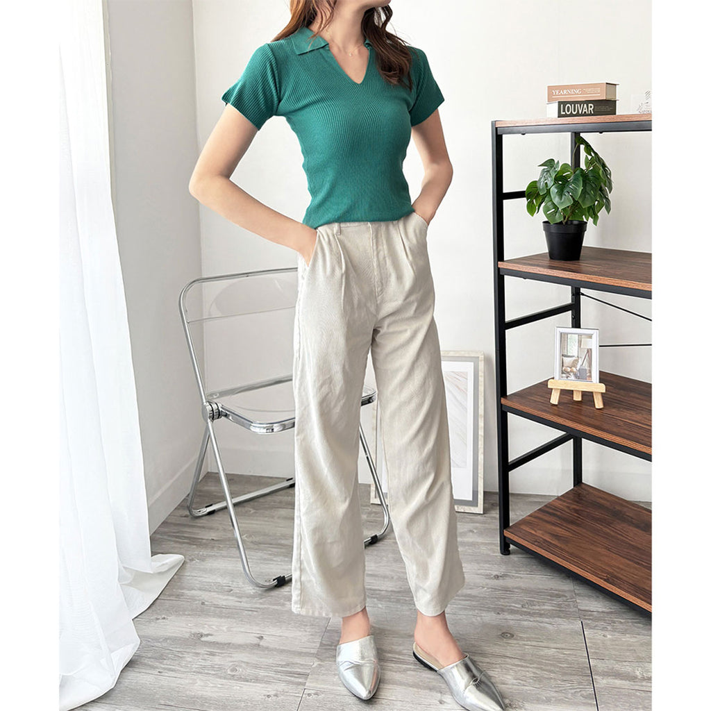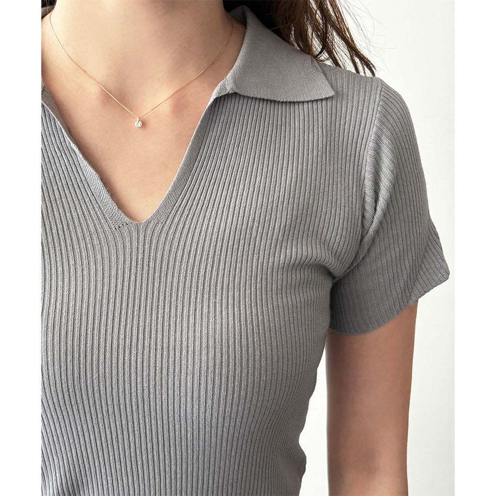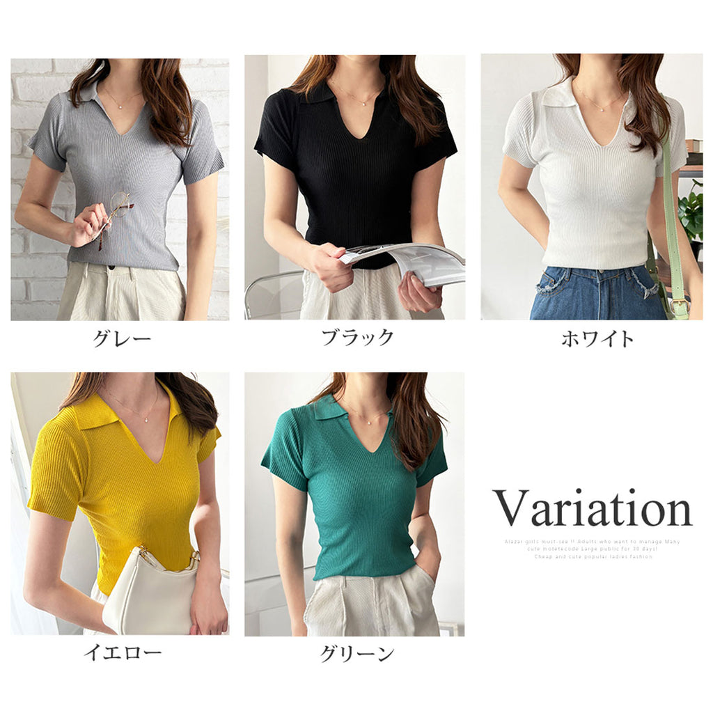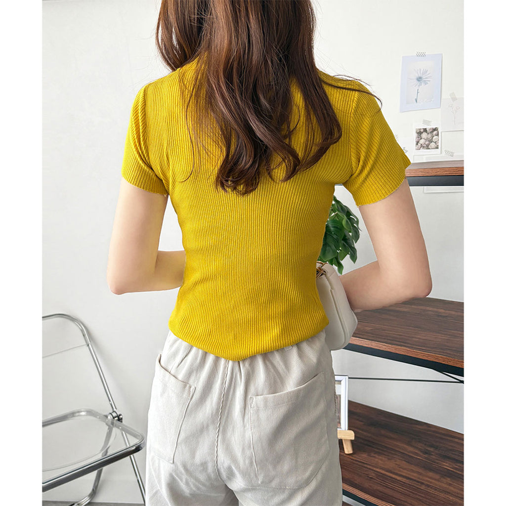 德威莉 Dewlily 開領短袖 Polo 針織 女士 韓國 休閒 簡約 短版 時尚 可愛 大人 春 夏 百搭 外出 上衣 襯衫