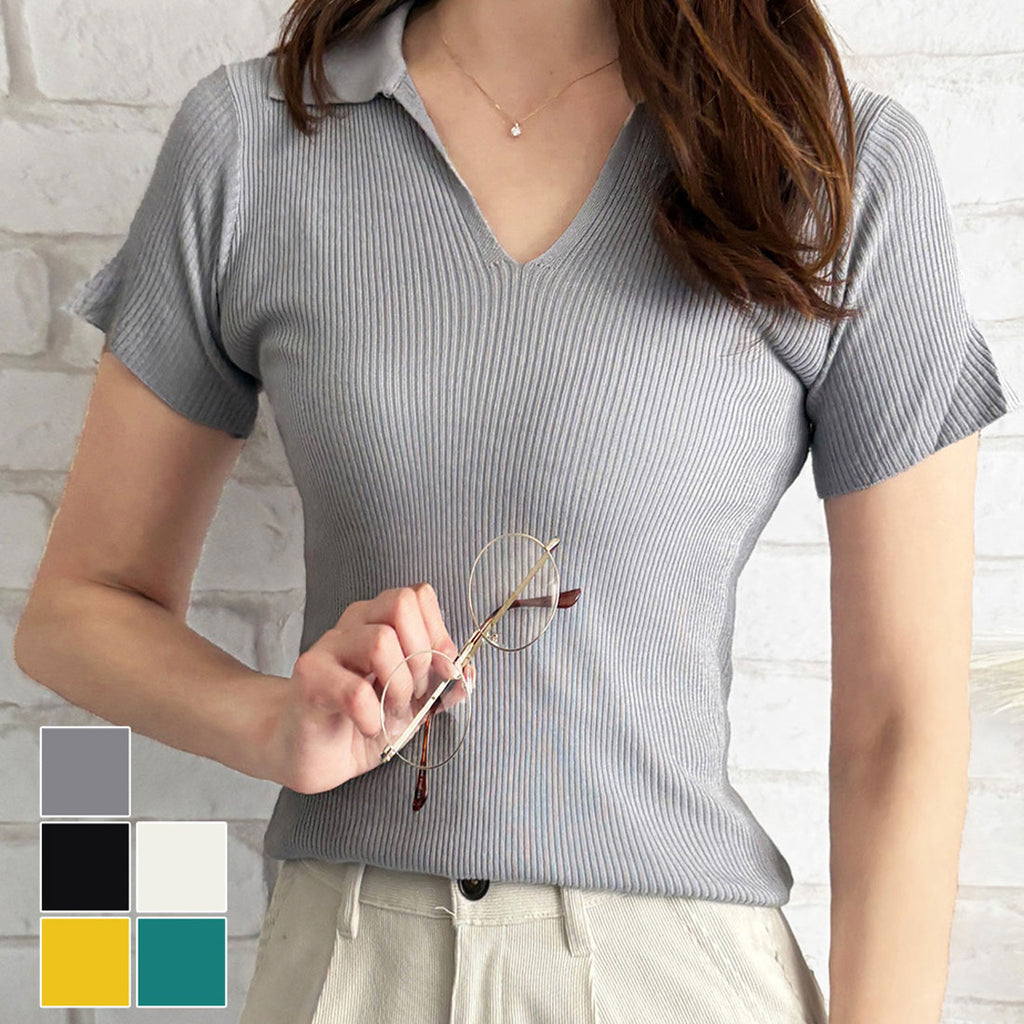・新登場的半袖Polo針織衫,開領設計讓頸部看起來更美觀♪