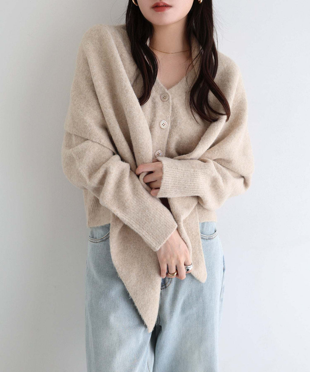and me 同色 圍巾附帶 蝴蝶結 刺繡 毛衣 開襟衫