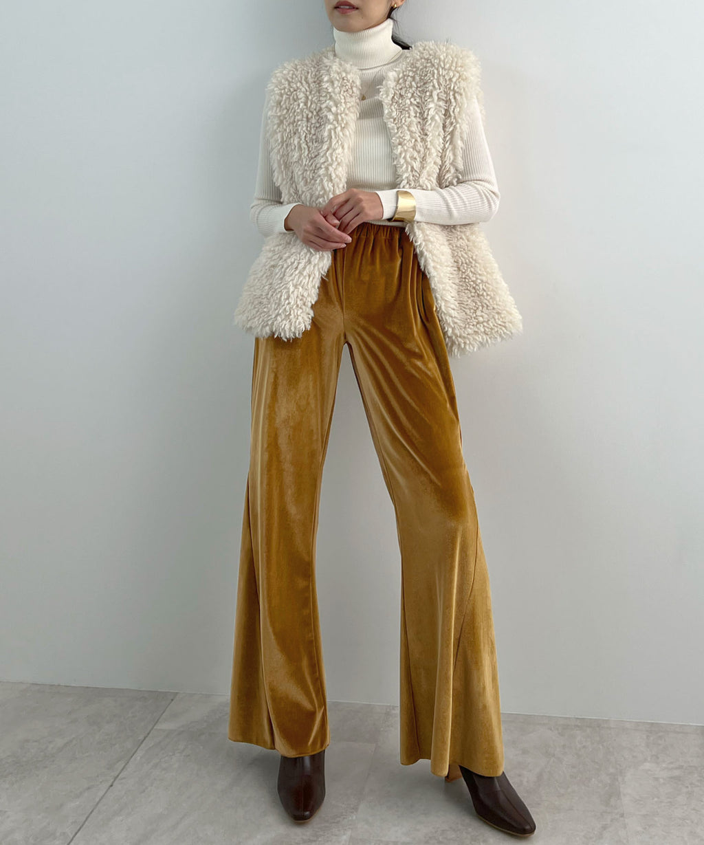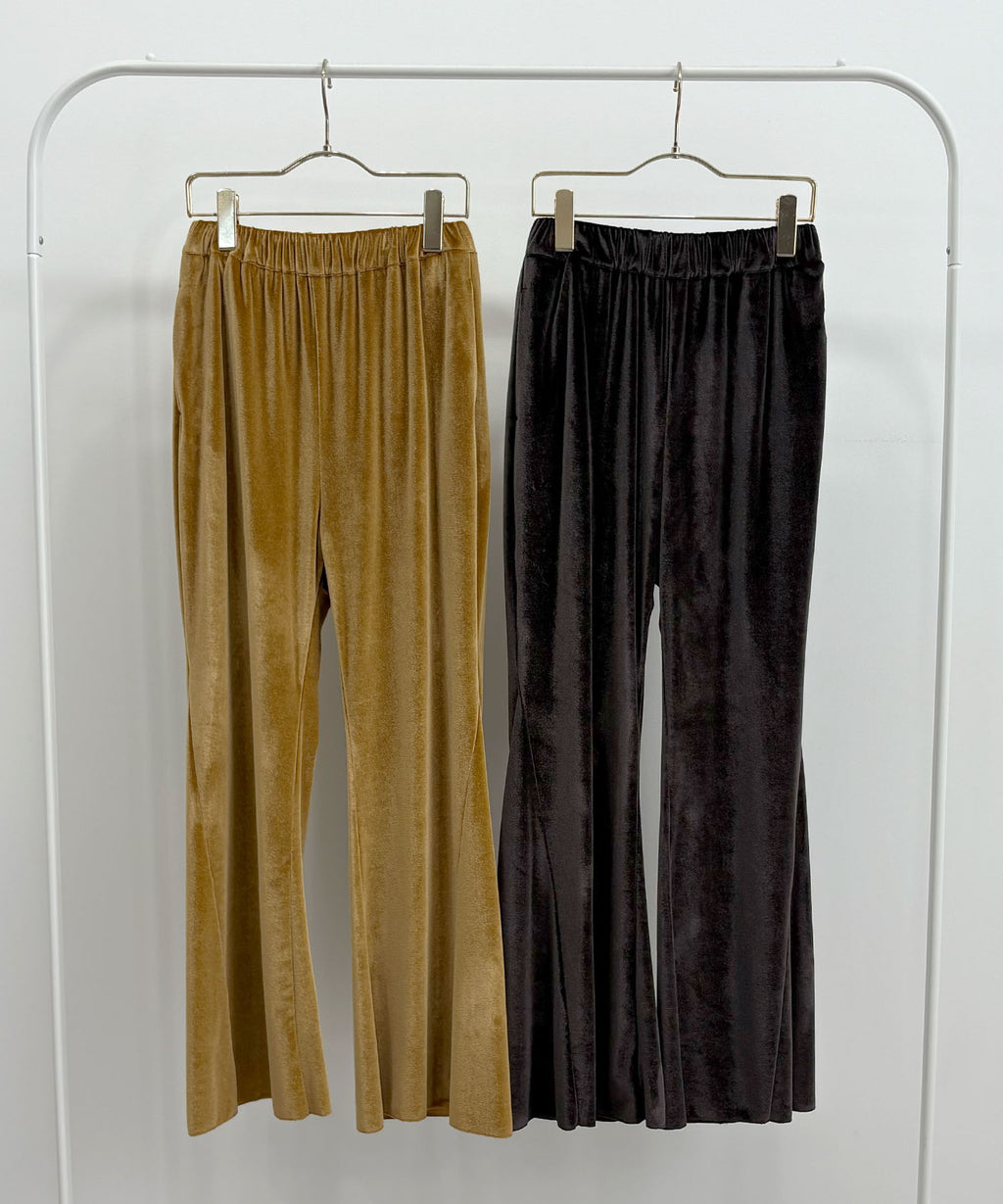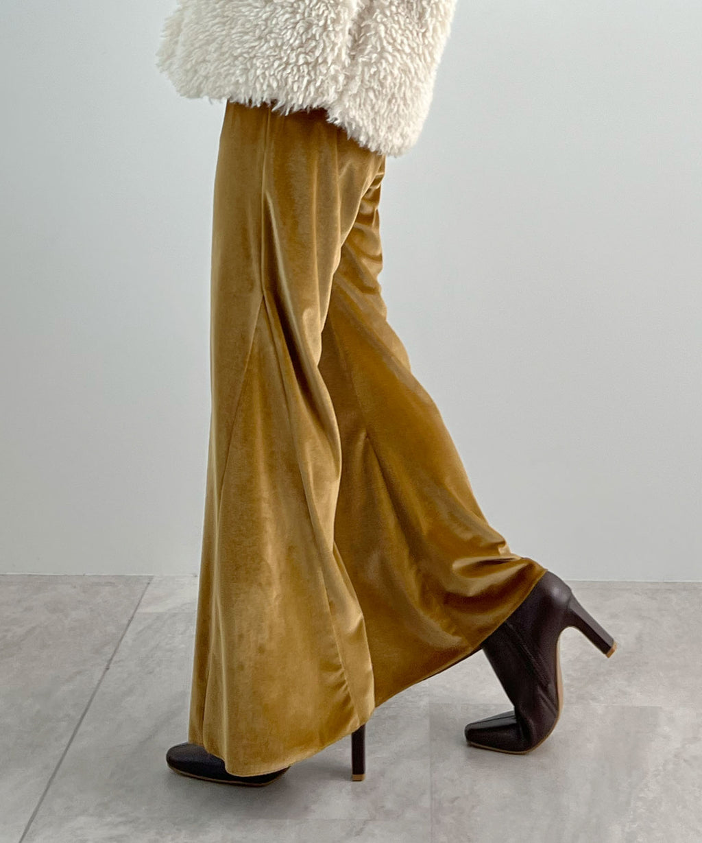 冬季氛圍提升的優雅光澤絨面喇叭褲♪
