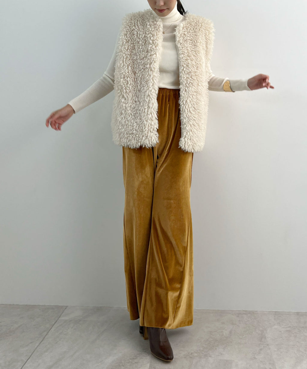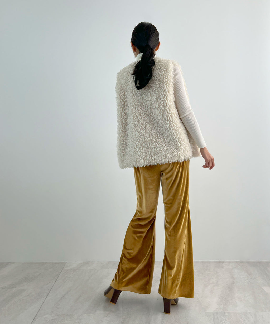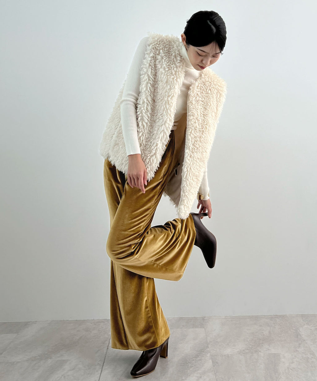 冬季氛圍提升的優雅光澤絨面喇叭褲♪