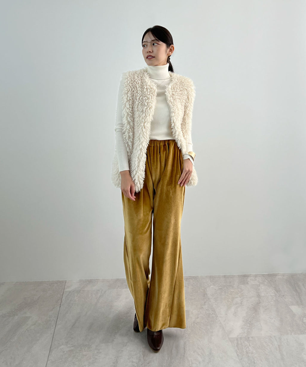 ・絨面材質特有的適度光澤感為造型增添了隨性氛圍◎