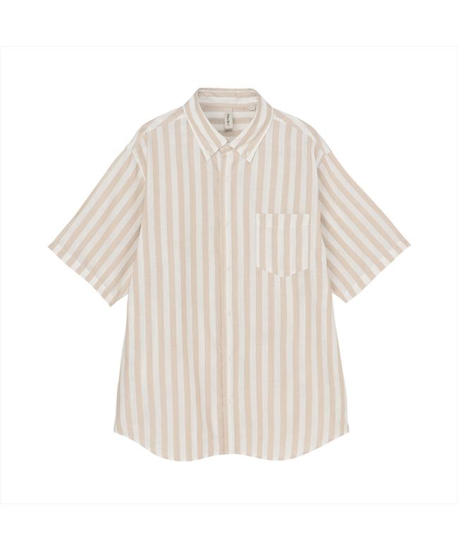 完美 Pitta Re:) [Pitta Re:)] W 紗布紐扣領 100% 棉短袖襯衫
