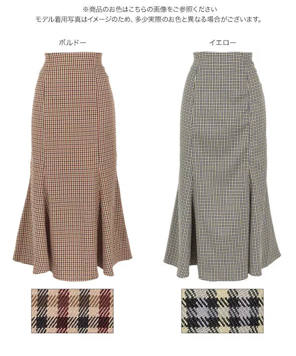 トラッドなニュアンスのガンクラブチェックを活かしたマーメイドスカート。今季トレンドのマーメイドスカートは、シンプルトップス合わせで華やか見えするので持っていると便利なアイテム。フェミニンにもカジュアルにも合うデザインなので、Tシャツやスウェット合わせもおすすめ。