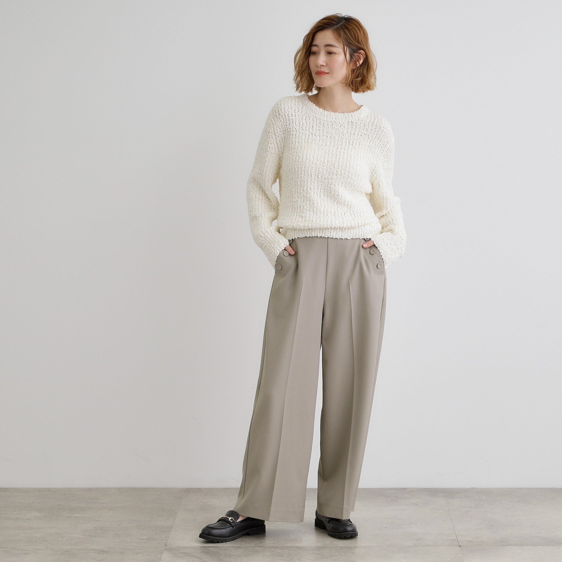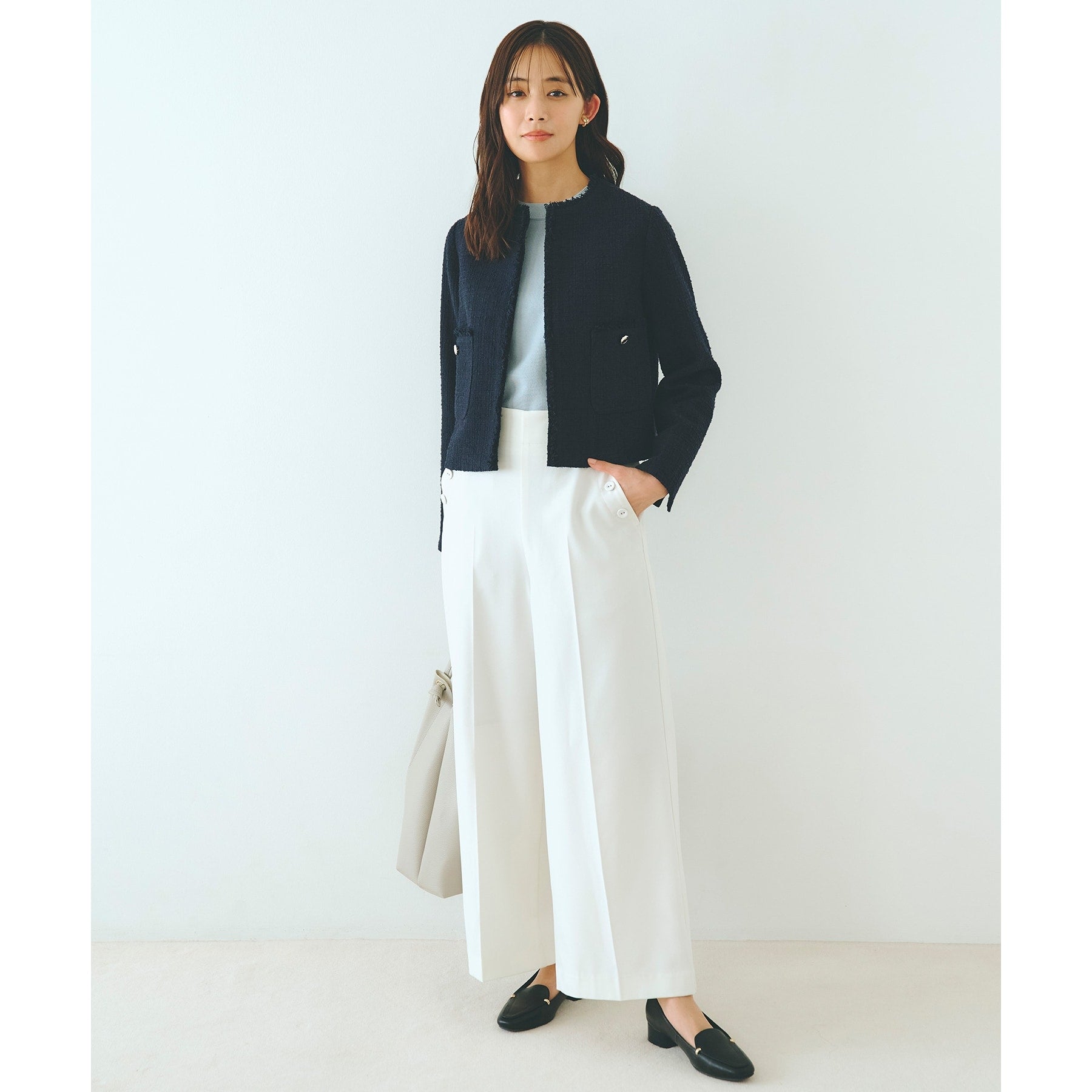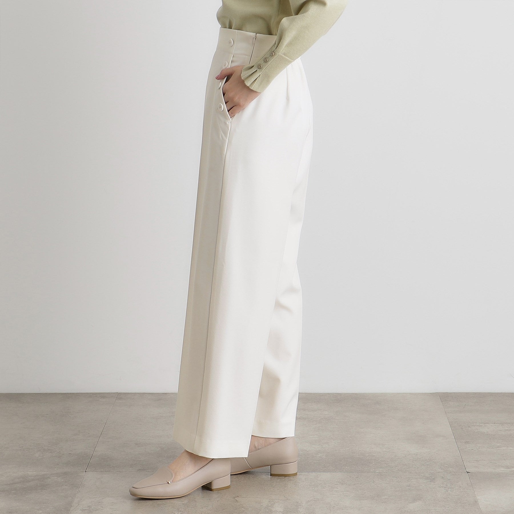 無摺線的中心壓摺,使腿部看起來筆直,實現了清爽的輪廓。
