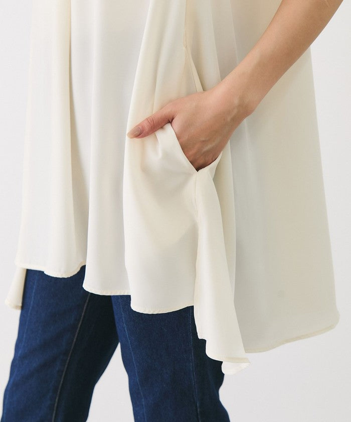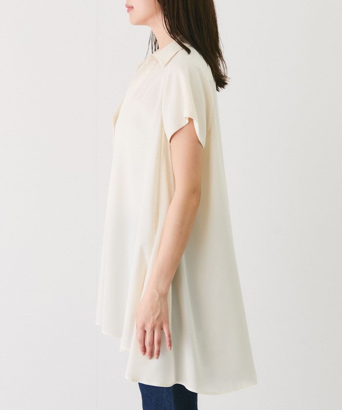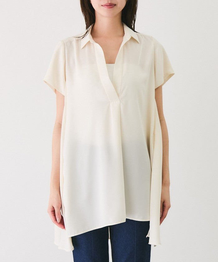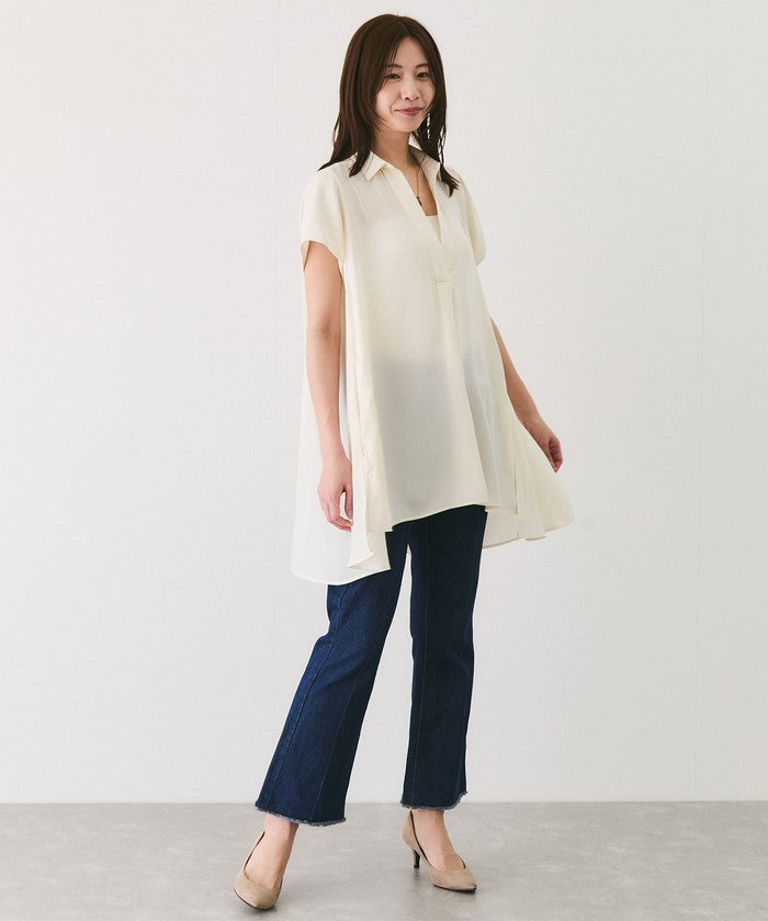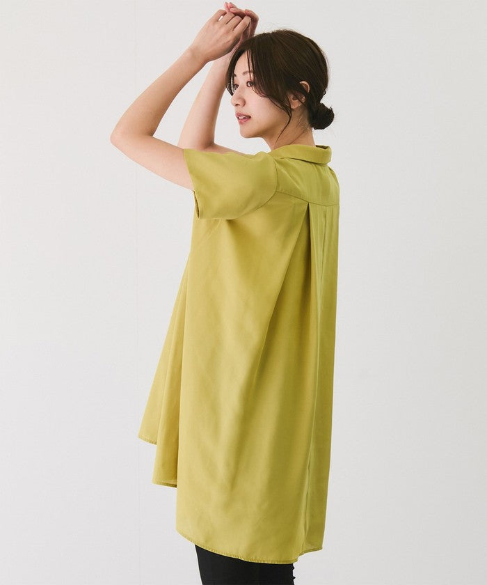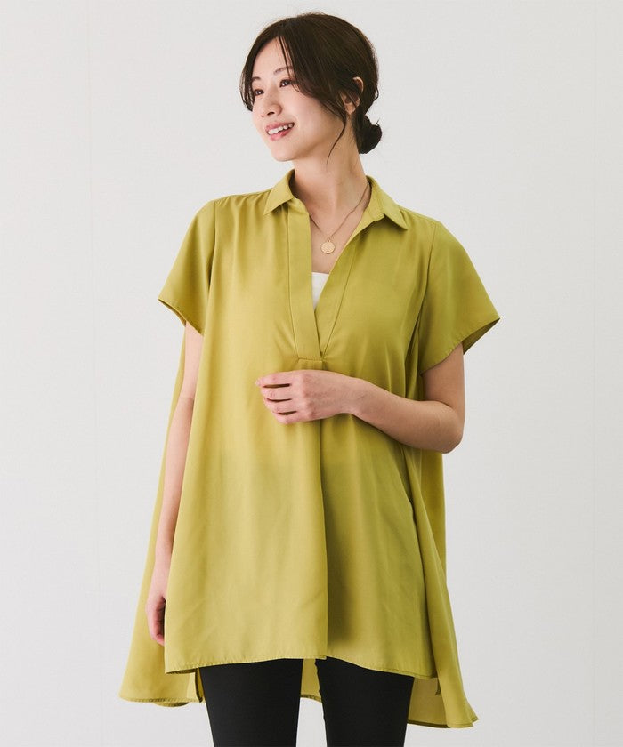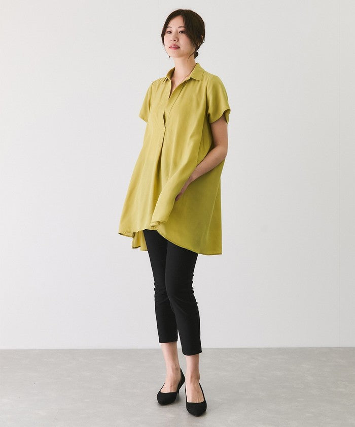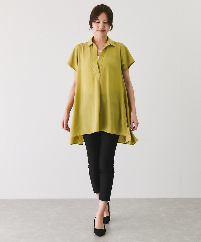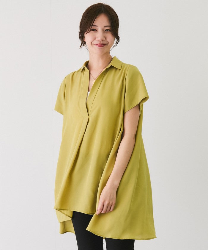 寬鬆的輪廓讓人感到舒適的開領襯衫長 tunic。