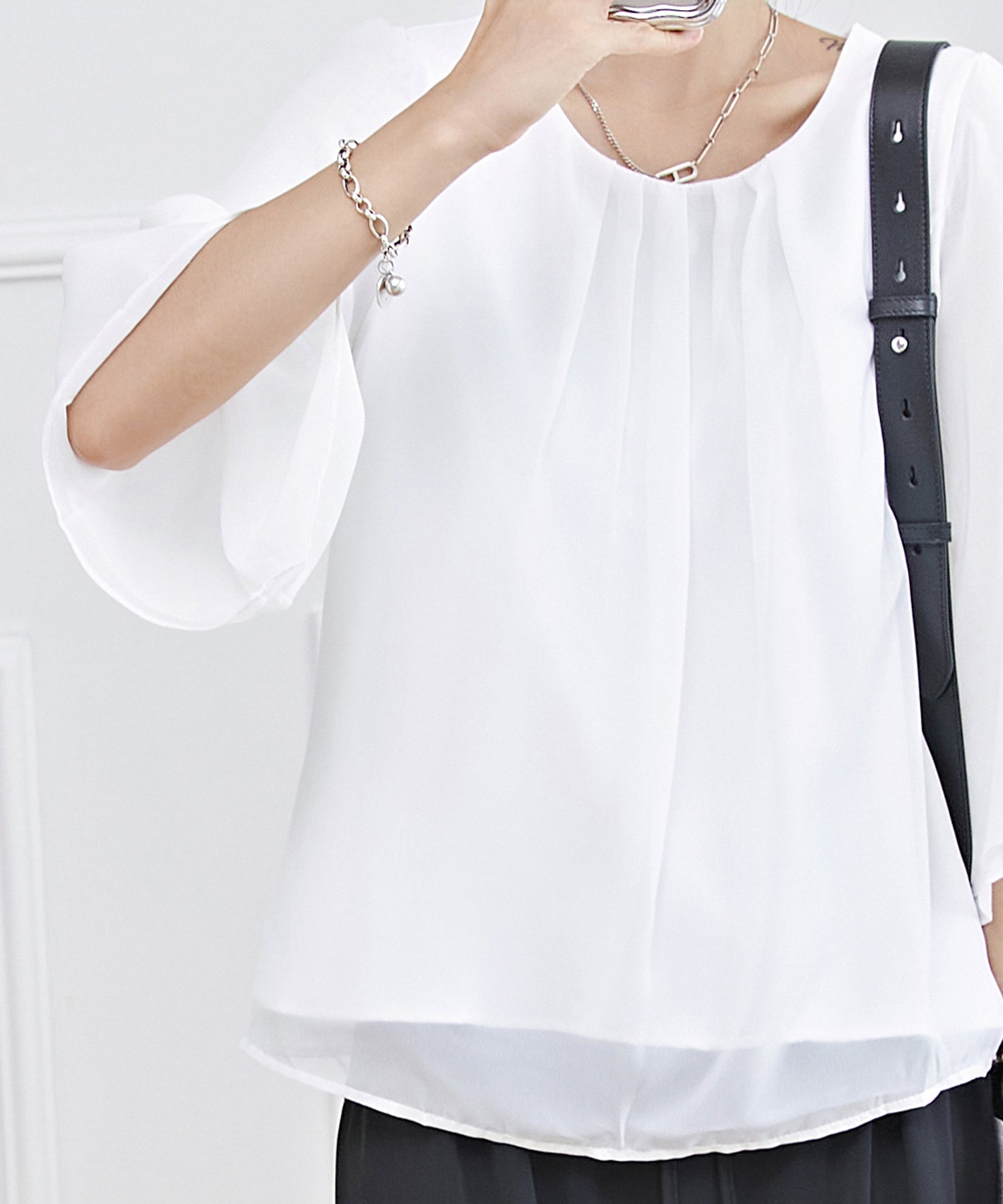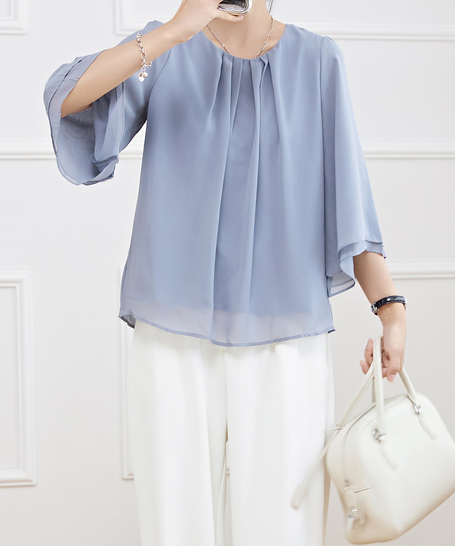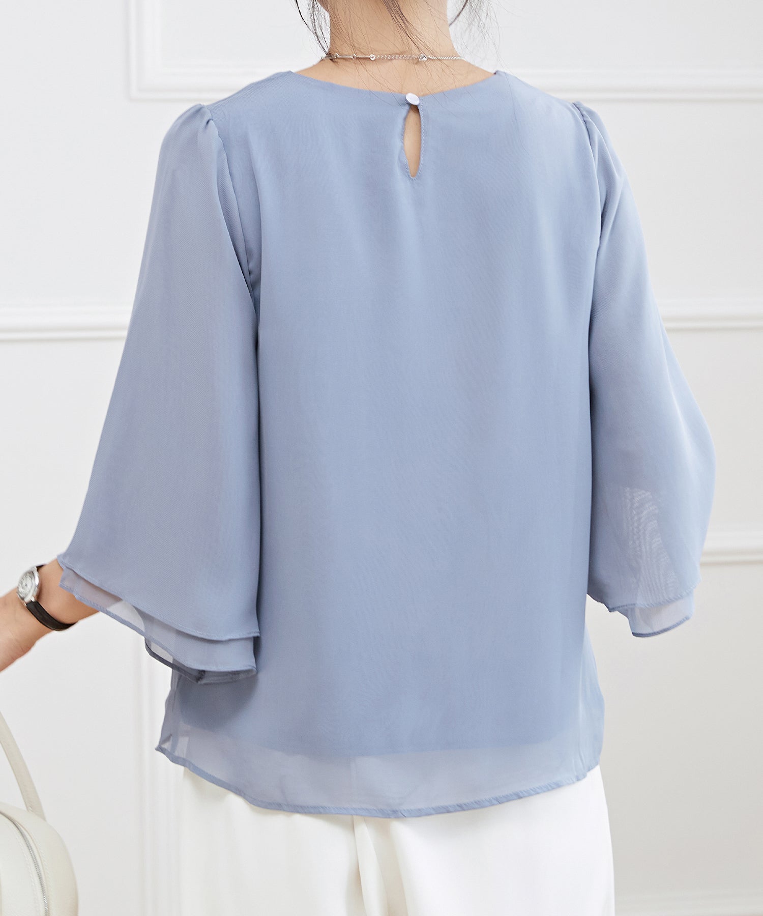 能遮蓋令人在意的二手臂周圍的豐盈感,袖子向袖口擴展的線條,效果顯瘦又華麗◎