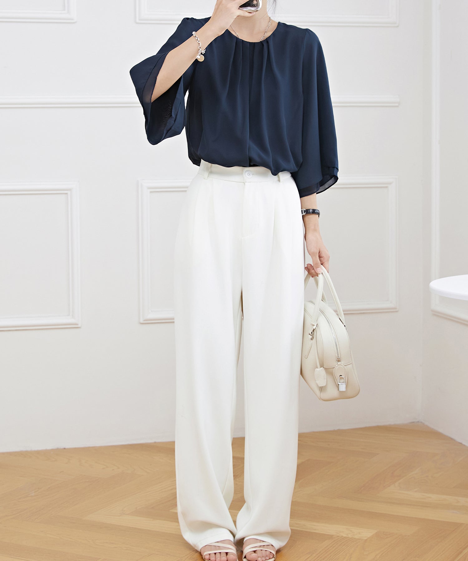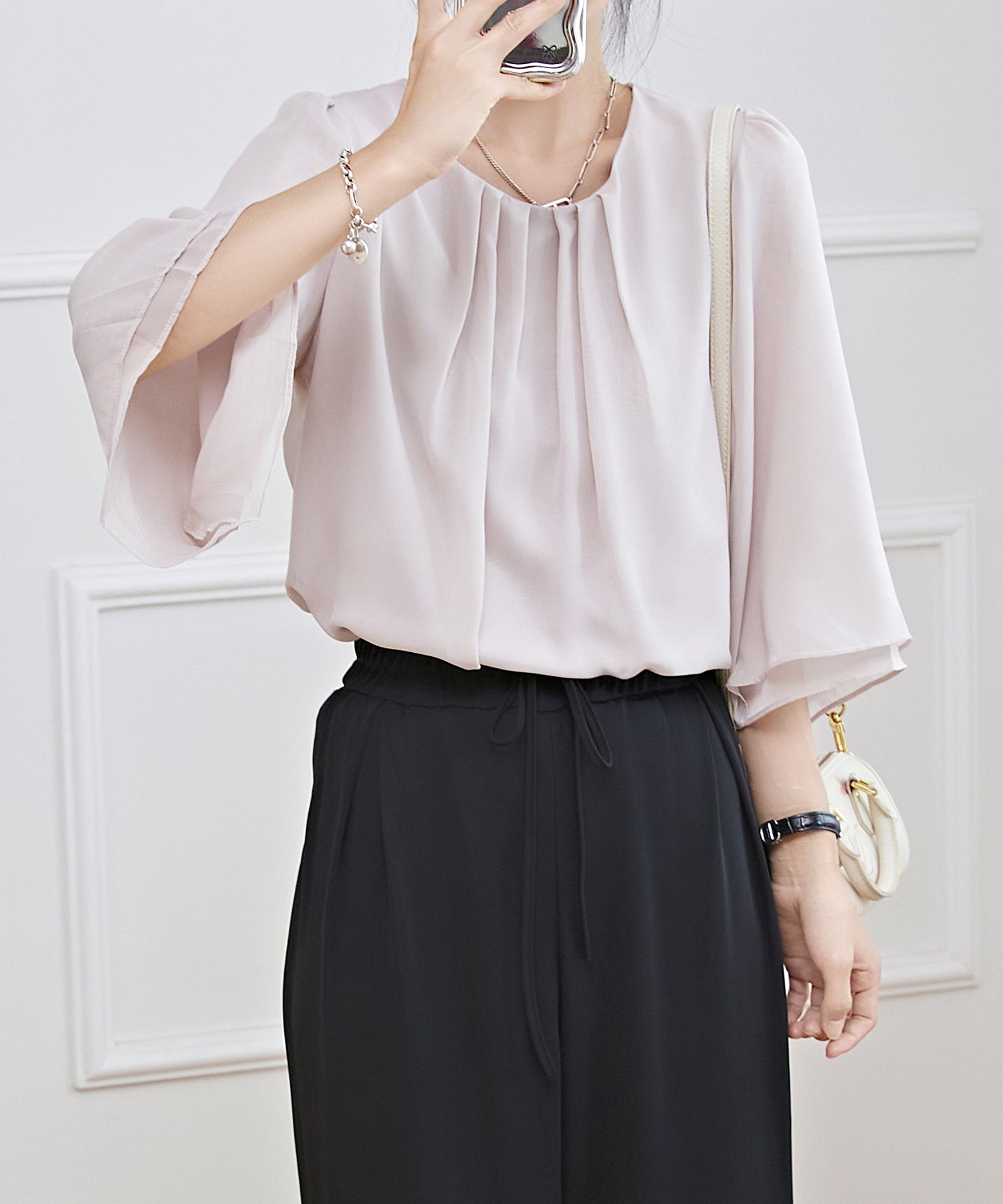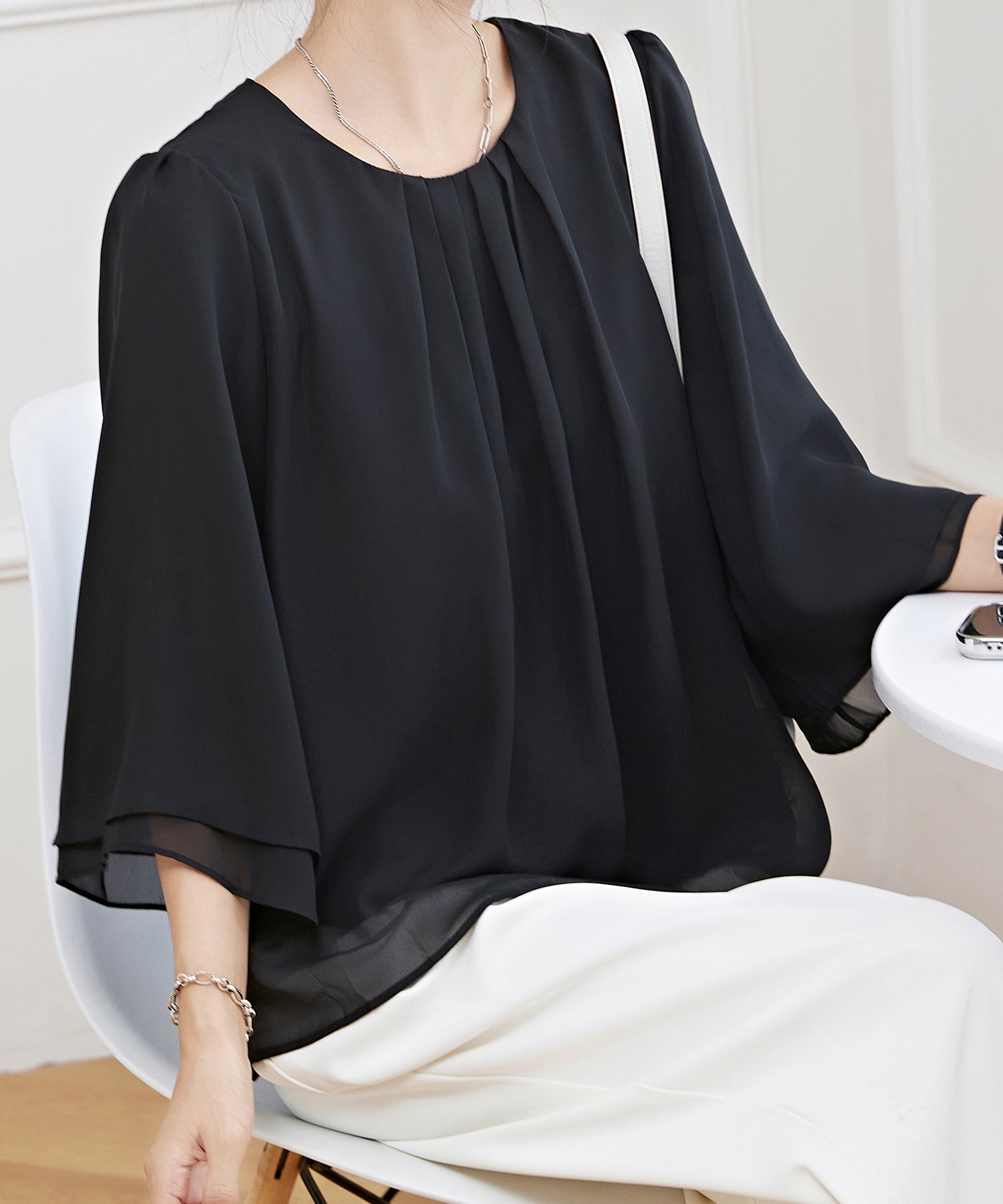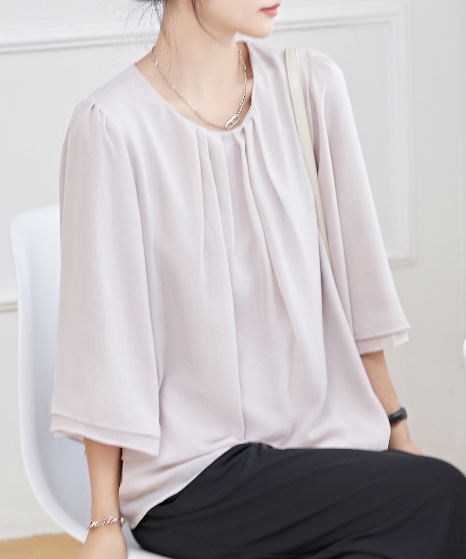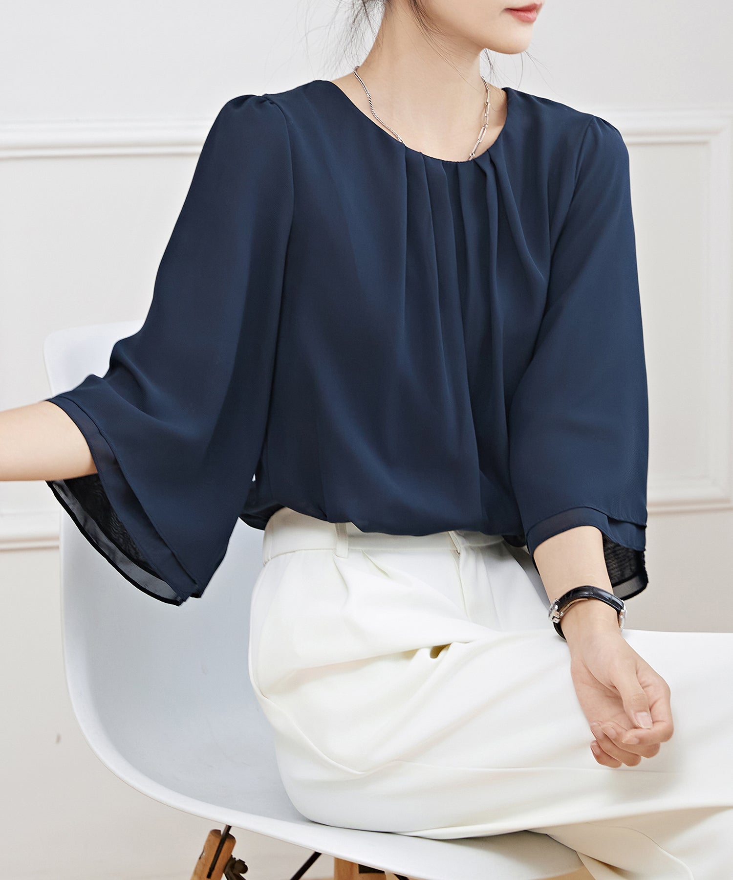 這款上衣適合搭配辦公室、典禮、約會等女性化且有品味的穿搭。