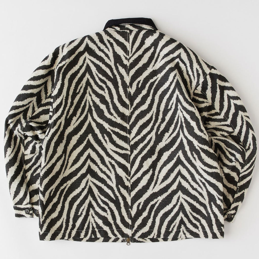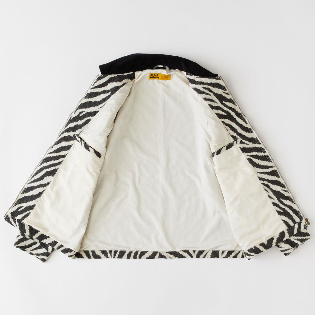 使用了動物圖案的印象深刻且溫暖的高級聚酯纖維提花材料的ZIP外套。