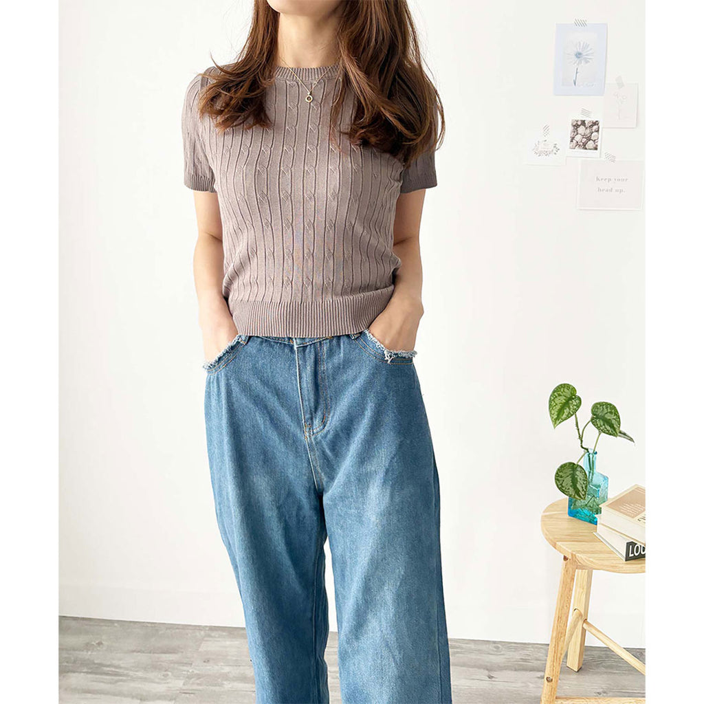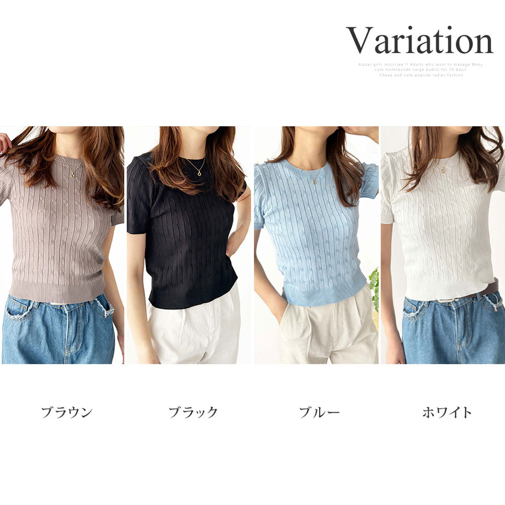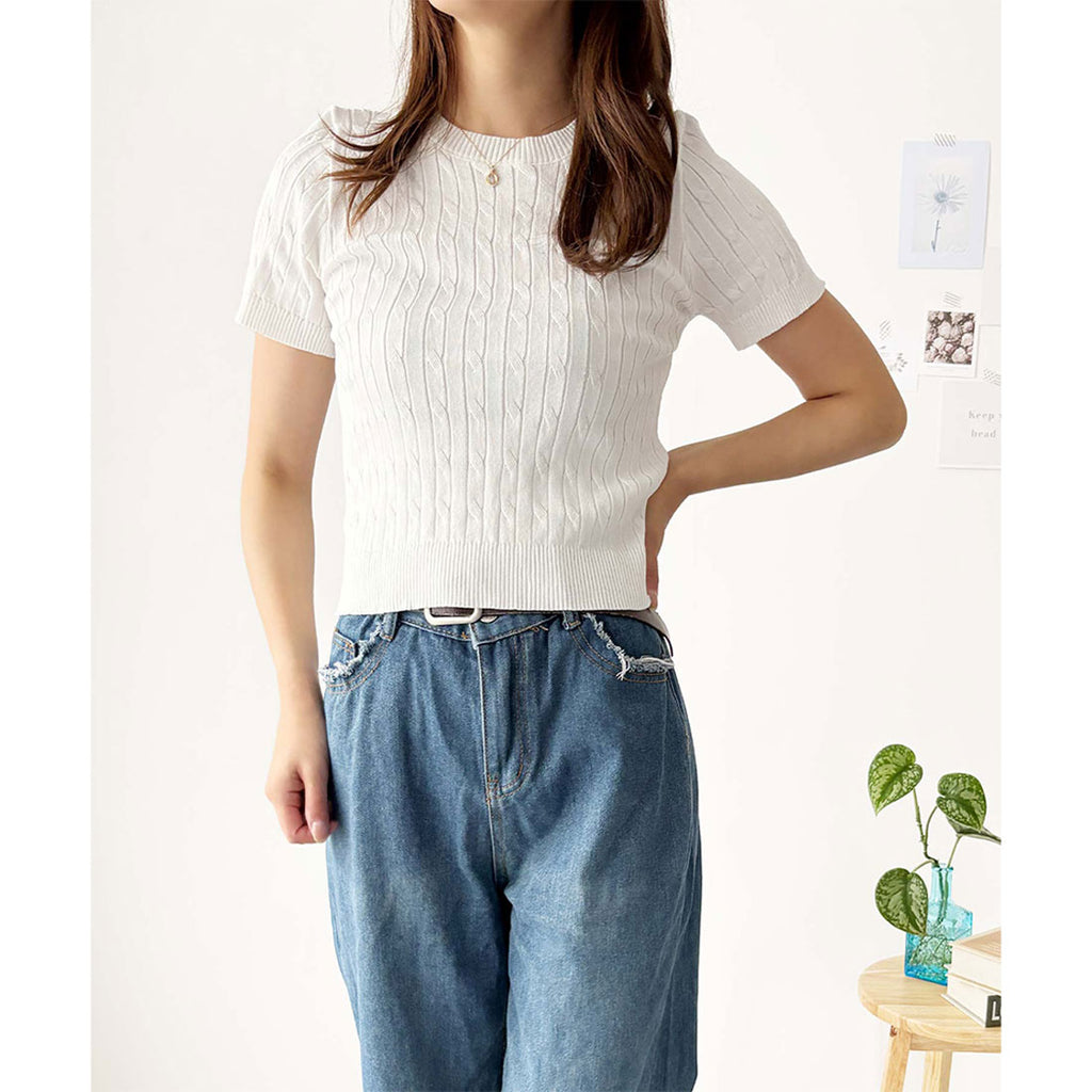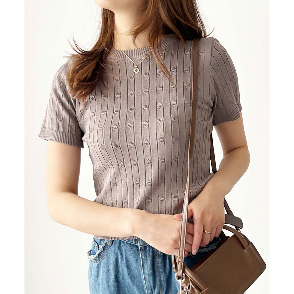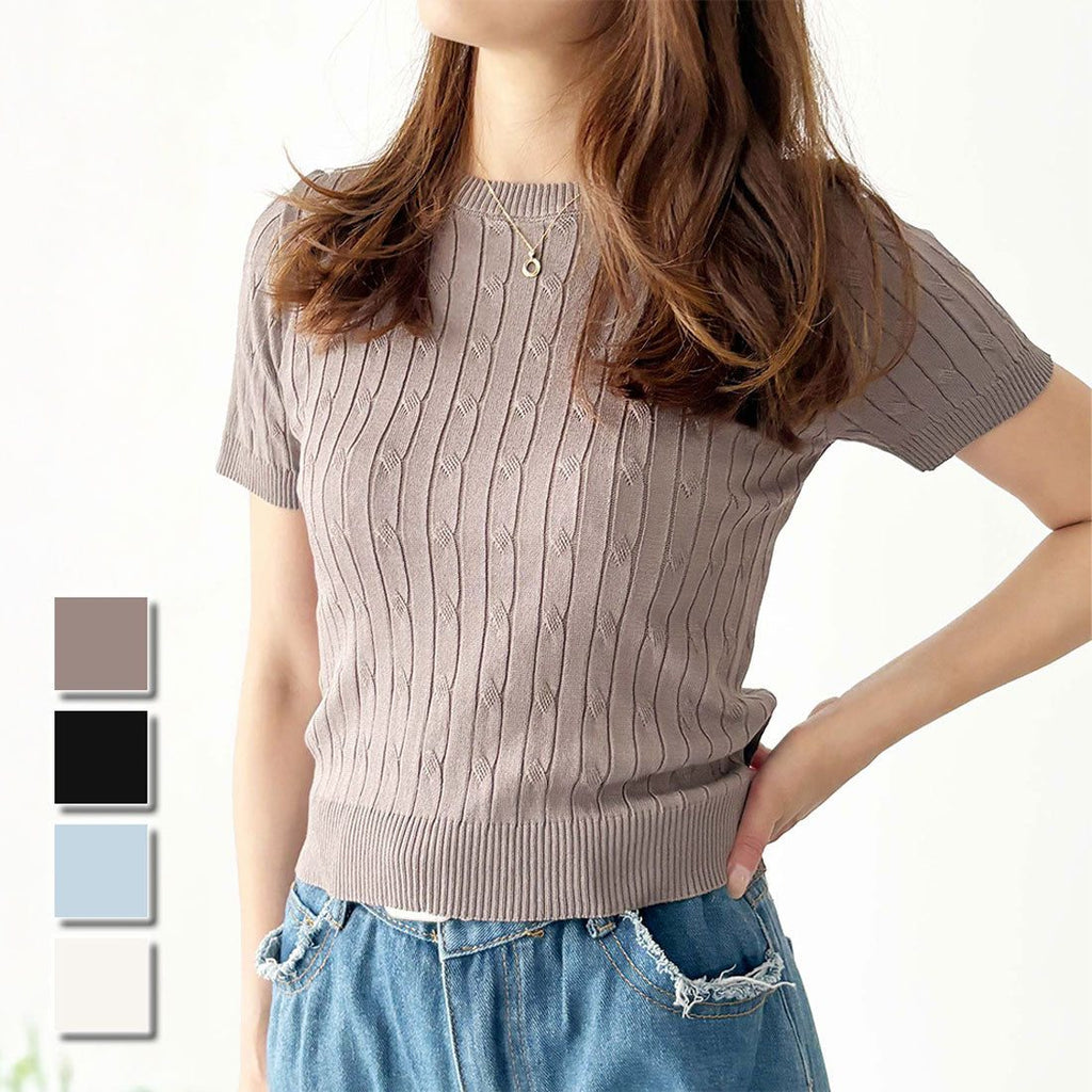 ・編織風設計是可愛的點綴的短袖針織衫♪