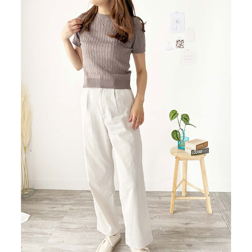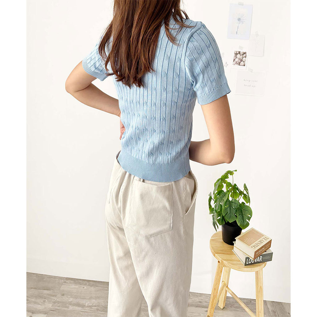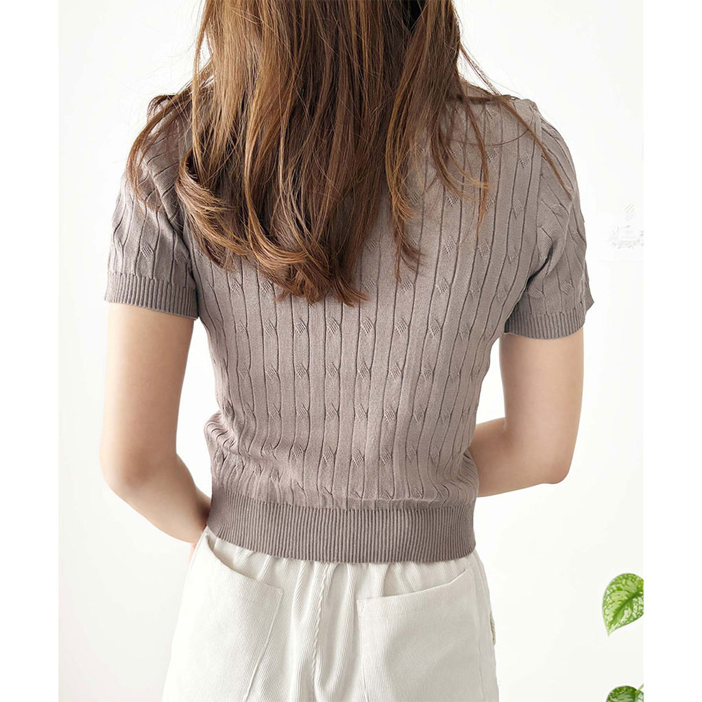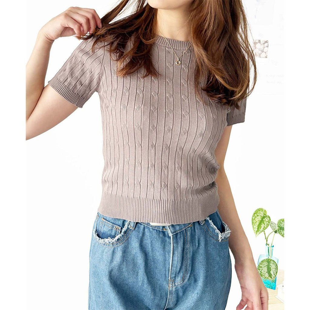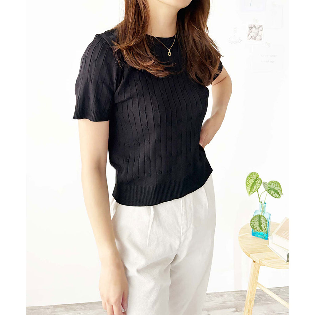 ・編織風設計是可愛的點綴的短袖針織衫♪