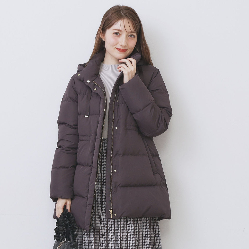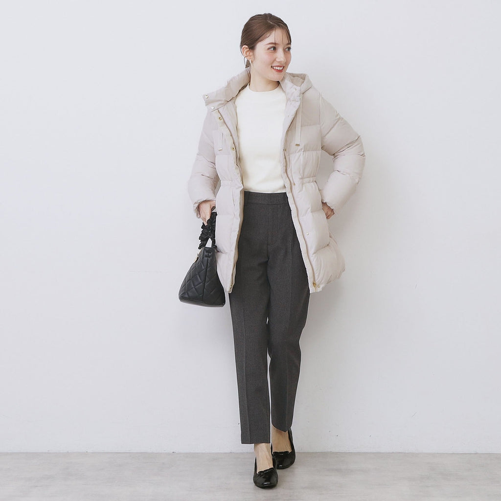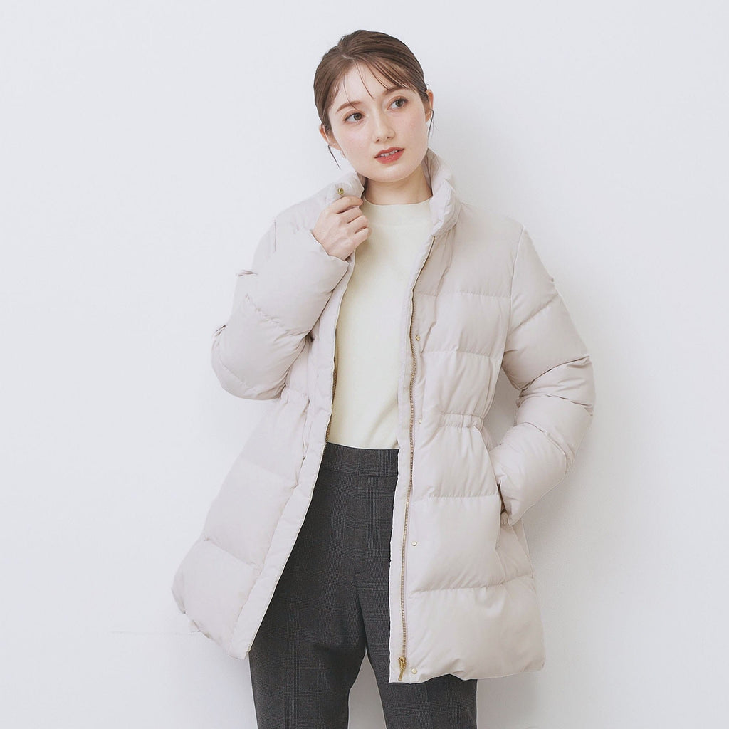 グレージュ(050) アイボリー(804) 表地:本体 ポリエステル100% リブ部分 ポリエステル98% ポリウレタン2% 裏地:ポリエステル100% 詰物:ダウン90% フ