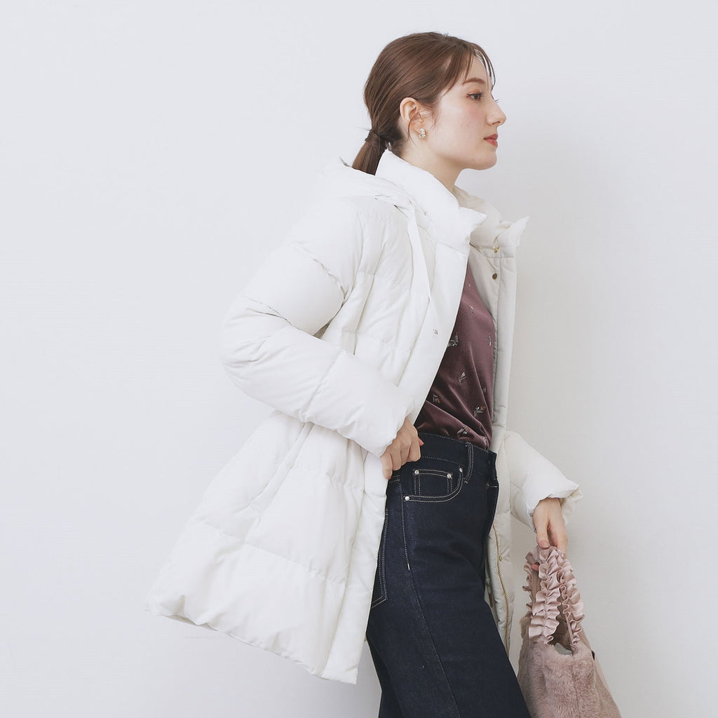 使用河田羽絨的抽繩中長外套