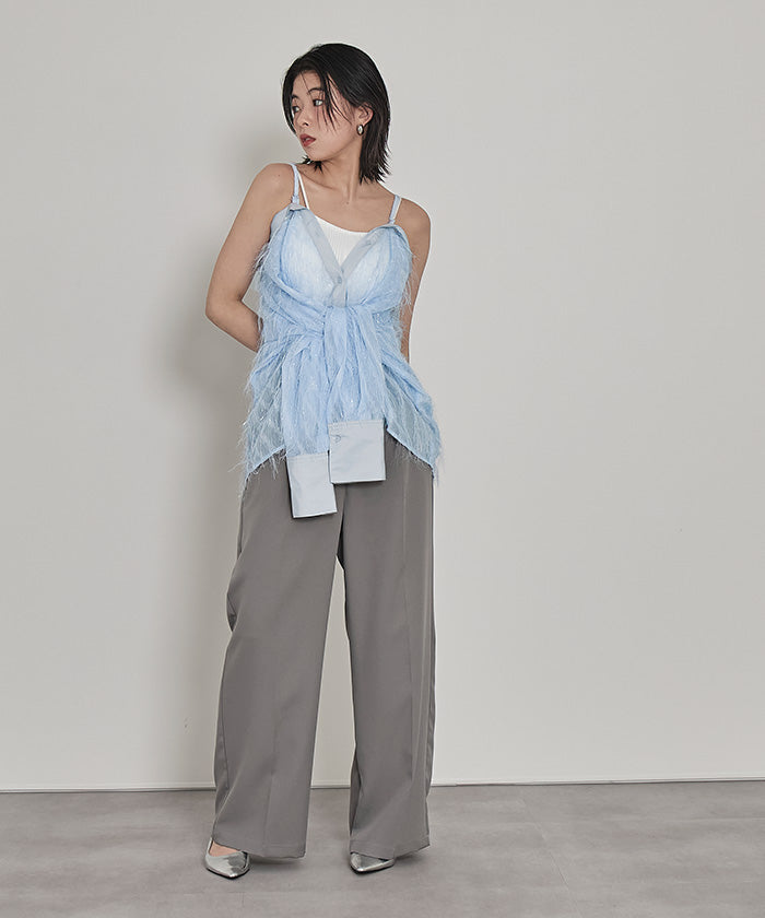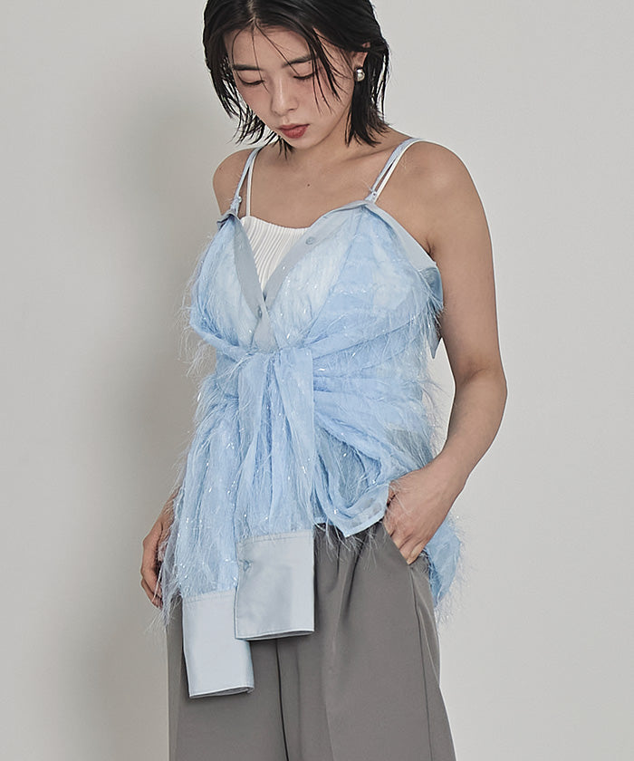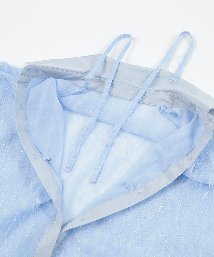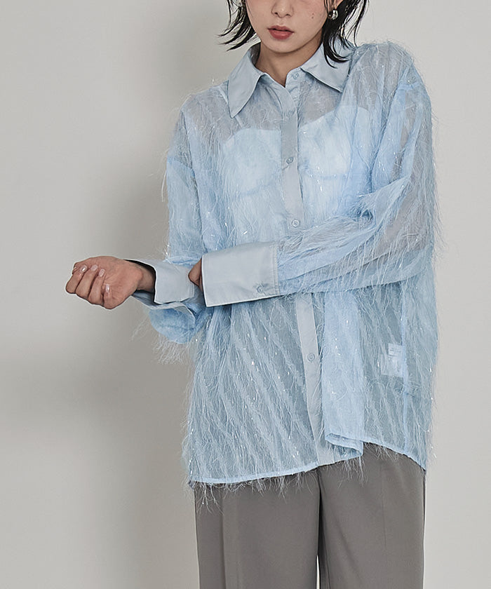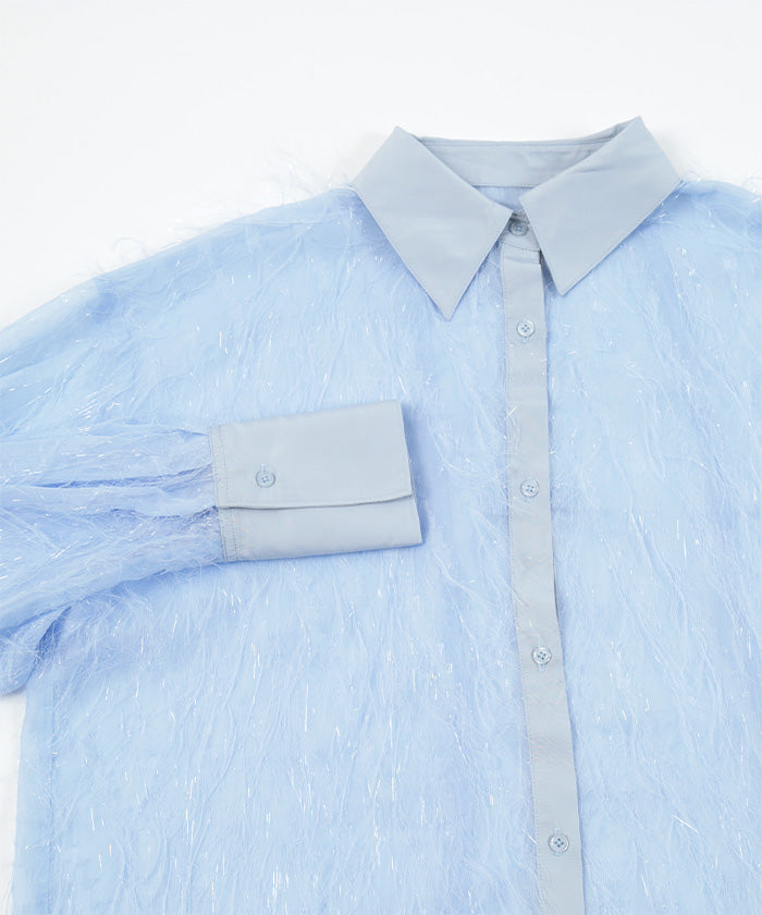・毛茸茸的流蘇可愛的透明襯衫。