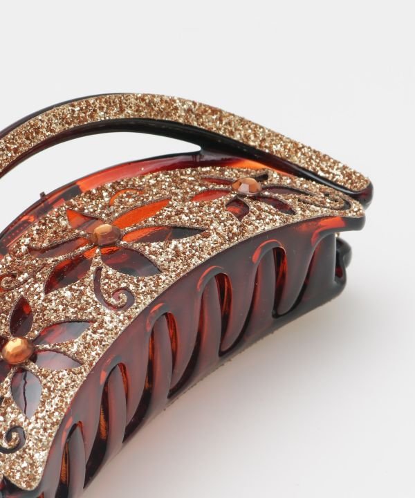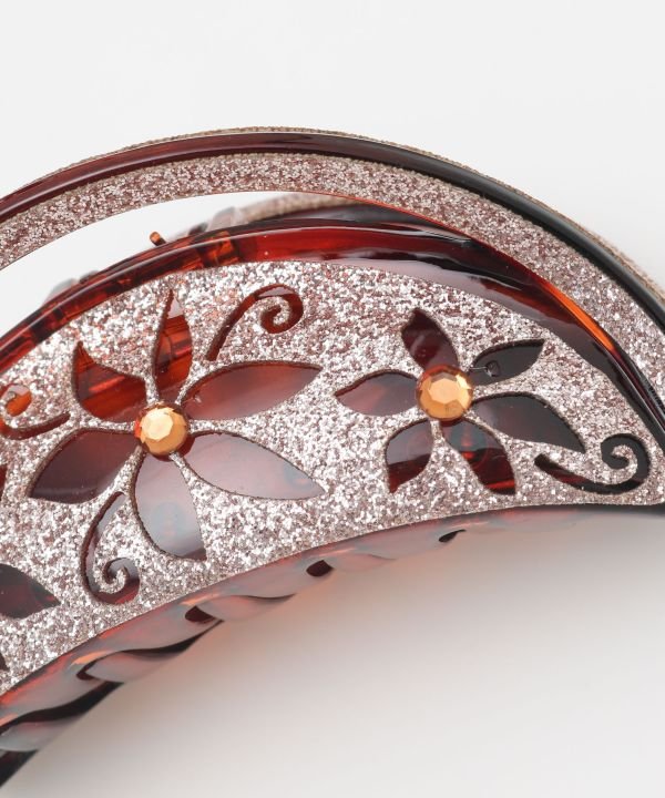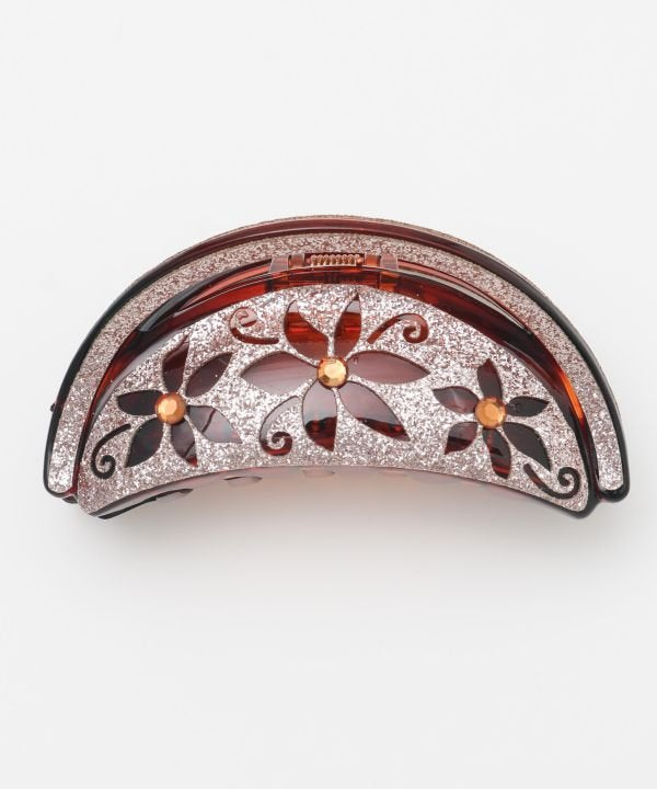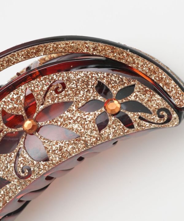 以純花「Tiare」為原型的華麗髮夾。大釦子的曲線可將您的髮型牢牢固定在位。每次移動時,閃閃發光的閃光都會閃閃發光。推薦用於草裙舞課程和日常使用。