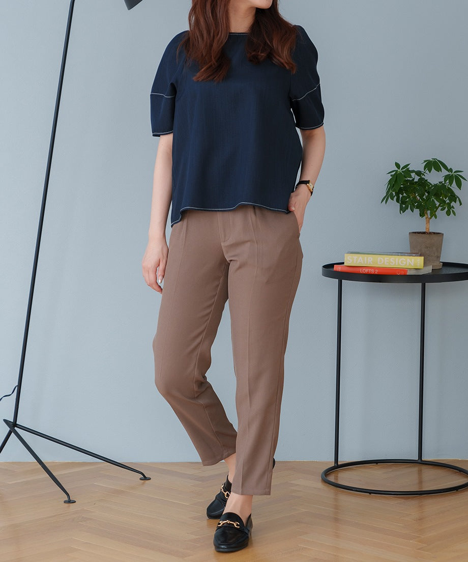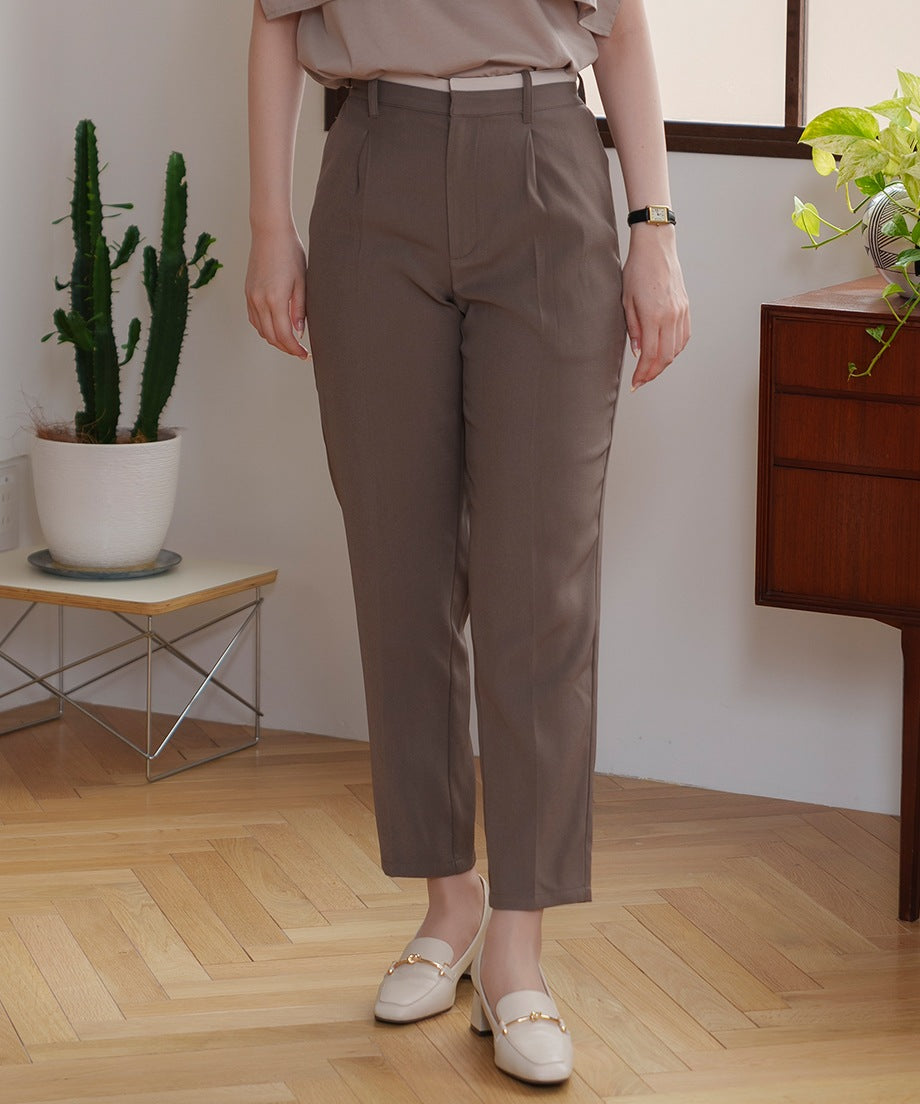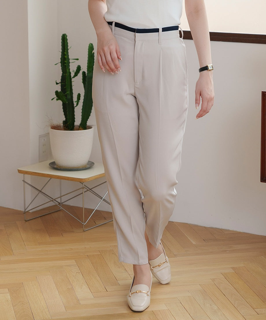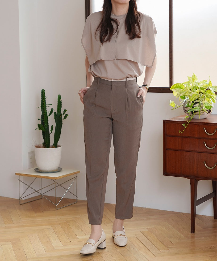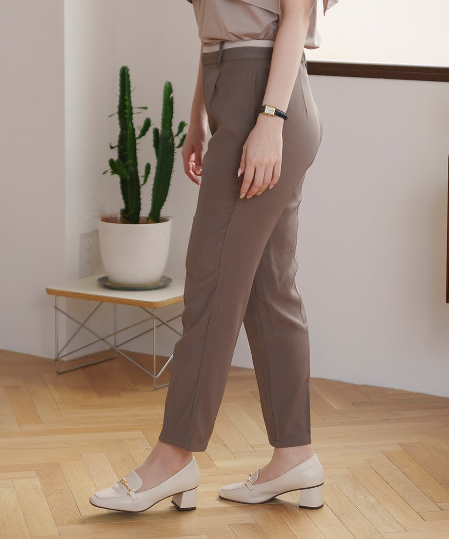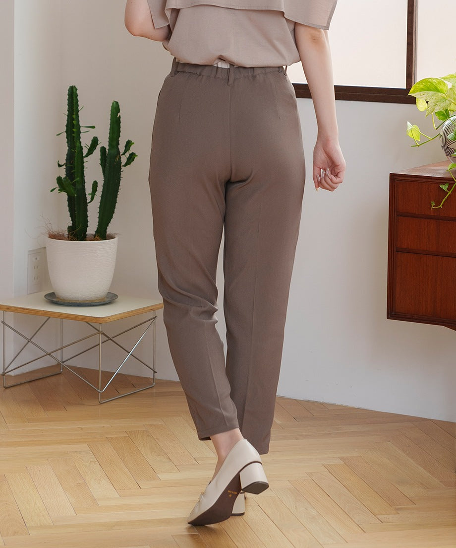 塔克設計讓腰部看起來更加纖細,還有提升身形的效果。此外,從臀部到腳踝的線條也非常美觀,因此也可以期待修長腿部的效果!