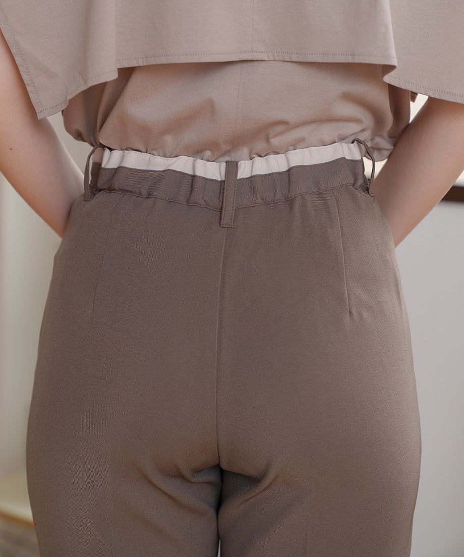 充滿潮流感的腰部配色褲子。腰部的配色成為了亮點,雖然簡約卻給人時尚的印象。設計有摺痕,實現了美麗的輪廓。無論什麼身型的人穿上都能展現出美麗的效果◎