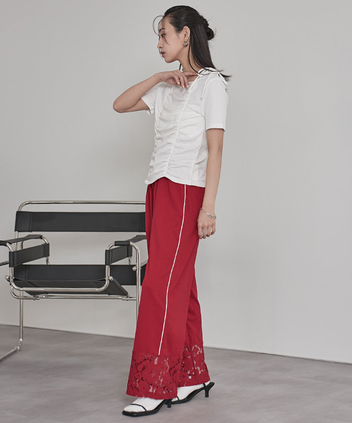 ・在運動風格的運動褲中加入蕾絲拼接,增添女性魅力的設計